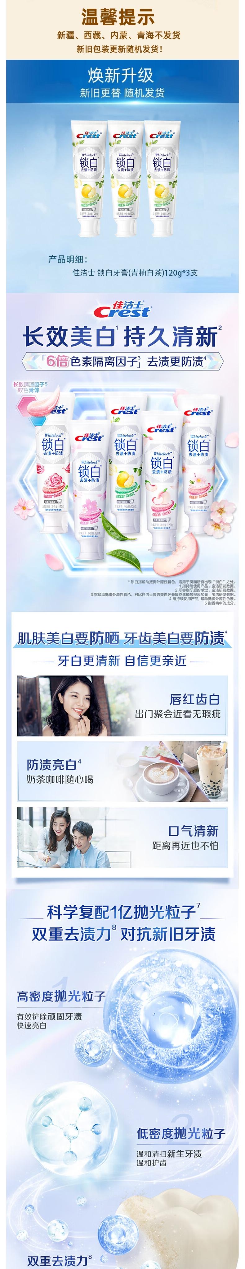 佳洁士 锁白牙膏(青柚白茶)120g*3支 pg-sb03bc