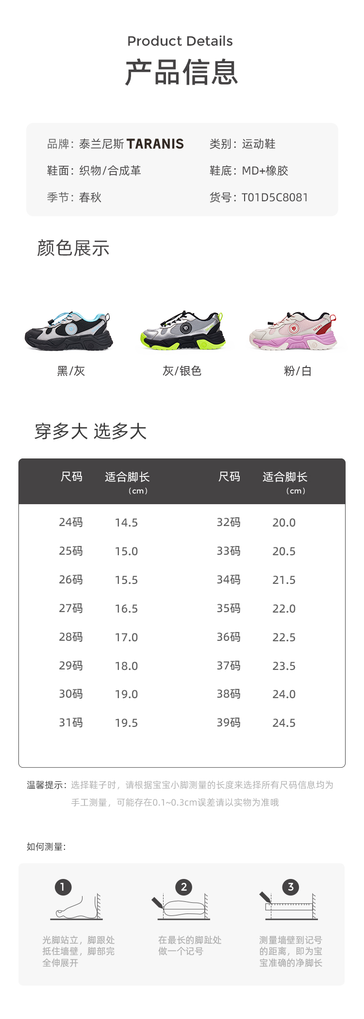 【新品】泰兰尼斯秋季中大童网布透气运动鞋亲子鞋T01D5C8081