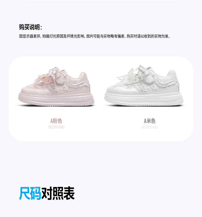 ANNIL/安奈儿女童春秋新款白色皮面防水小白鞋HG5304540