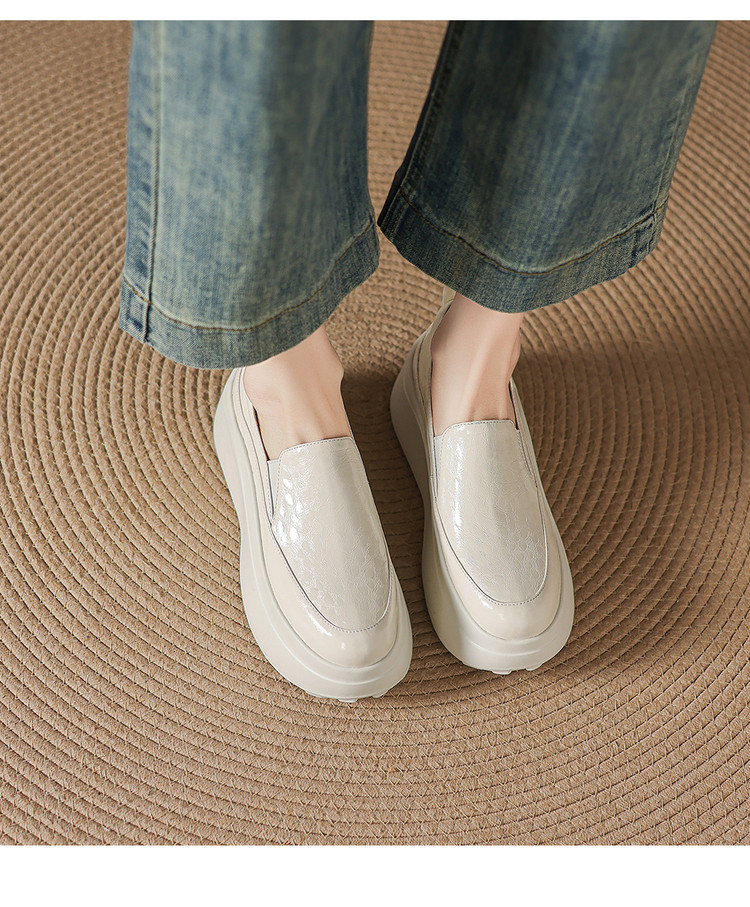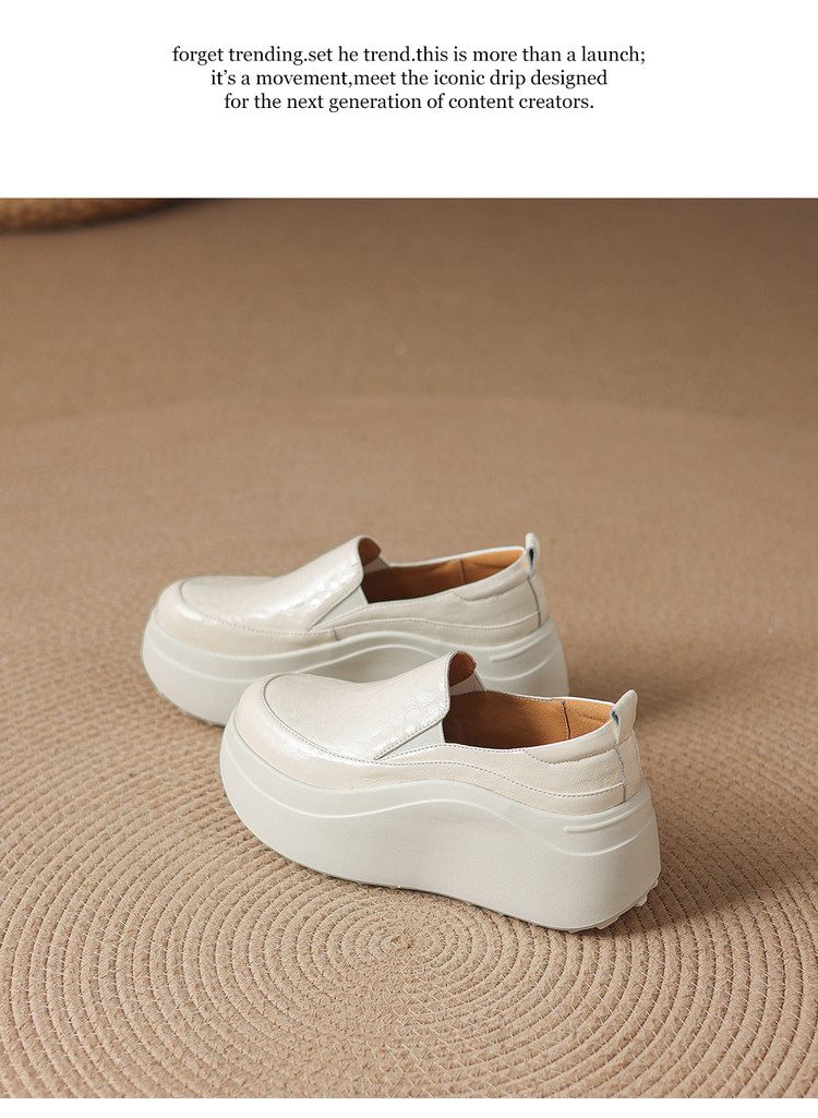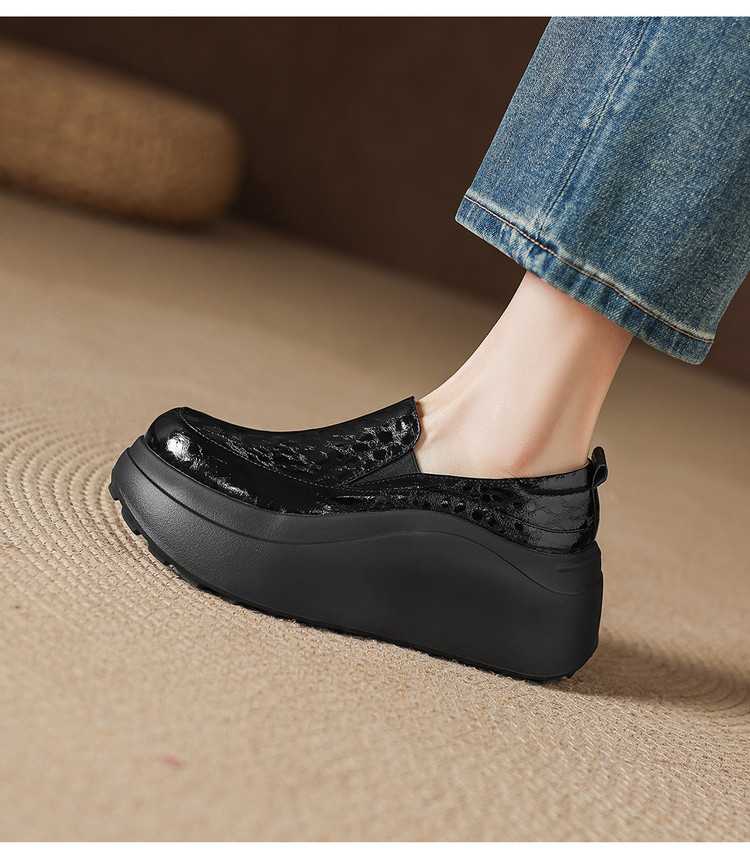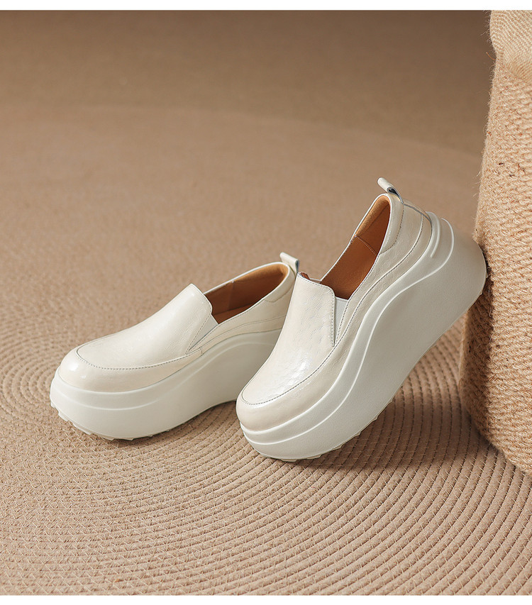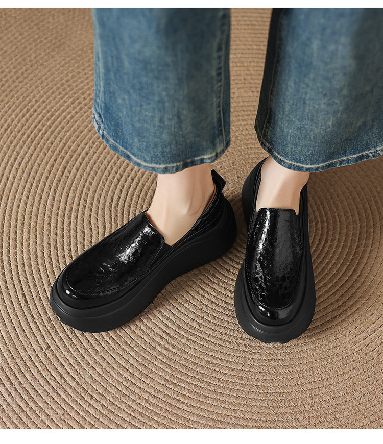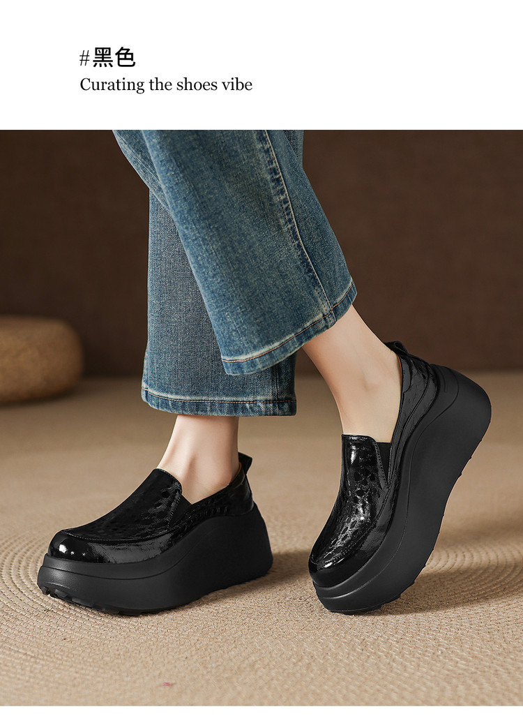 【预售5天】高跟厚底单鞋女一脚蹬英伦风乐福鞋松糕底高跟鞋真皮懒人鞋TYMXY&1702