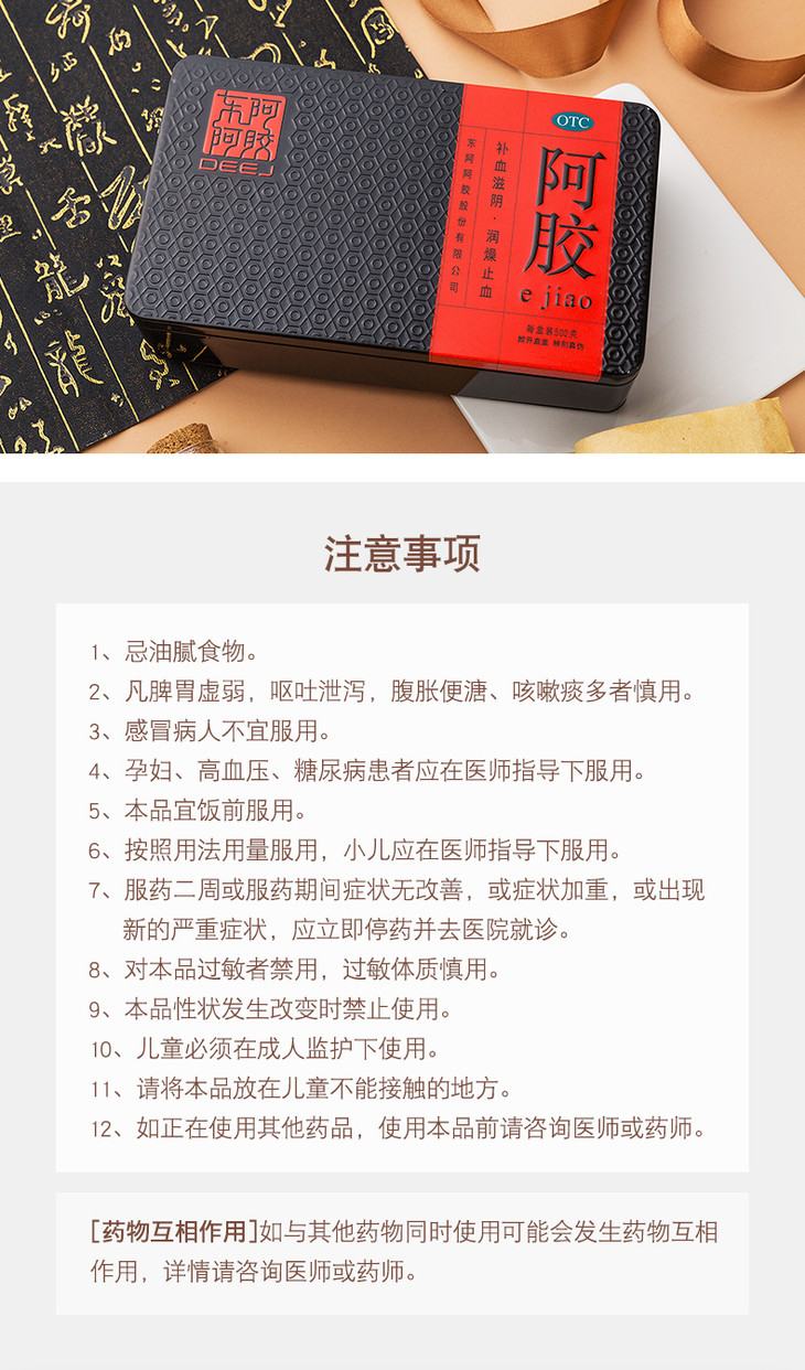东阿 正品阿胶片500g 驴皮阿胶片熬阿胶糕打粉铁盒山东阿胶原块