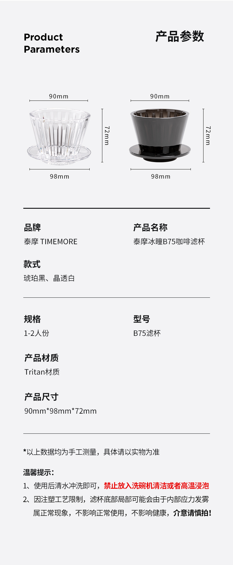 泰摩 冰瞳B75咖啡滤杯(金龙比赛专用滤杯)