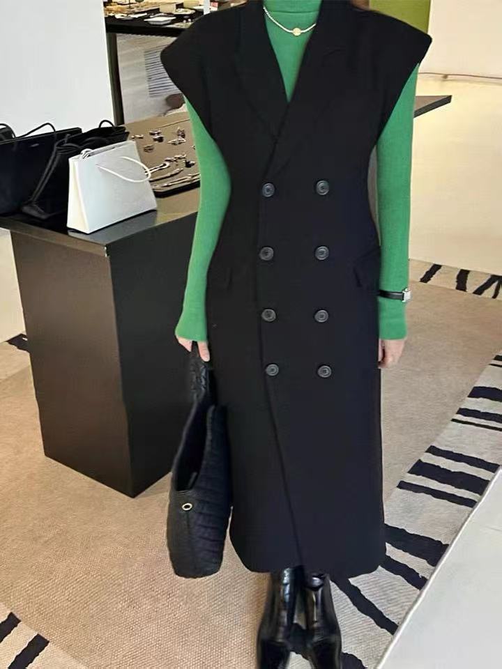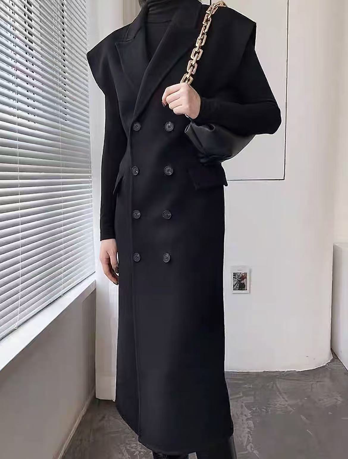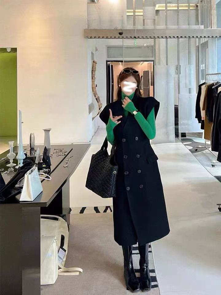 【高端系列】手工定制马甲2372款100%羊毛超有范长款双面尼马甲-喜出