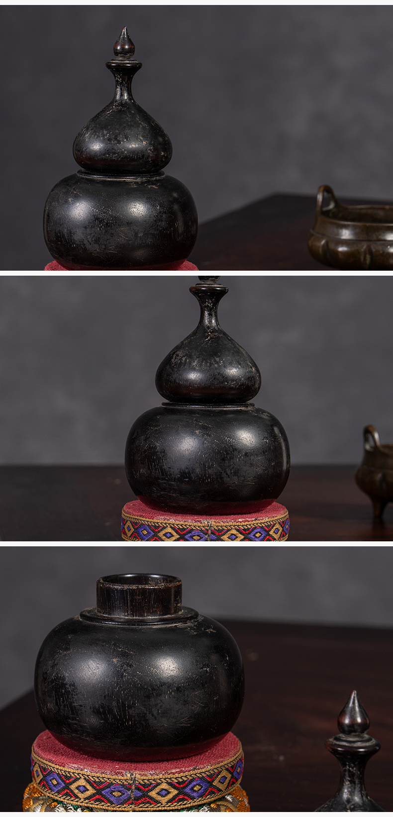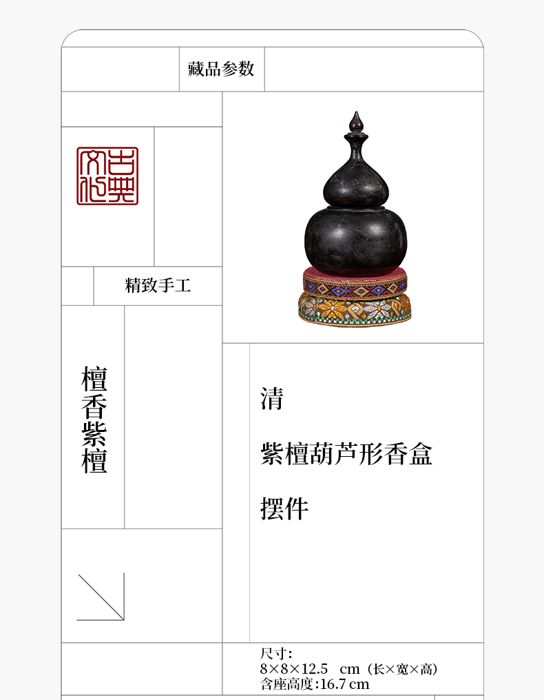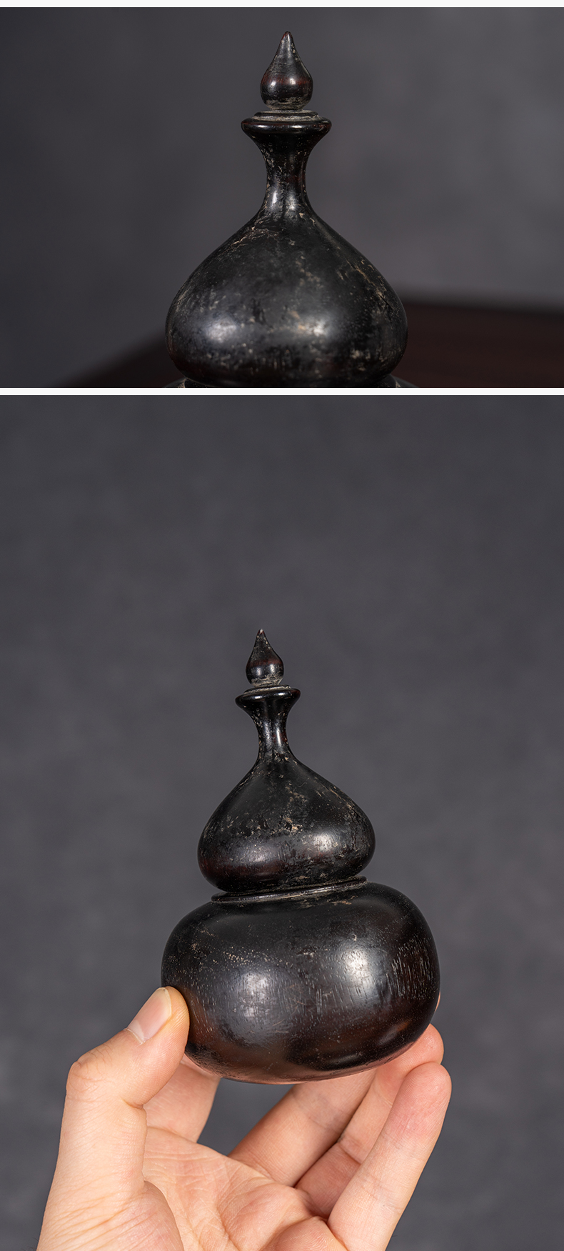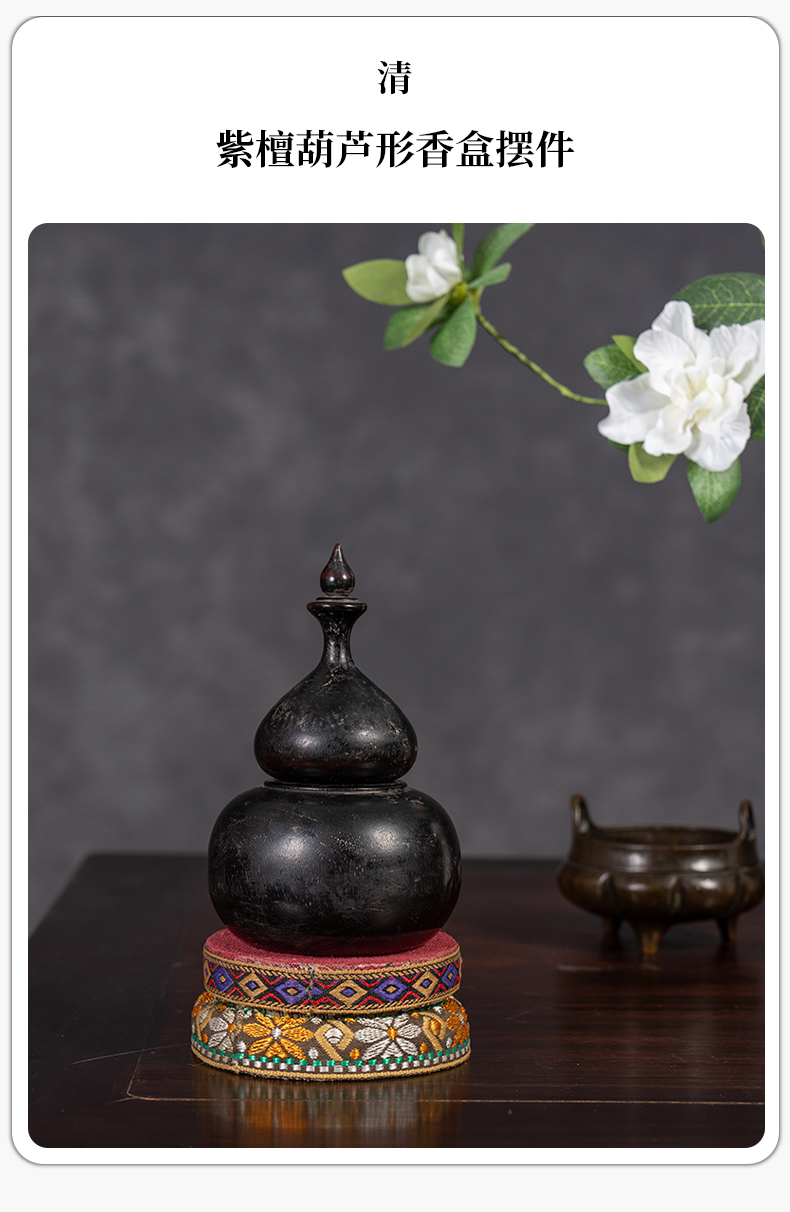 清 紫檀葫芦形香盒摆件
