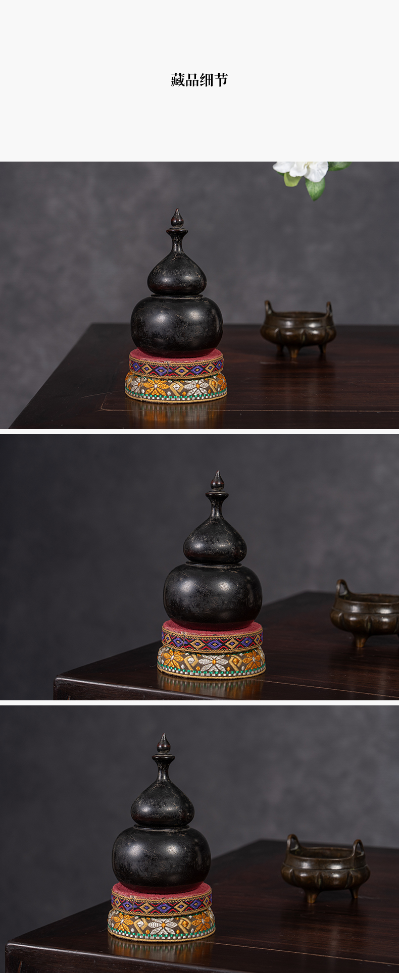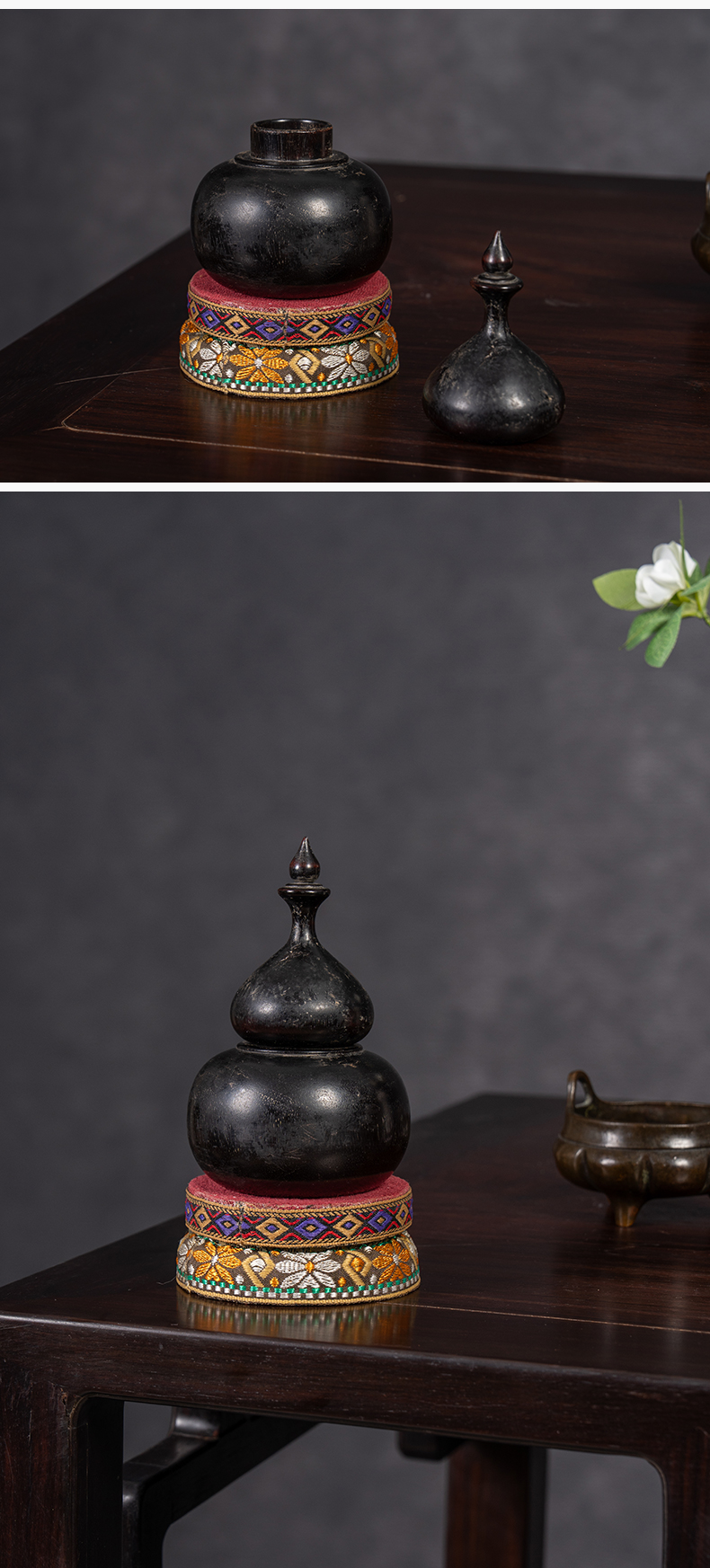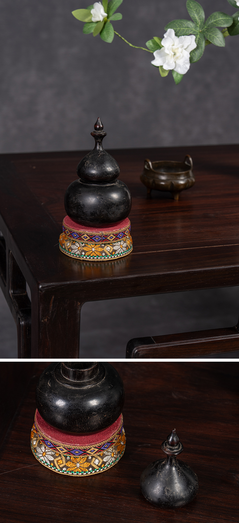 清 紫檀葫芦形香盒摆件