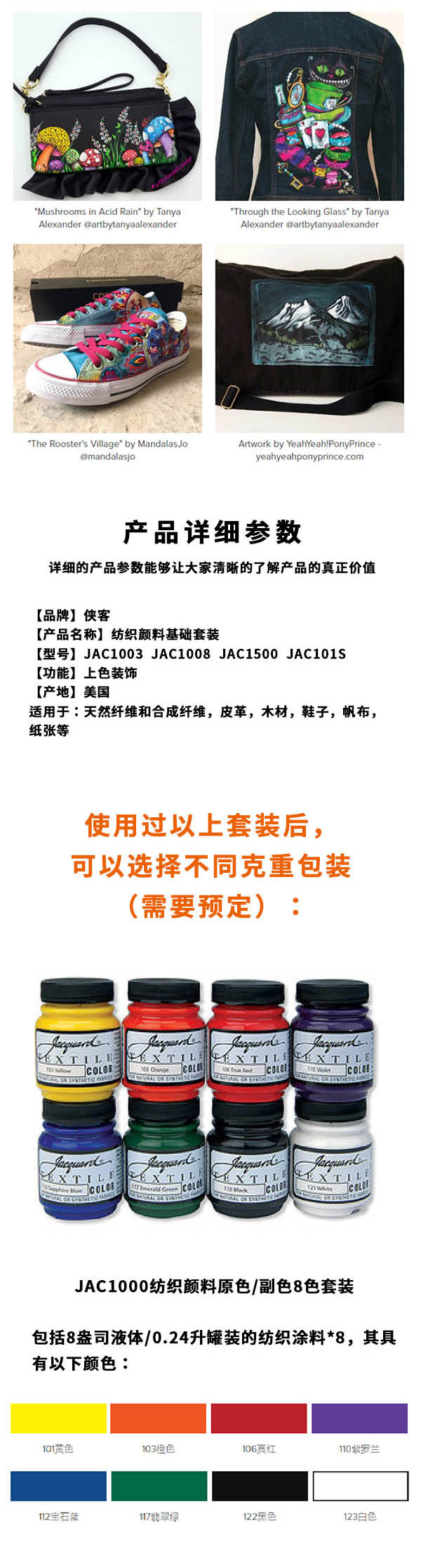 美国侠客纺织绘画颜料套装
