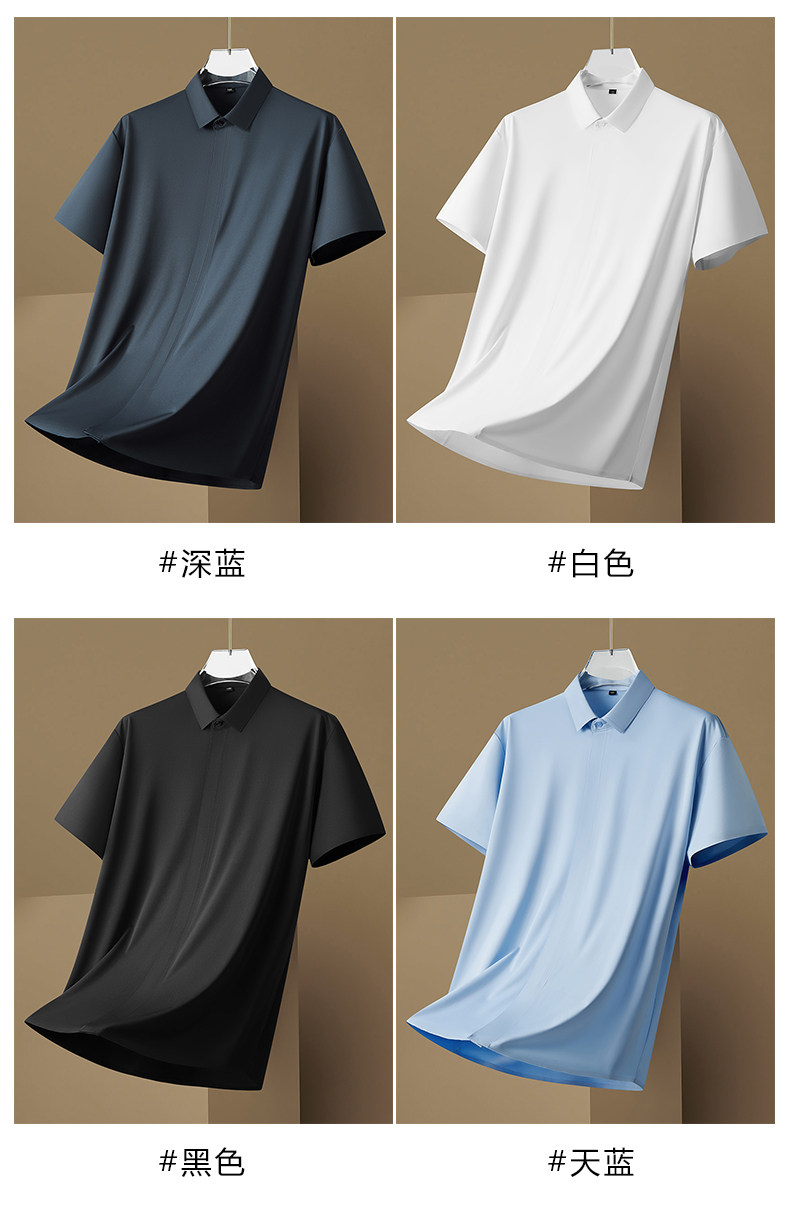 【DM】大依优型大码男装夏季封口纯色短袖衬衫商务休闲无痕上衣T恤350斤