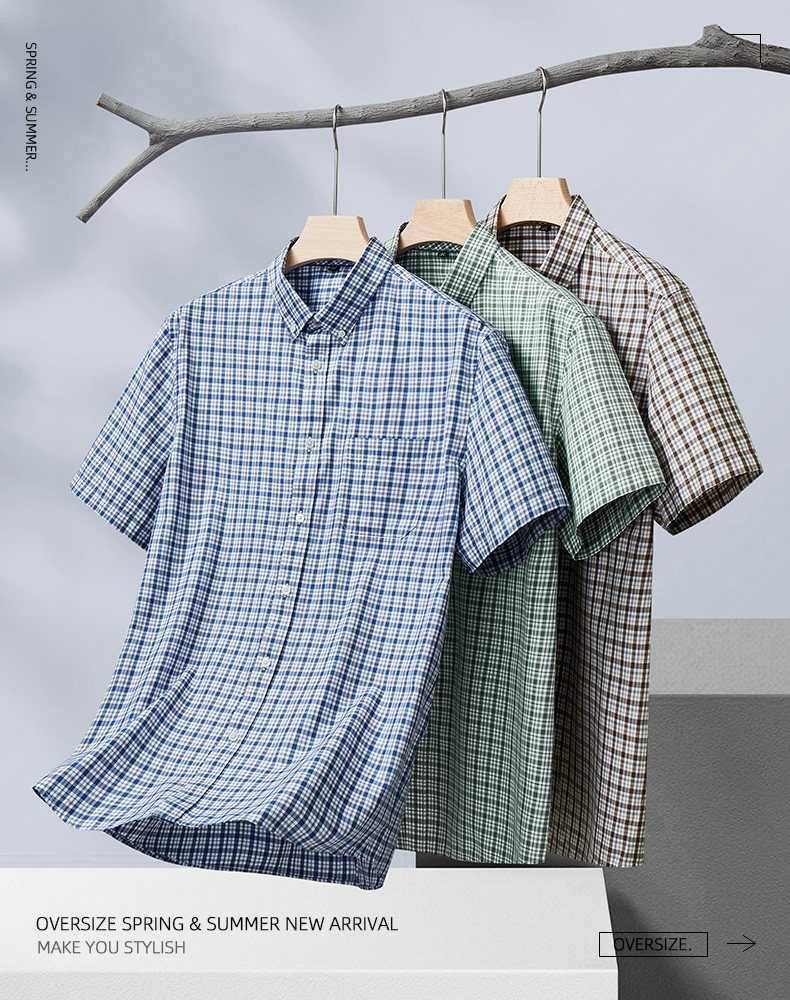 【DM】【纯棉】大依优型大码男装夏季格子短袖衬衫商务休闲上衣T恤320斤