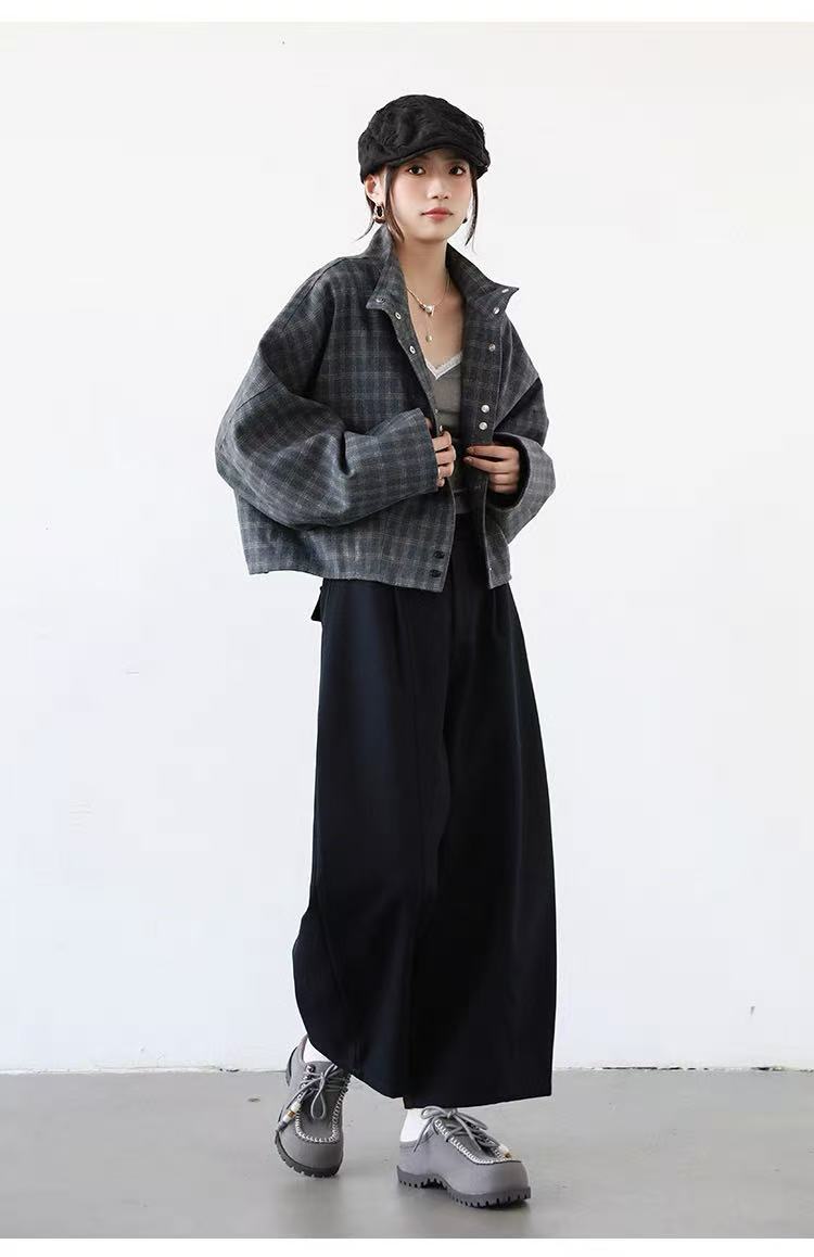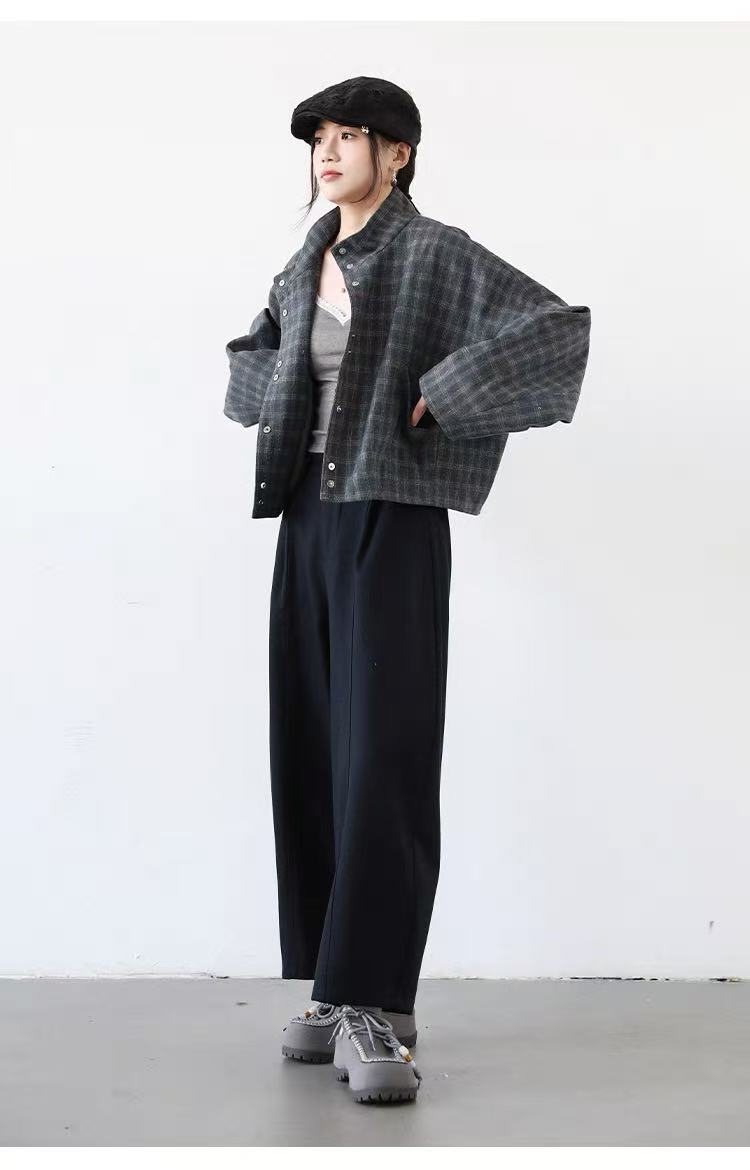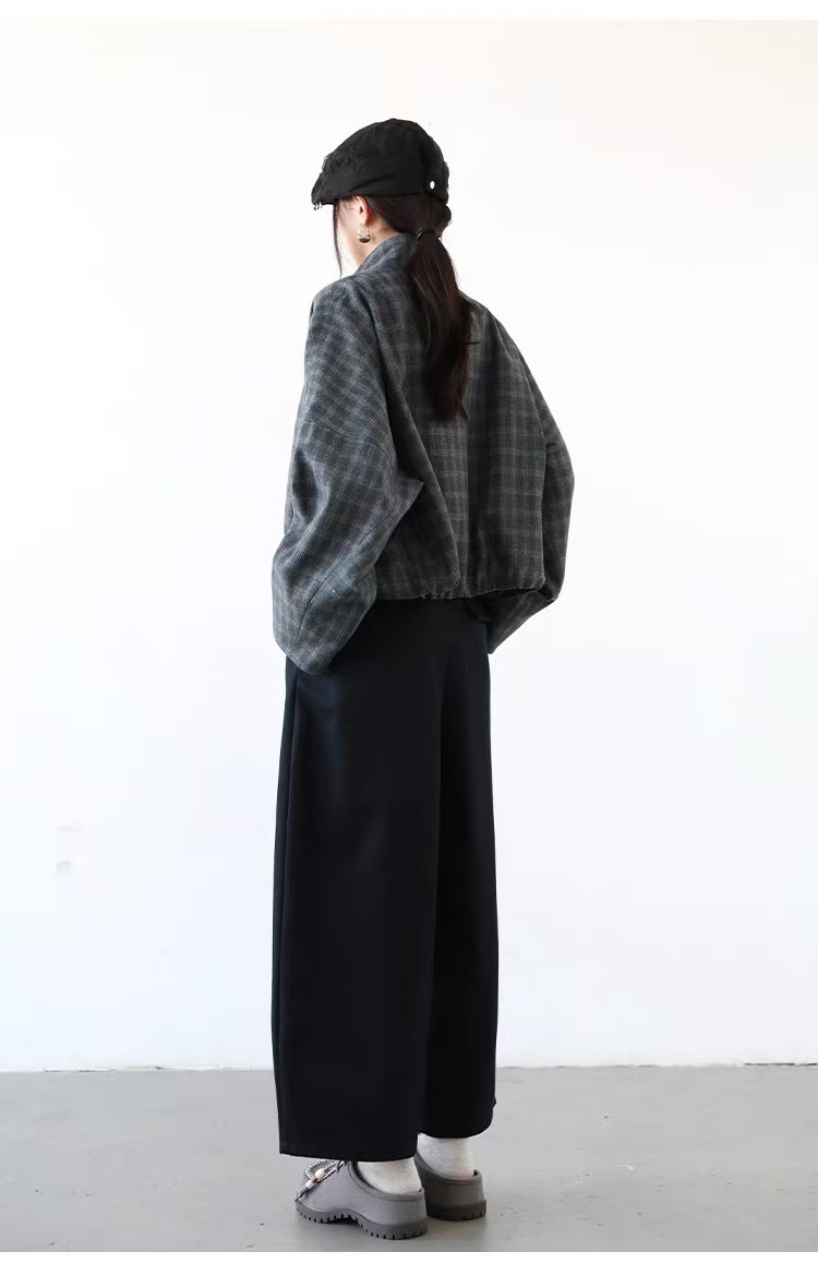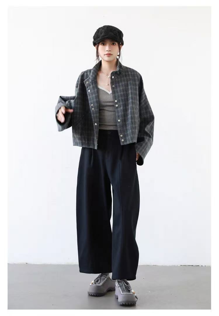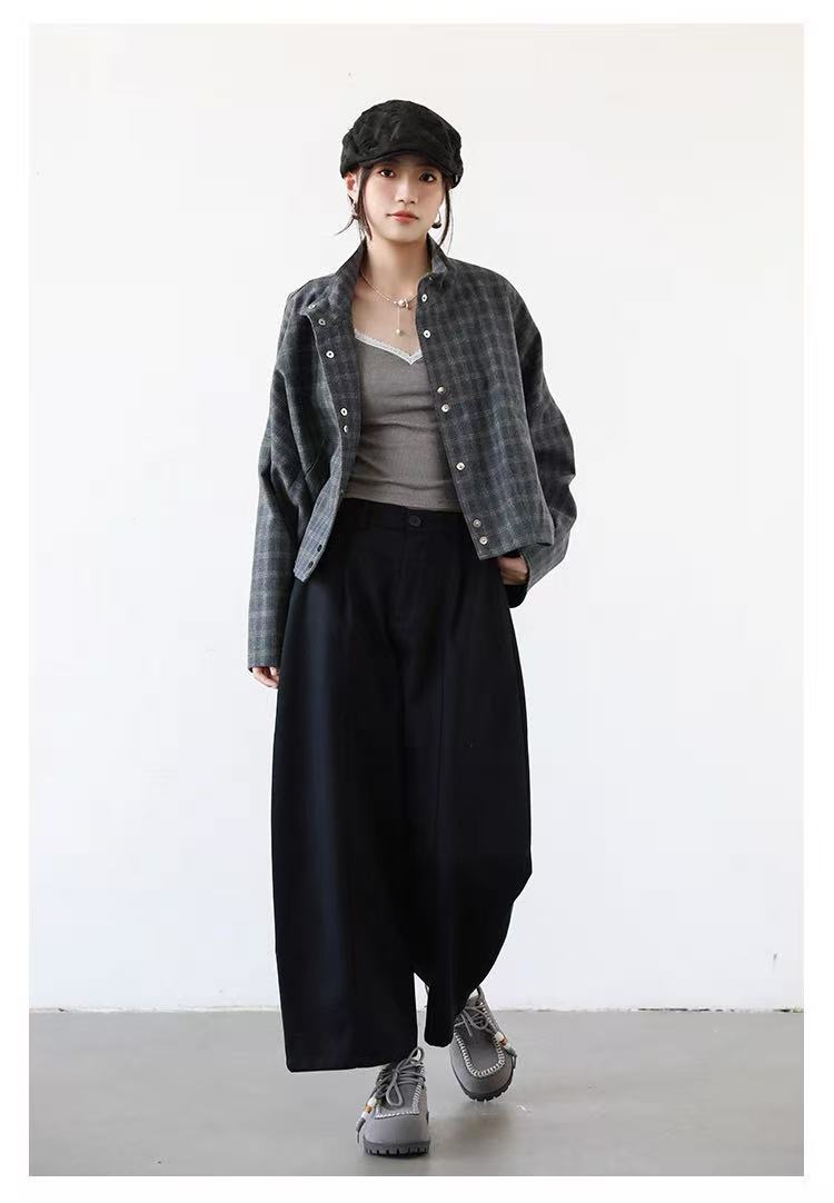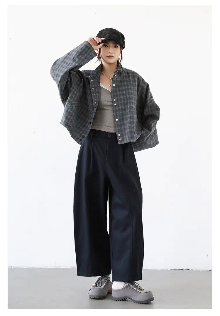 🔥【休闲裤】9029磨毛绒立体廓形量感天丝棉休闲裤女秋季百搭独特九分西装阔腿裤-喜出