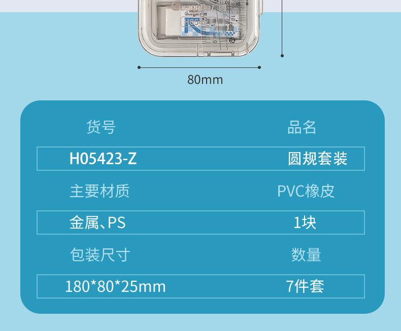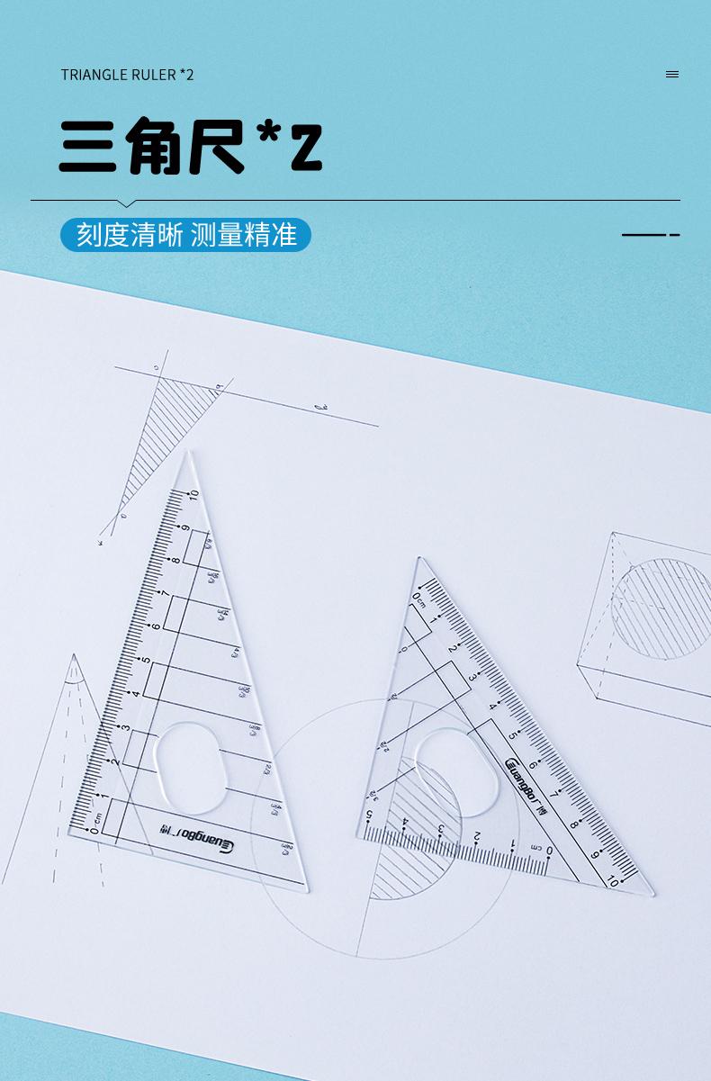 【广博】开学文具尺规7件套圆规/直尺/三角尺/量角器/1块橡皮/替芯