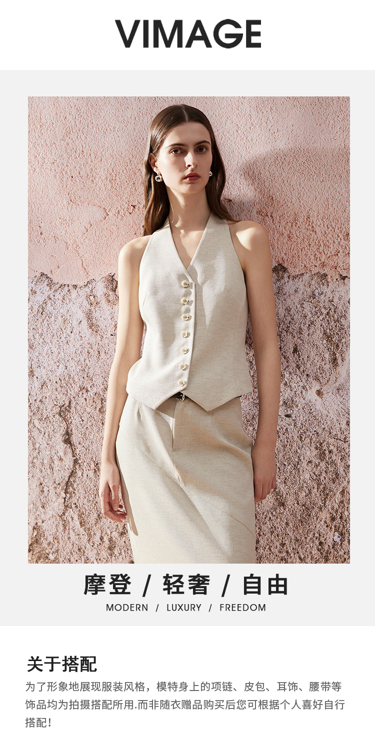 VIMAGE纬漫纪夏季新款时尚百搭修身显瘦马甲V2103728
