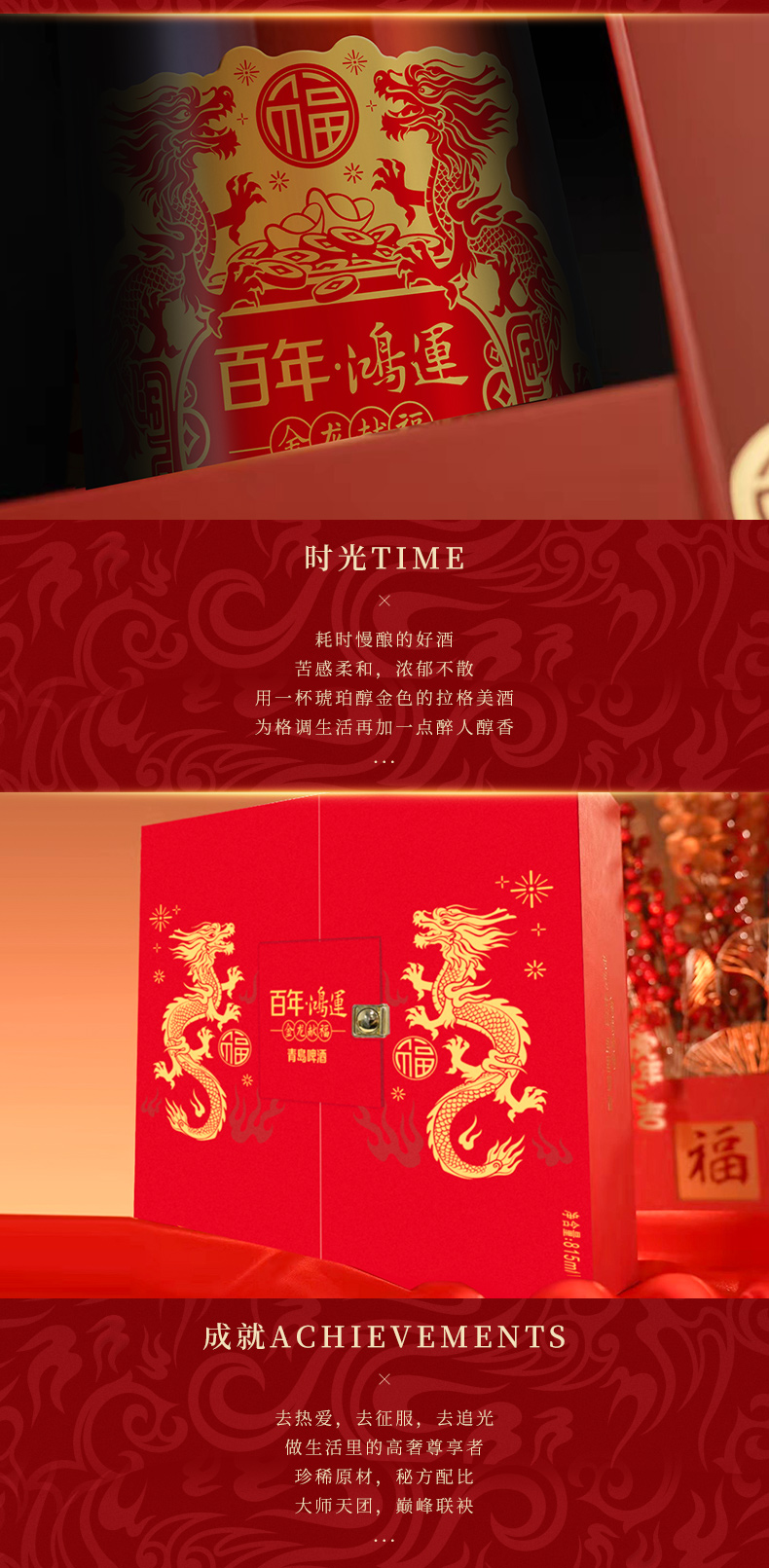青岛啤酒百年鸿运(龙年版)19.8度815ml*1瓶礼盒装 商品图4