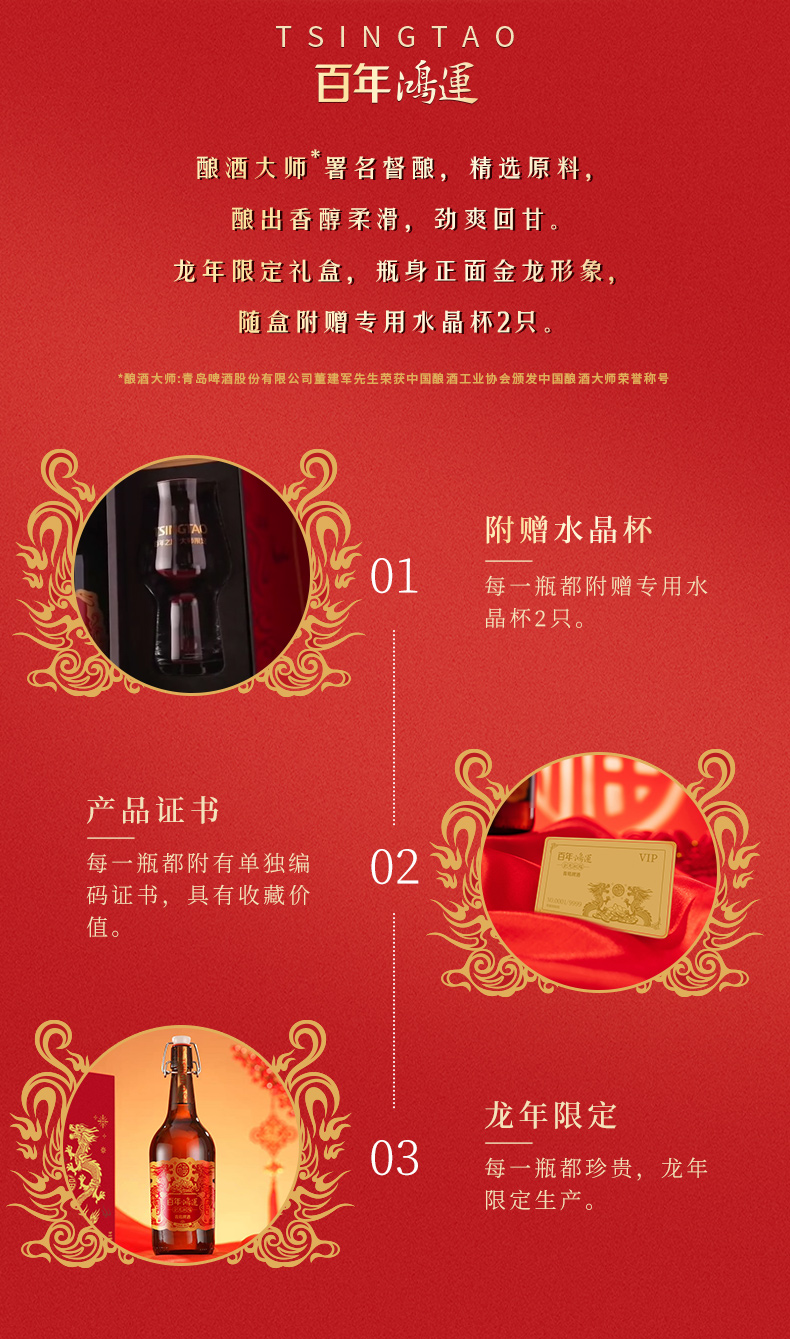 青岛啤酒百年鸿运(龙年版)19.8度815ml*1瓶礼盒装 商品缩略图0 青岛啤酒百年鸿运(龙年版)19.8度815ml*1瓶礼盒装 商品缩略图1 青岛啤酒百年鸿运(龙年版)19.8度815ml*1瓶礼盒装 商品缩略图2 青岛啤酒百年鸿运(龙年版)19.8度815ml*1瓶礼盒装 商品缩略图3 青岛啤酒百年鸿运(龙年版)19.8度815ml*1瓶礼盒装 商品缩略图4