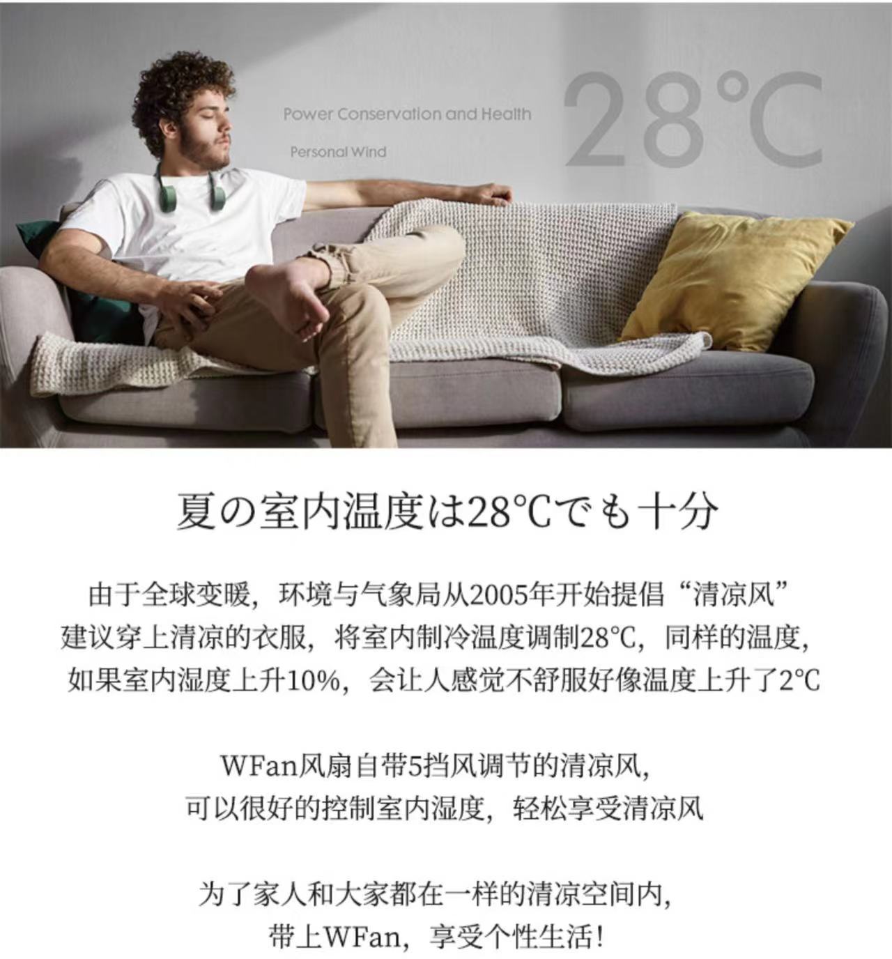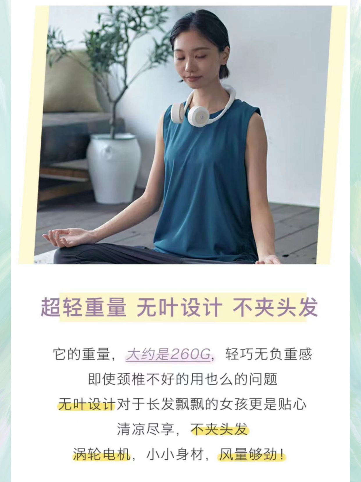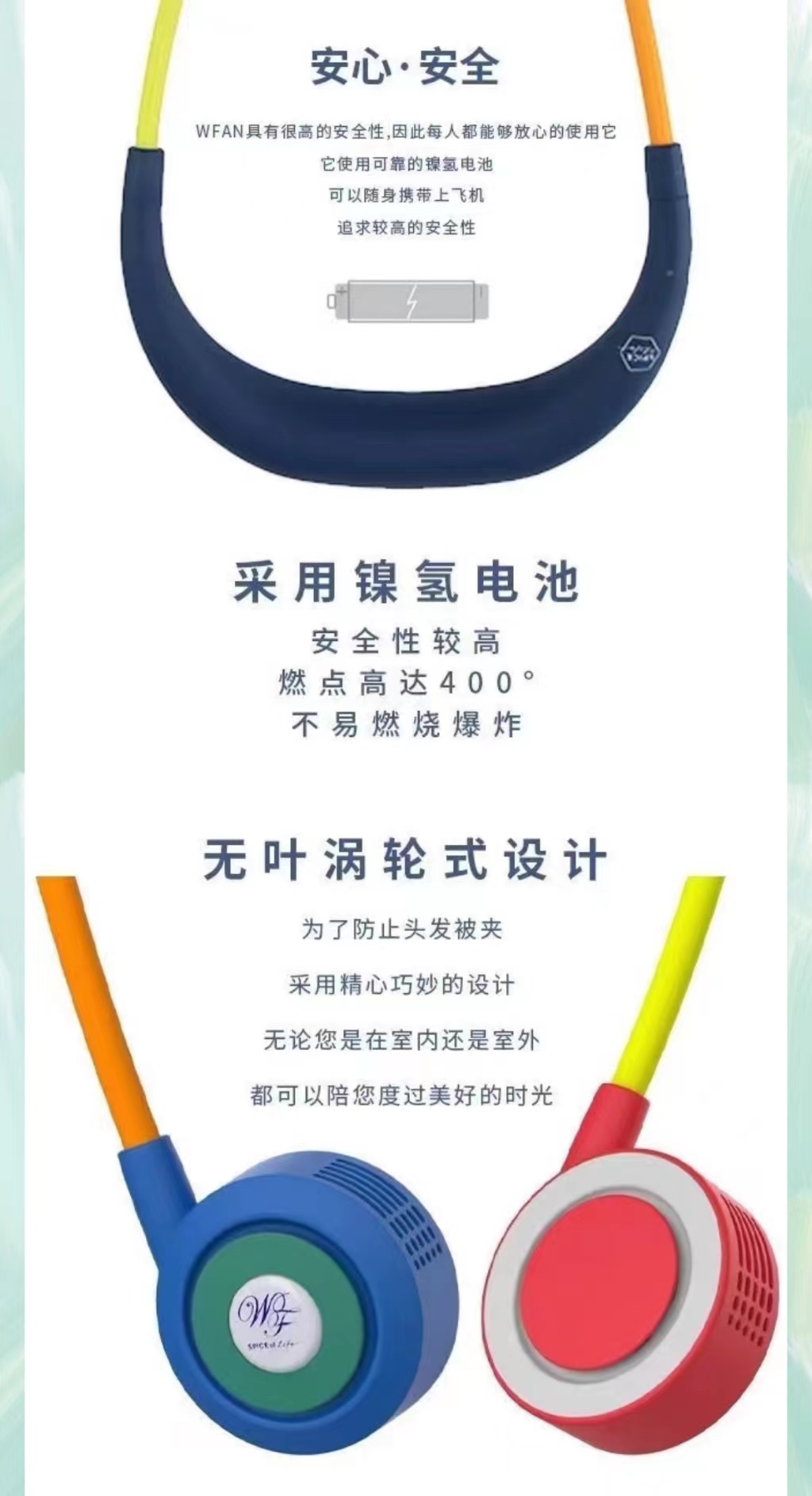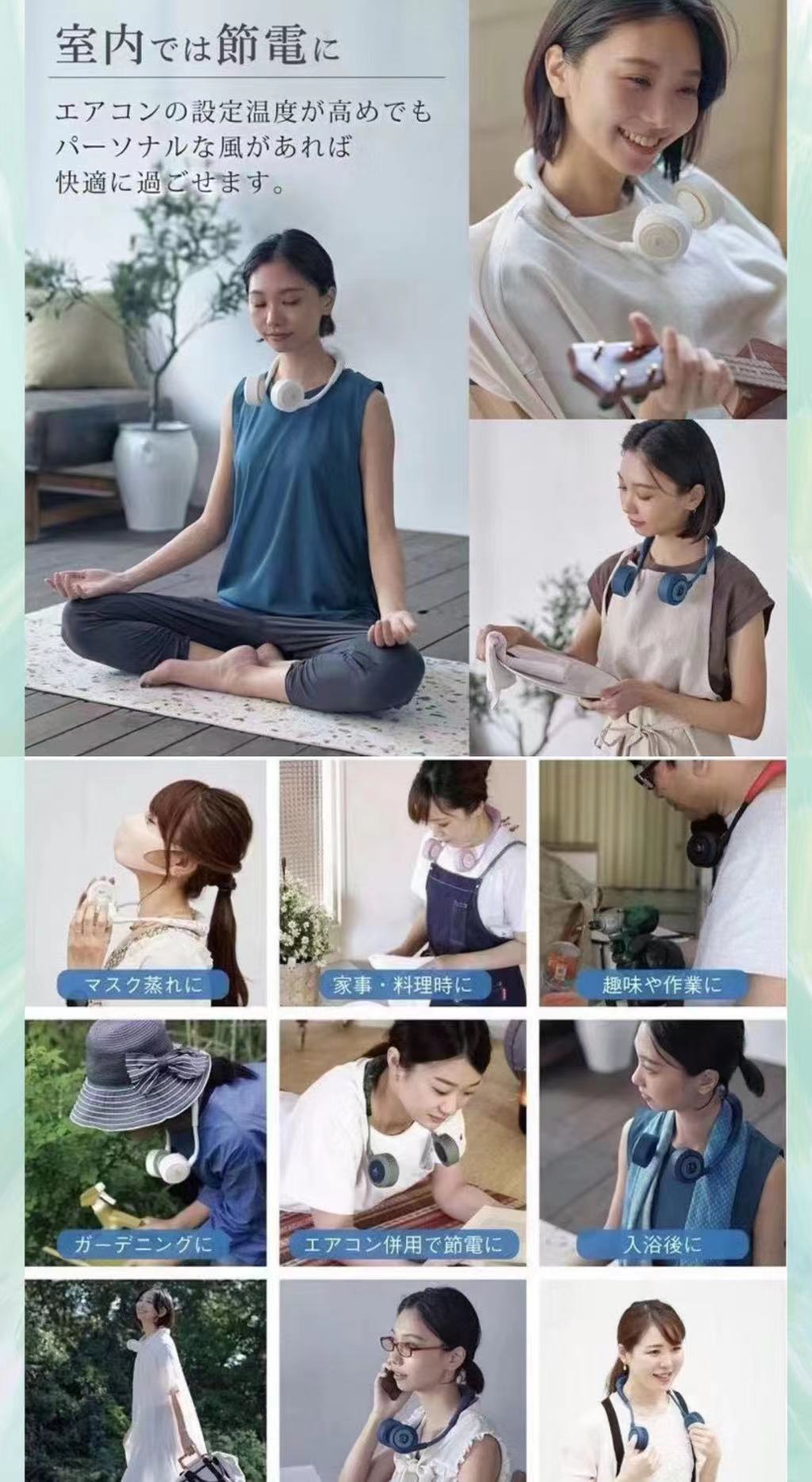 wfan 瑜伽款撞色无叶挂脖风扇