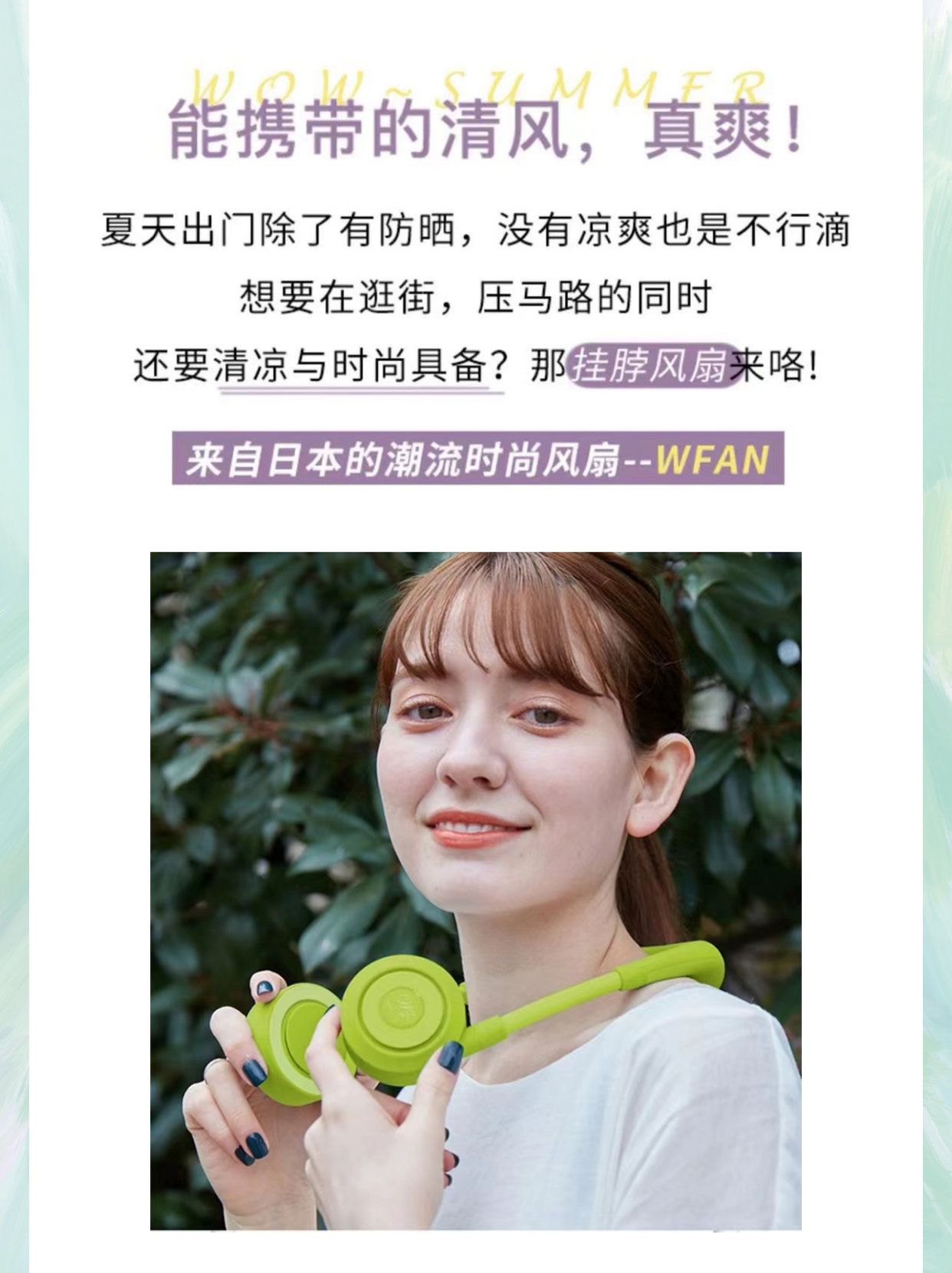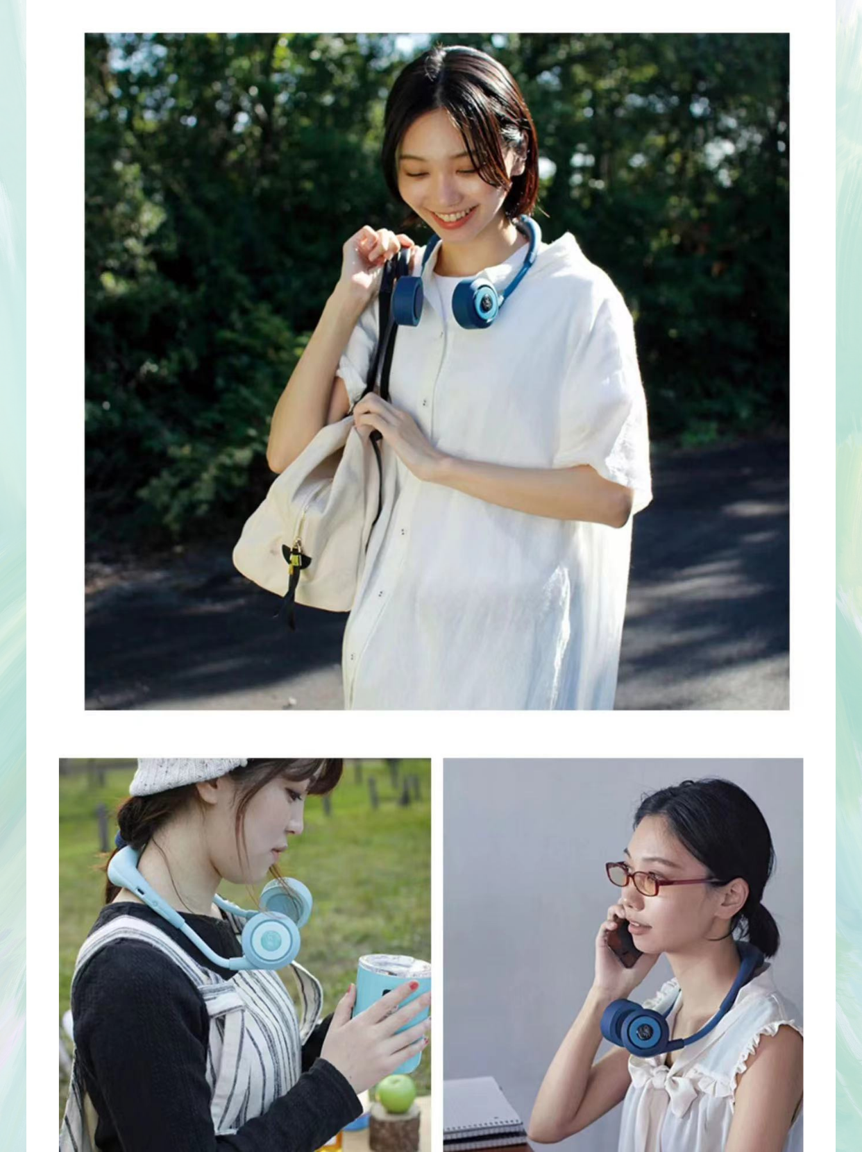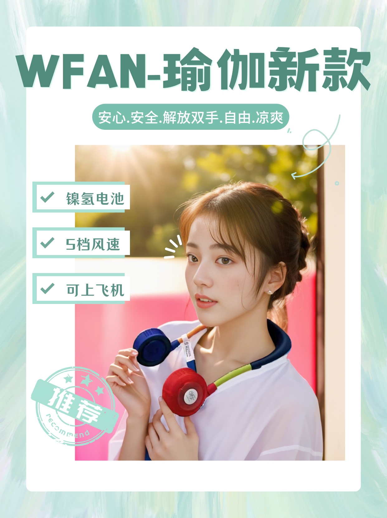 wfan 瑜伽款撞色无叶挂脖风扇