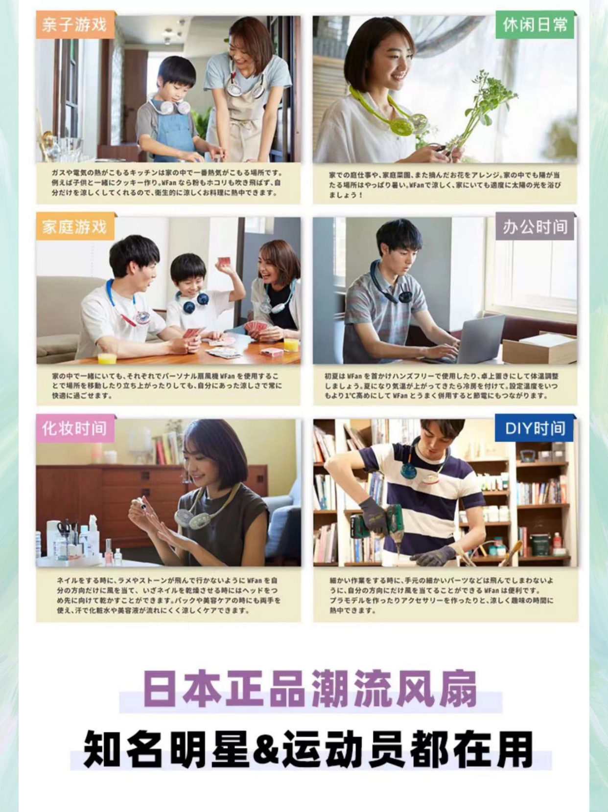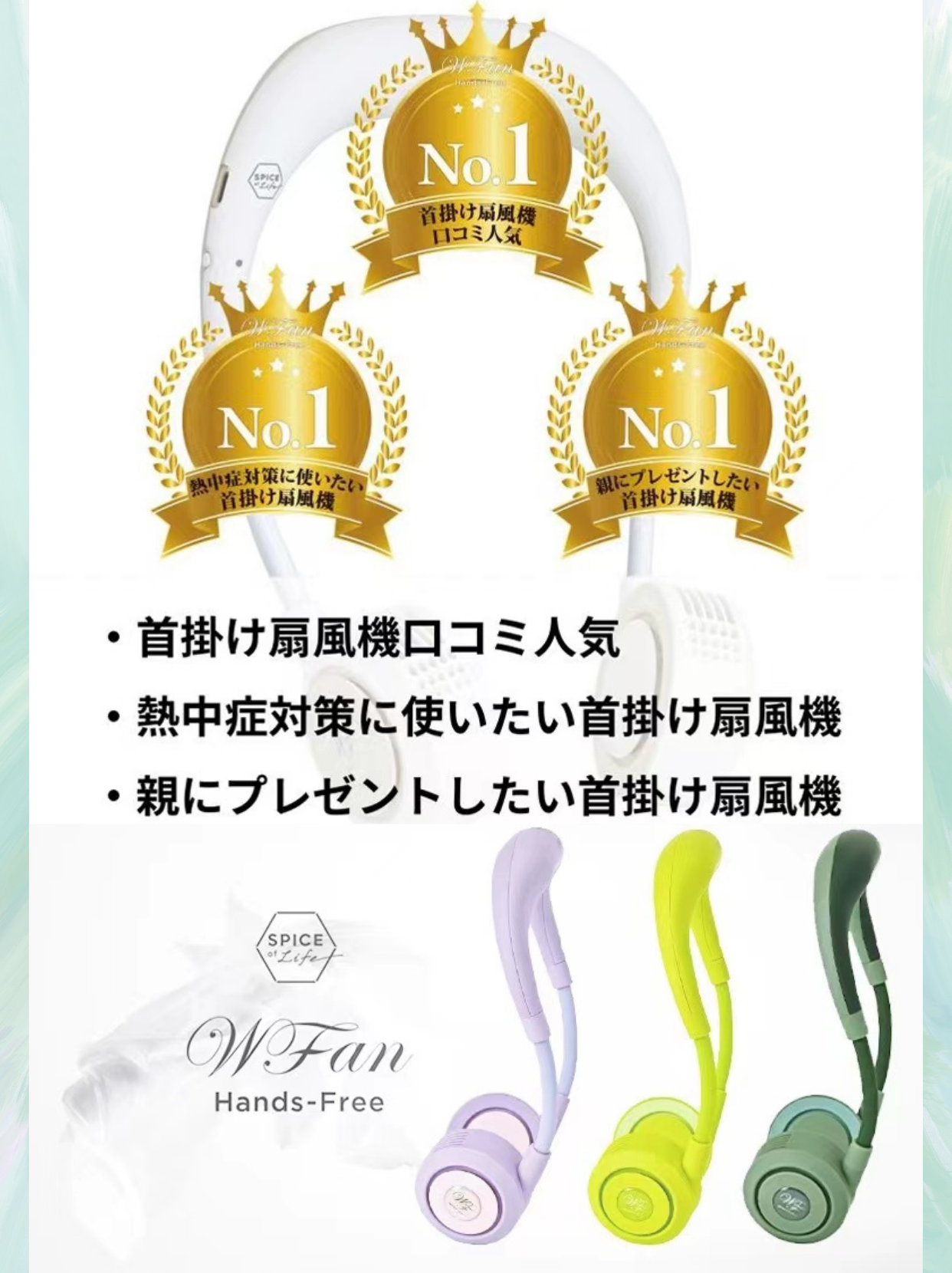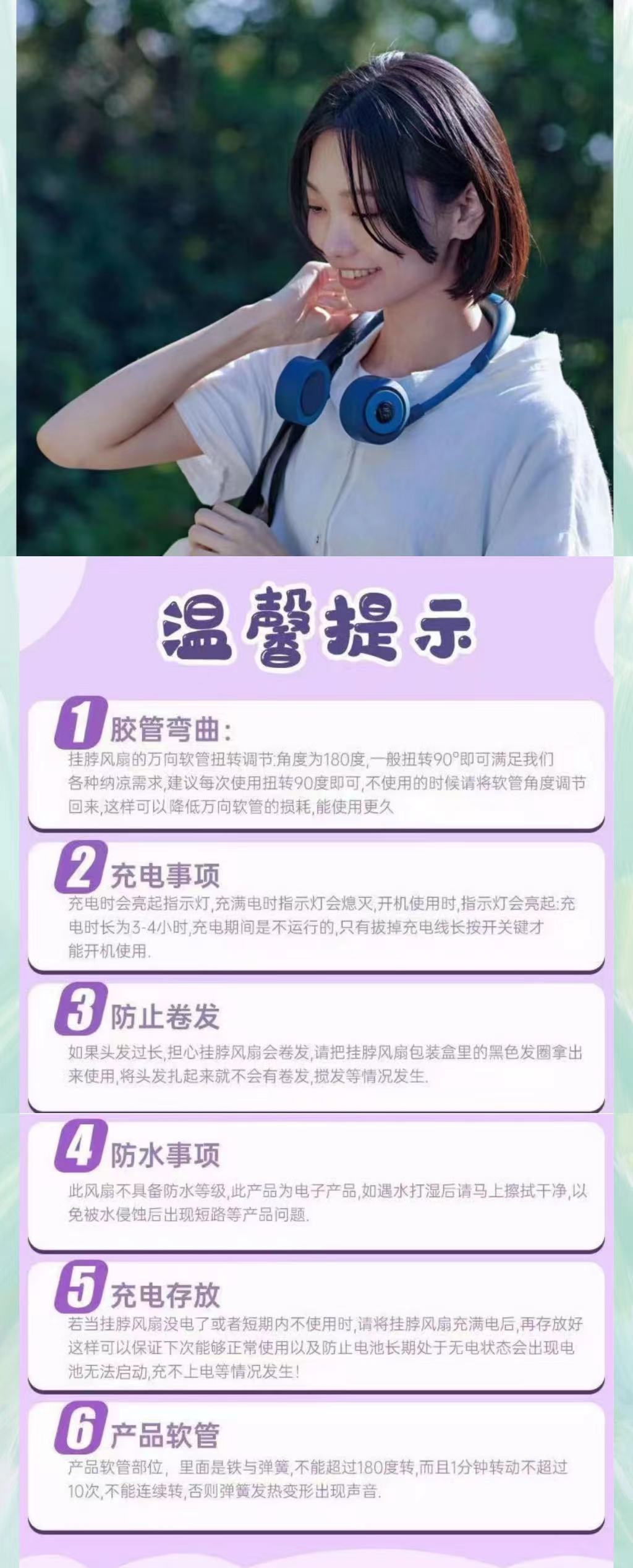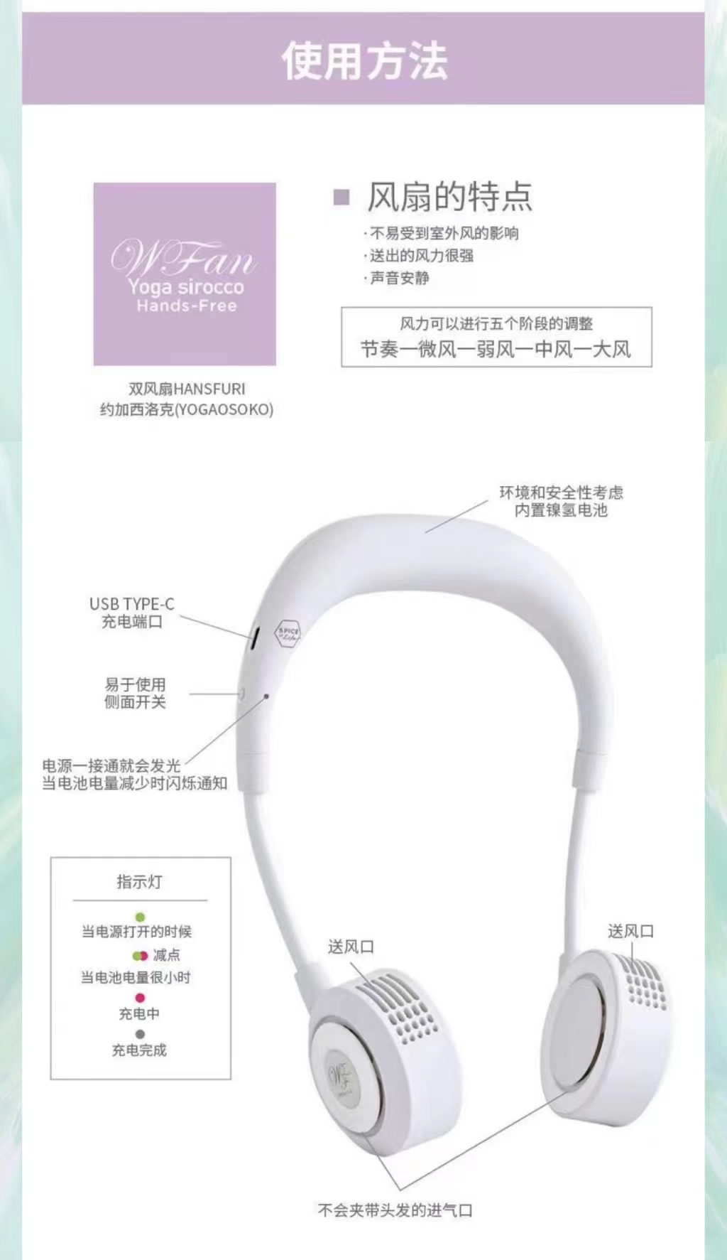 wfan 瑜伽款撞色无叶挂脖风扇
