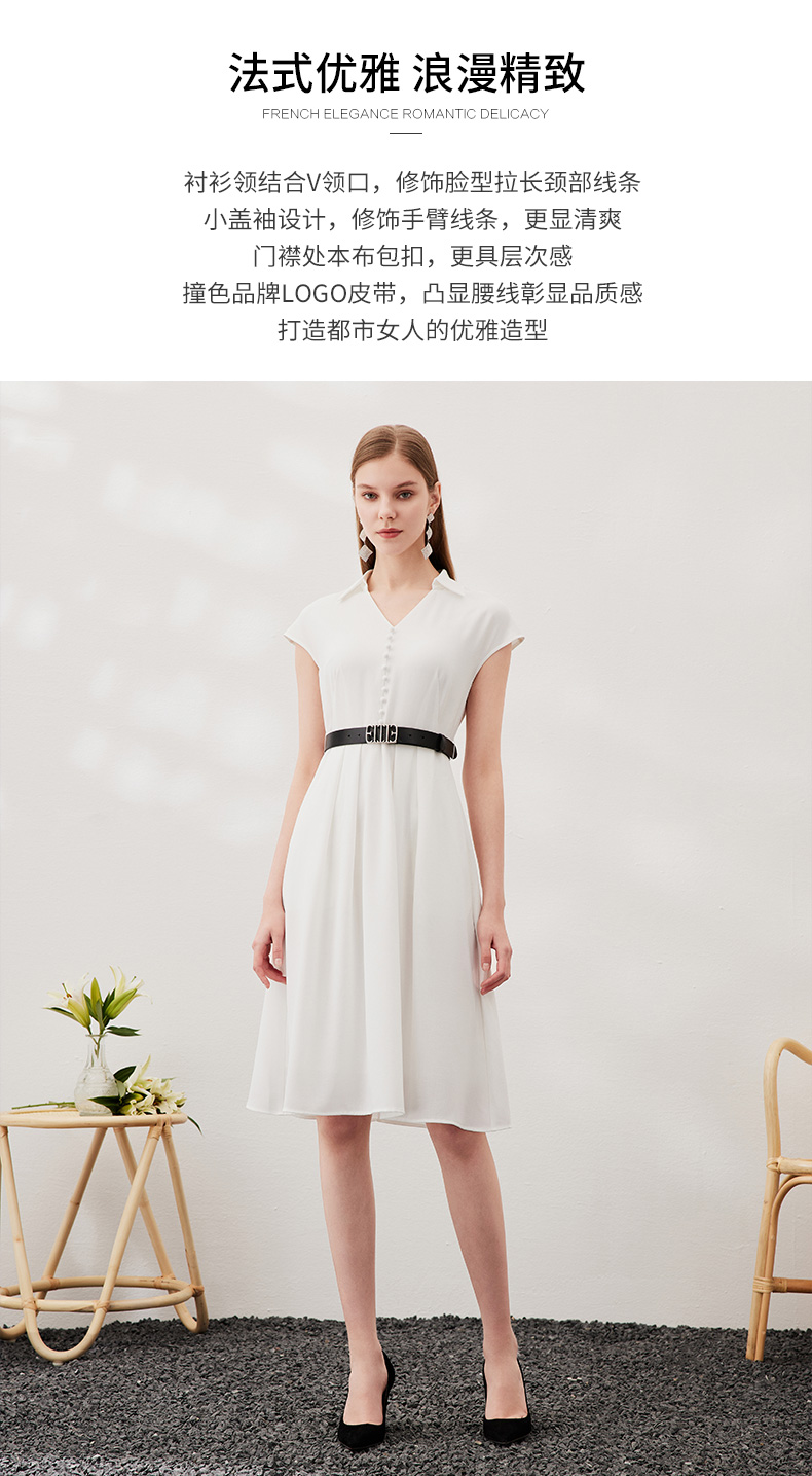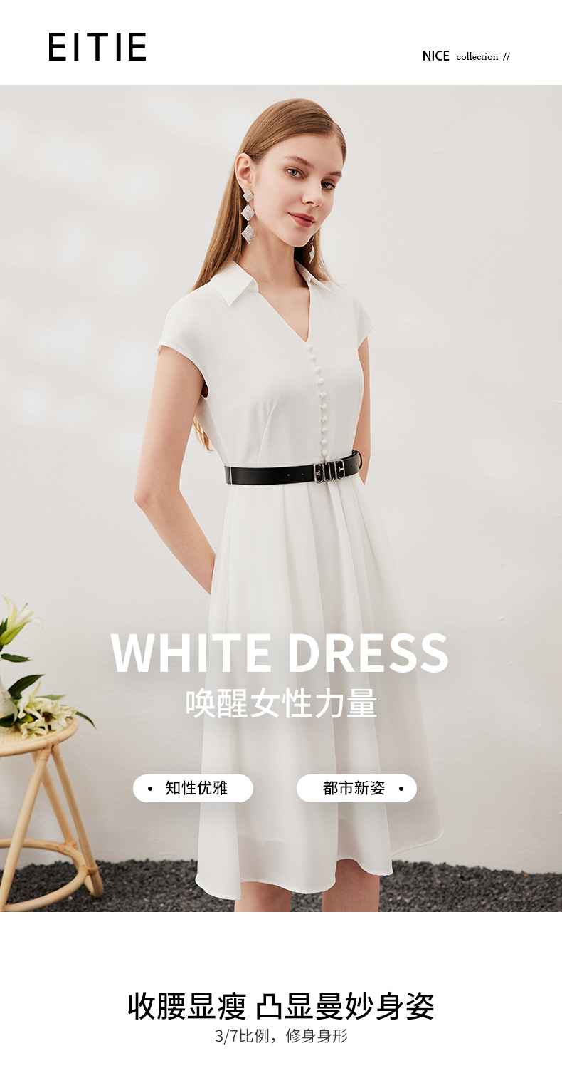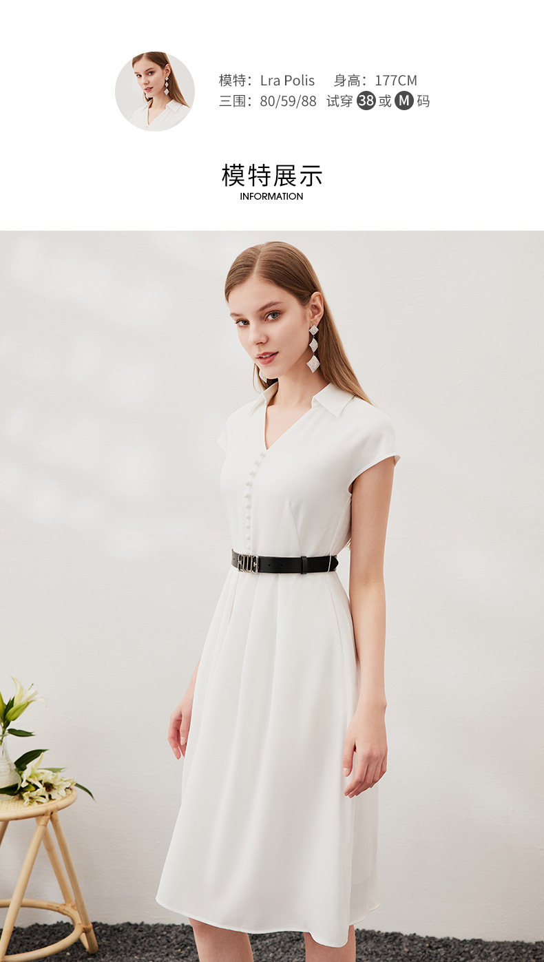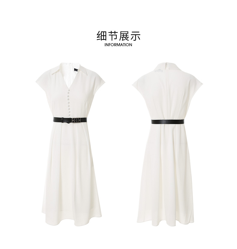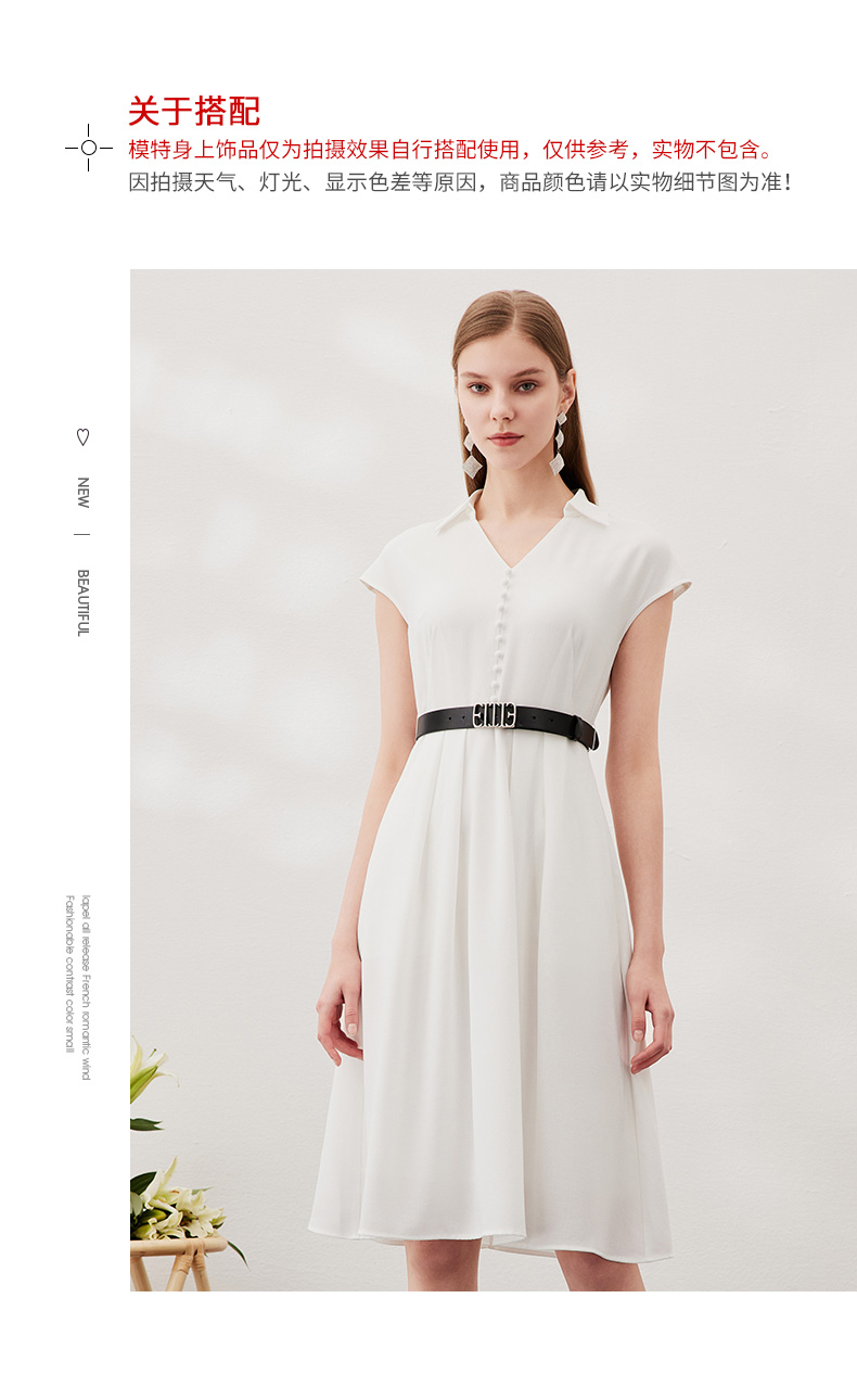 没有皮带-EITIE爱特爱夏季新款V领简约修身百搭连衣裙7007741