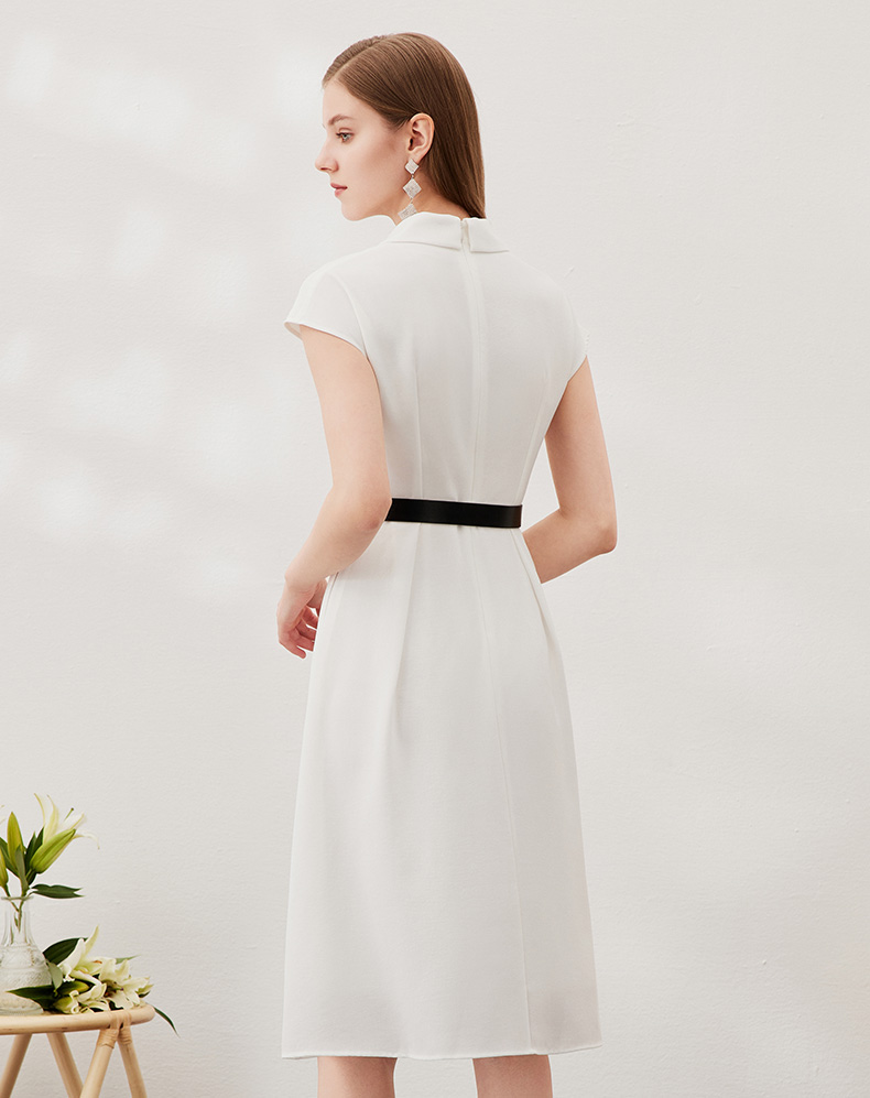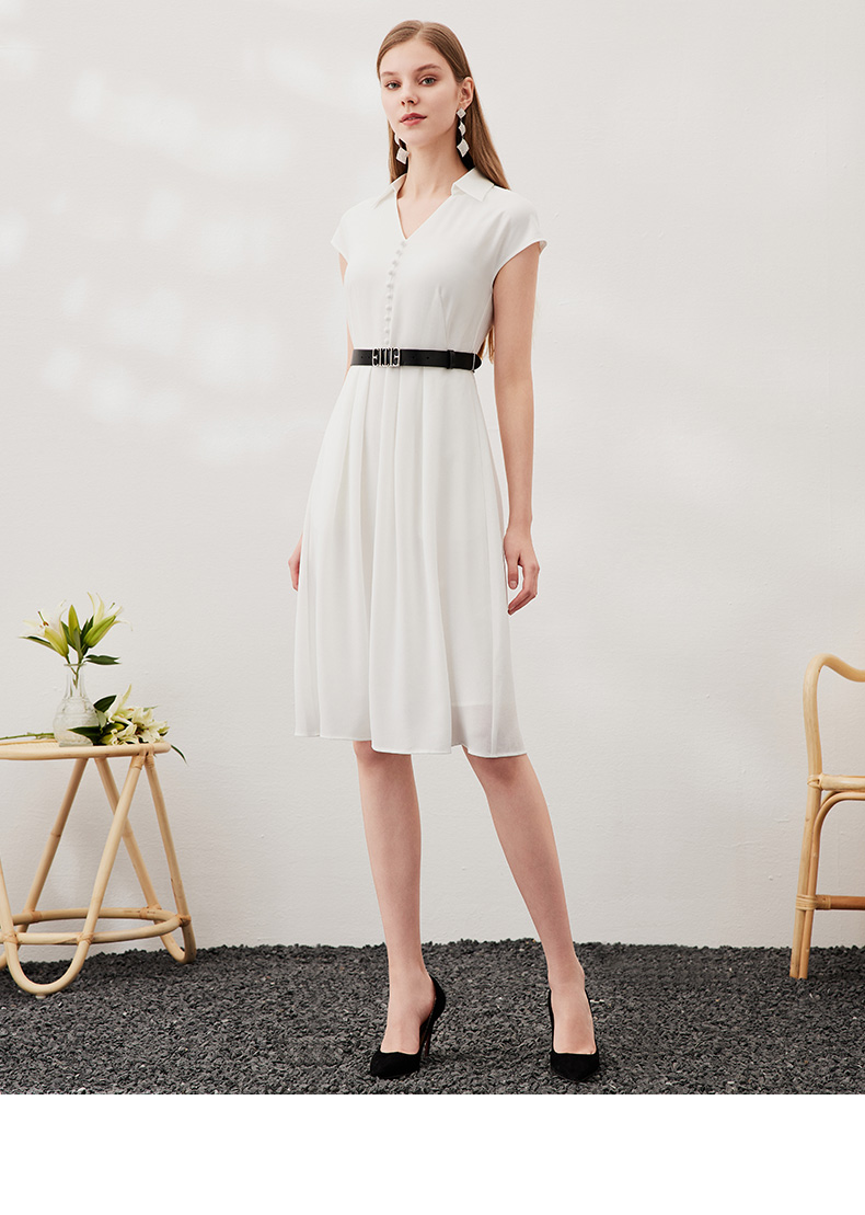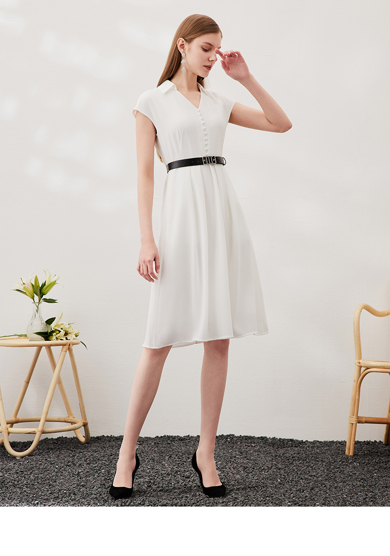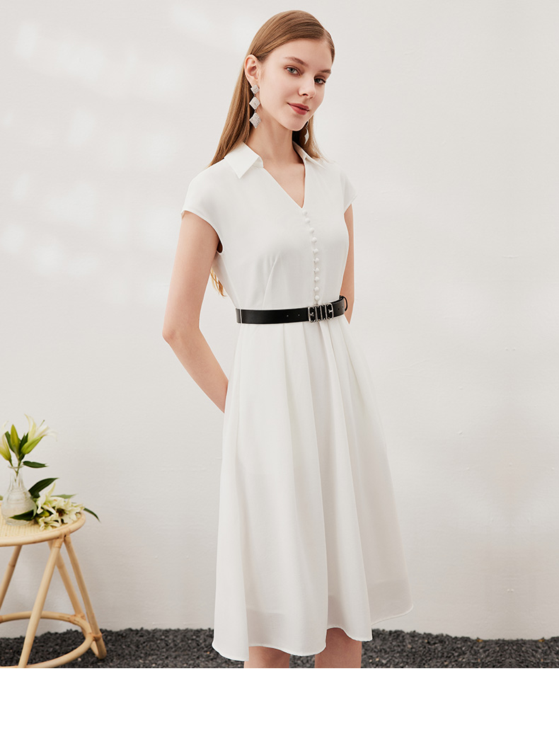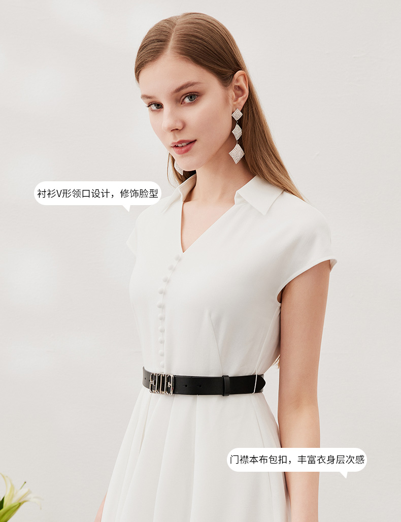 没有皮带-EITIE爱特爱夏季新款V领简约修身百搭连衣裙7007741