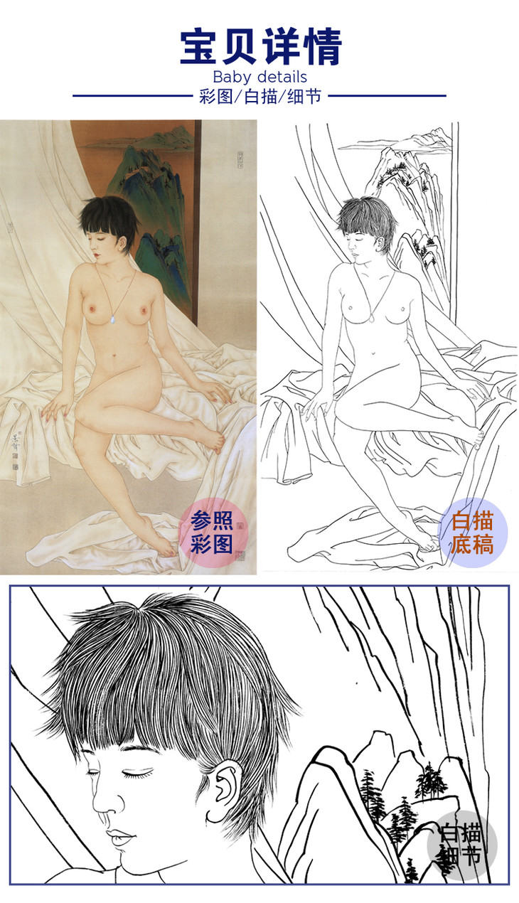 崔景哲竖幅工笔现代仕女人物白描底稿-人体-B034