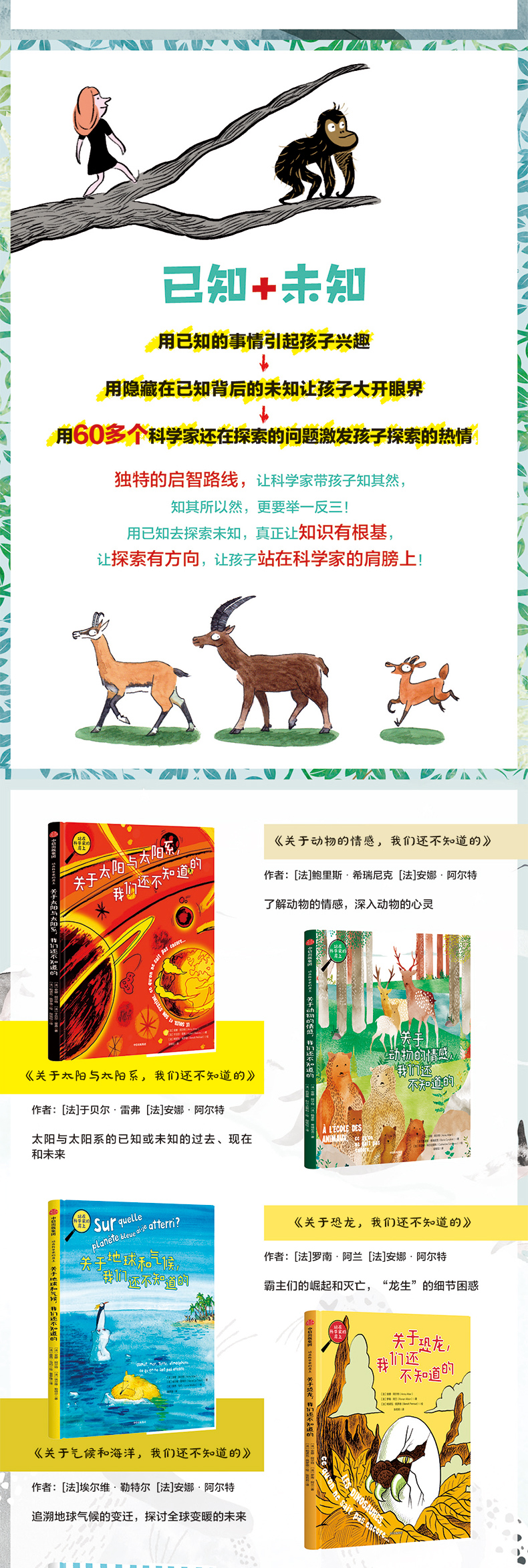 6.科学家一边为你讲述小动物的情感,一边提出那些尚在研究,却还没有答案的问题。用已知去铺展探索未知的路,有基础的知识才有扩散的可能,让孩子站在科学家的肩膀上去遥望更广阔的未知世界,下一个动物学家,就从这里起航。