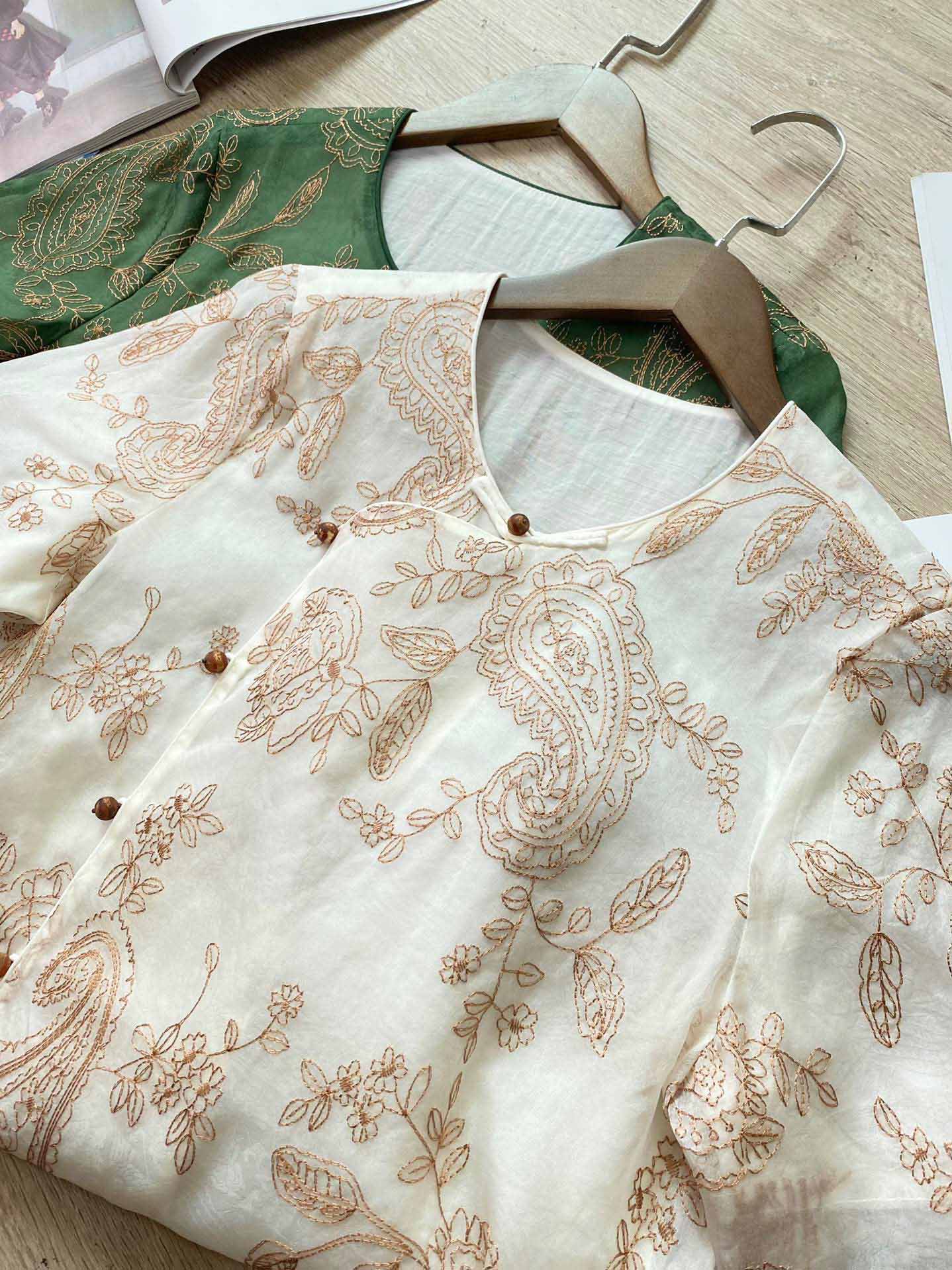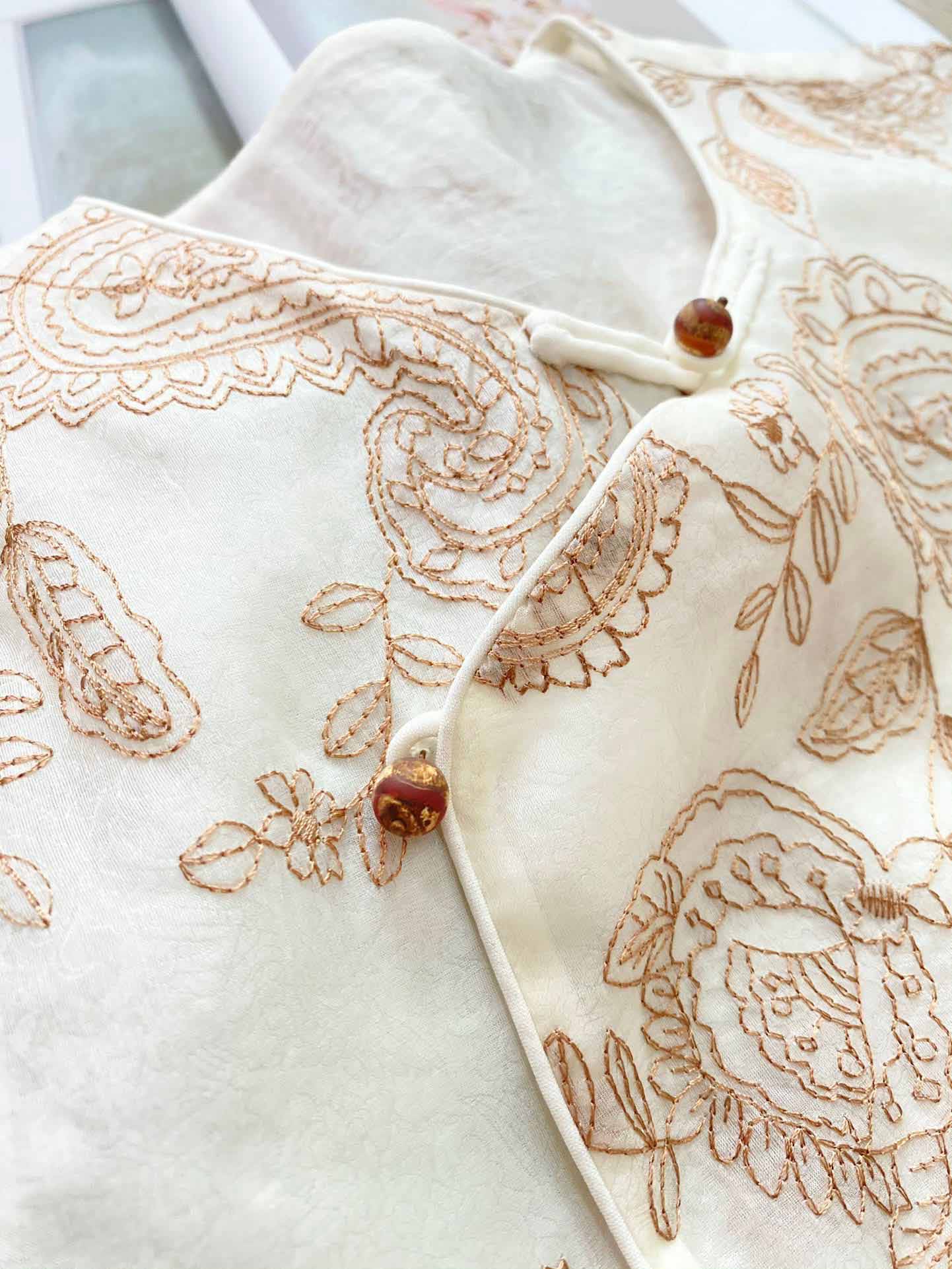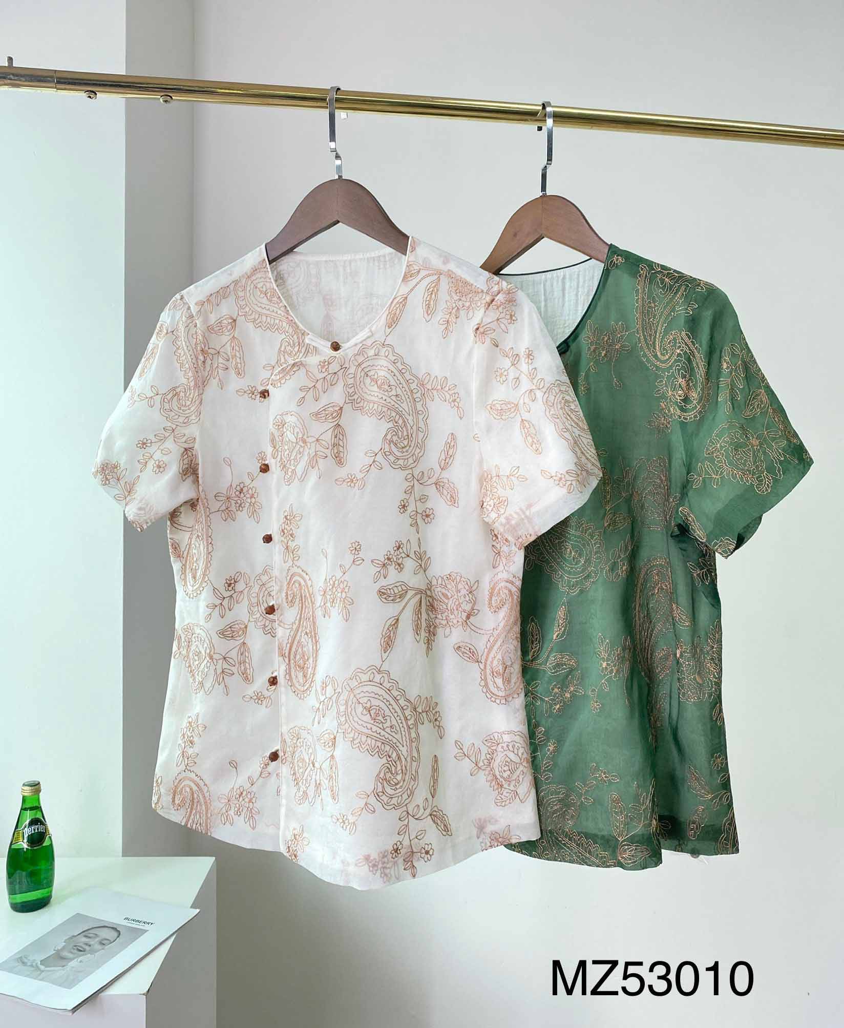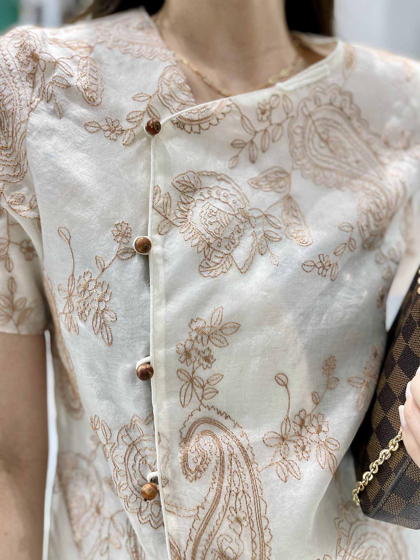 顺丰包邮洛诗琳35312夏季新款新中式小圆领重工刺绣真丝上衣53010