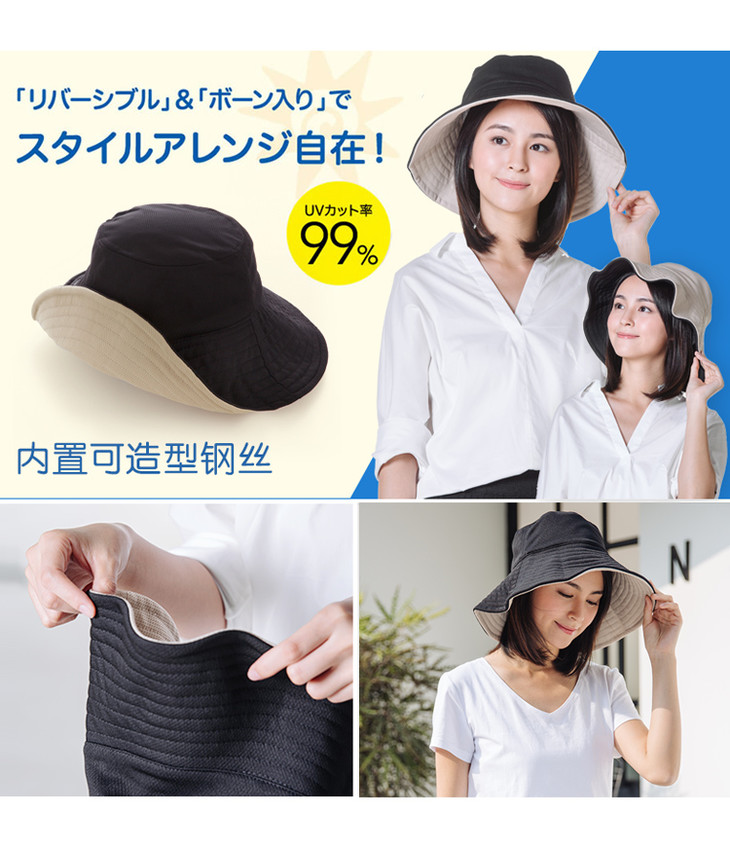 日本UVCUT户外防紫外线双面防晒遮太阳帽子女夏遮脸可折叠渔夫帽