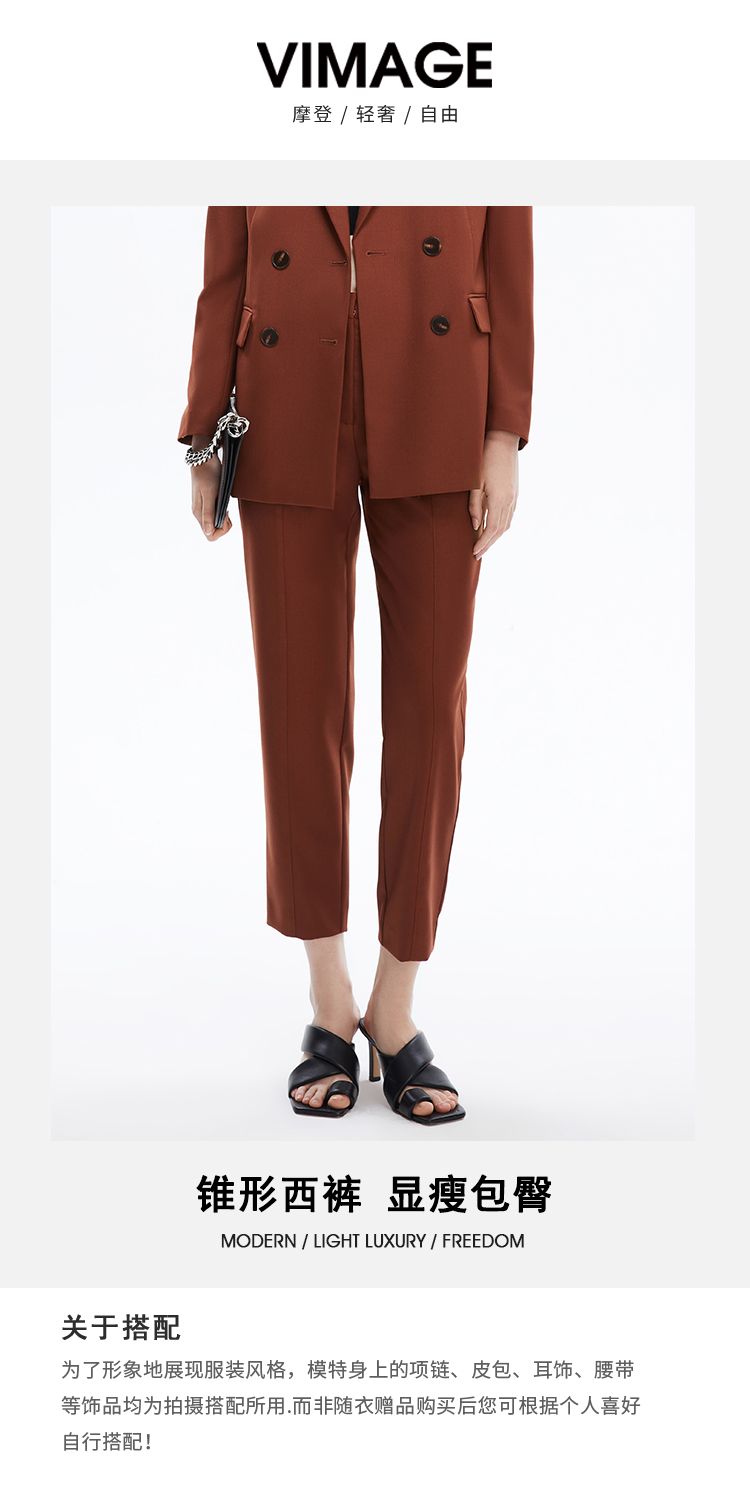 VIMAGE纬漫纪秋季新款商务通勤职场长休闲直筒西装裤V1605222
