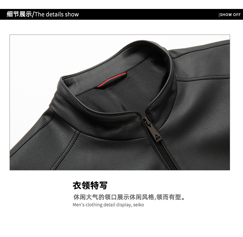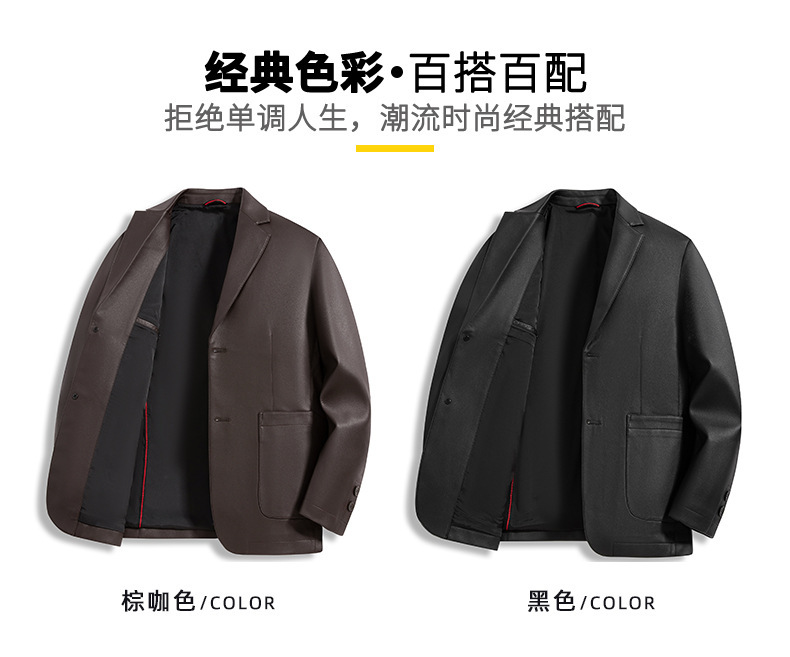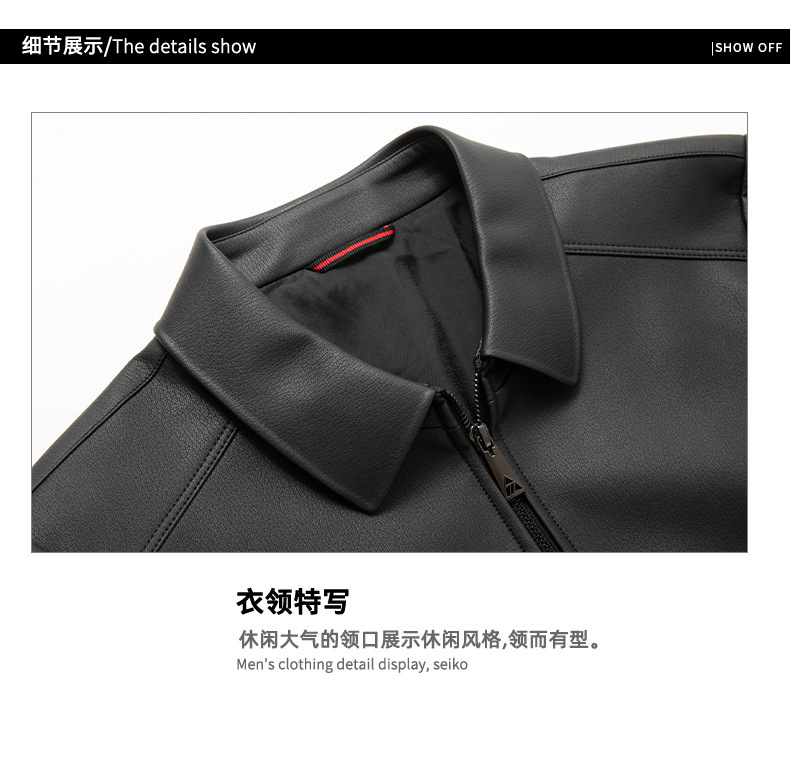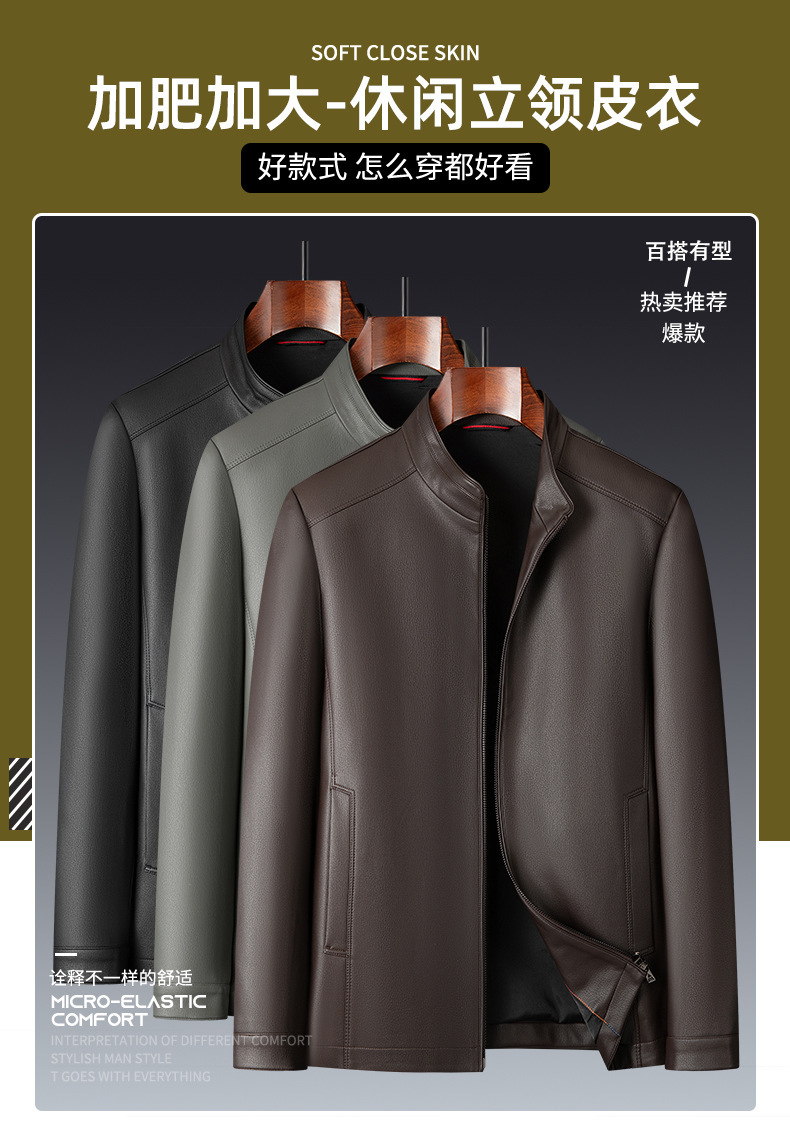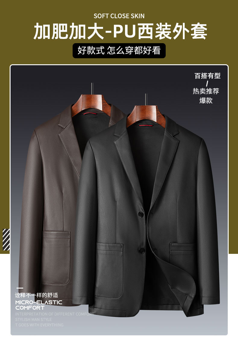 【DWP】大依优型大码男装西装领皮衣男翻领皮夹克商务休闲上衣外套皮U