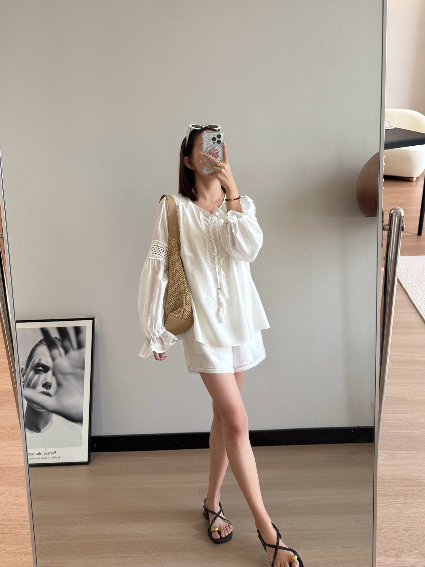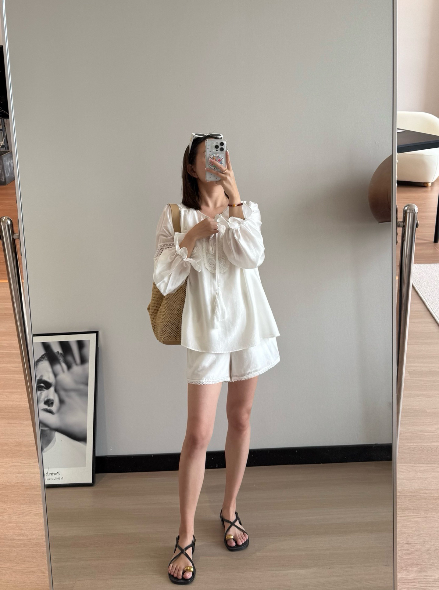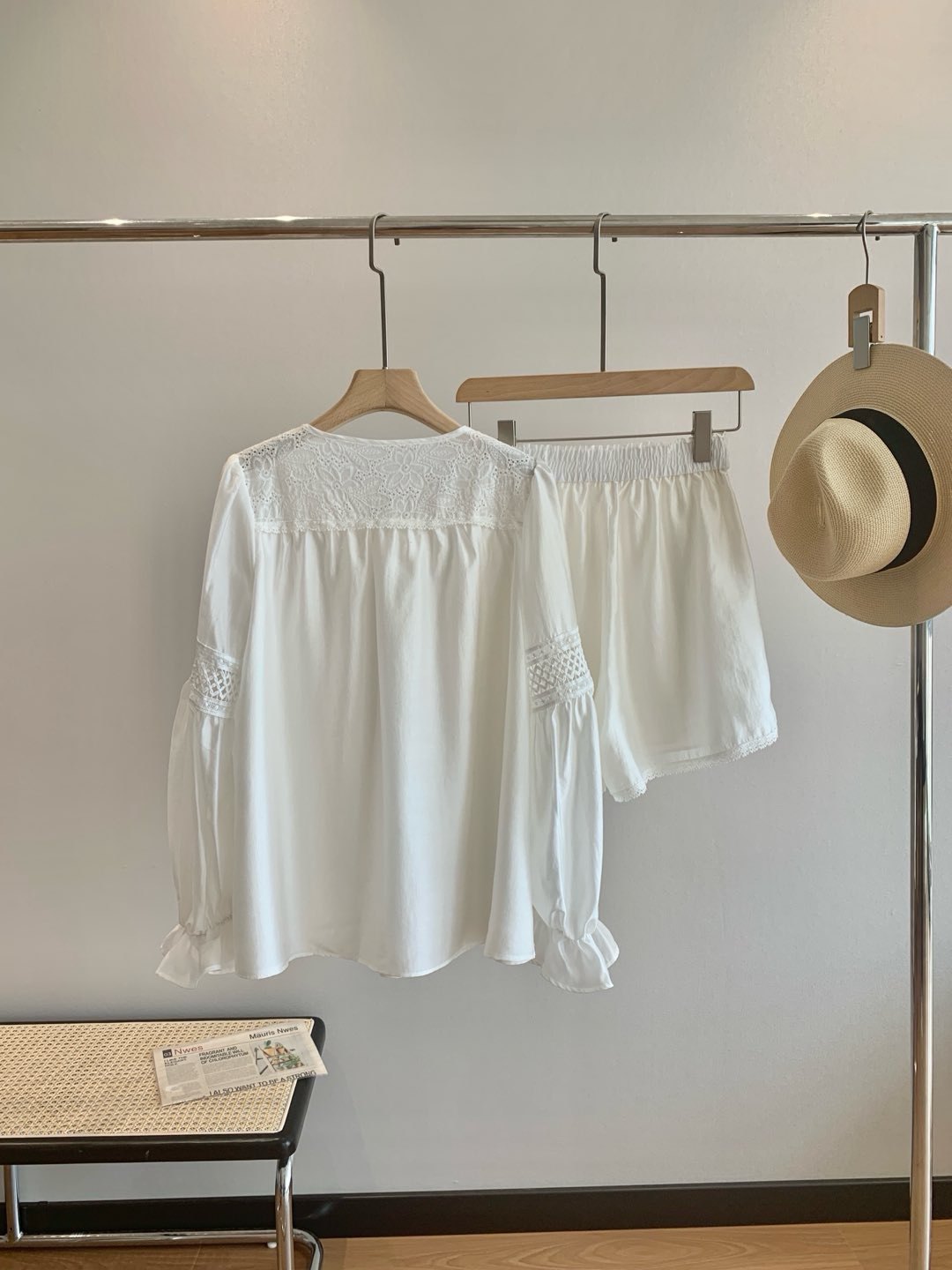 🔺自留款Fabriqu*e镂空刺绣衬衫短裤套装