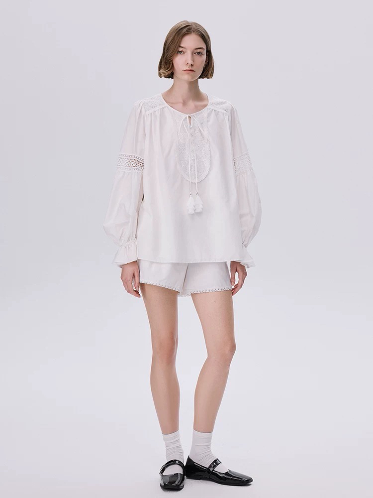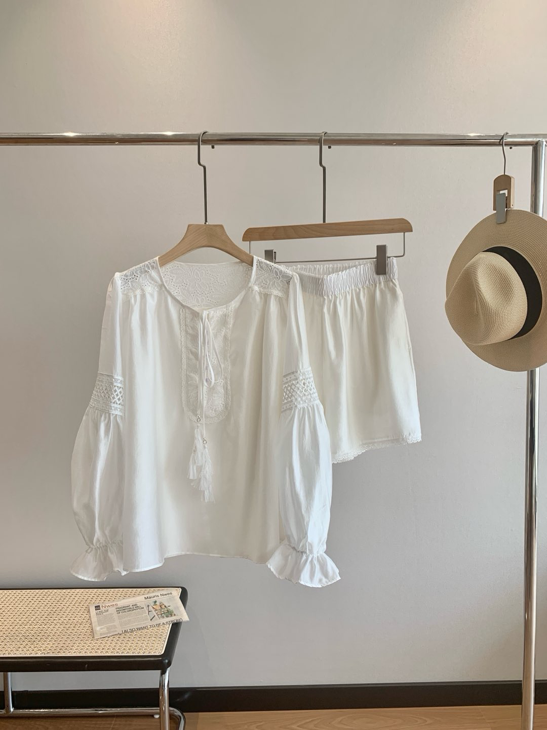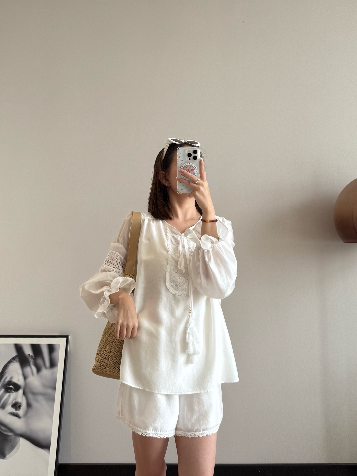 🔺自留款Fabriqu*e镂空刺绣衬衫短裤套装