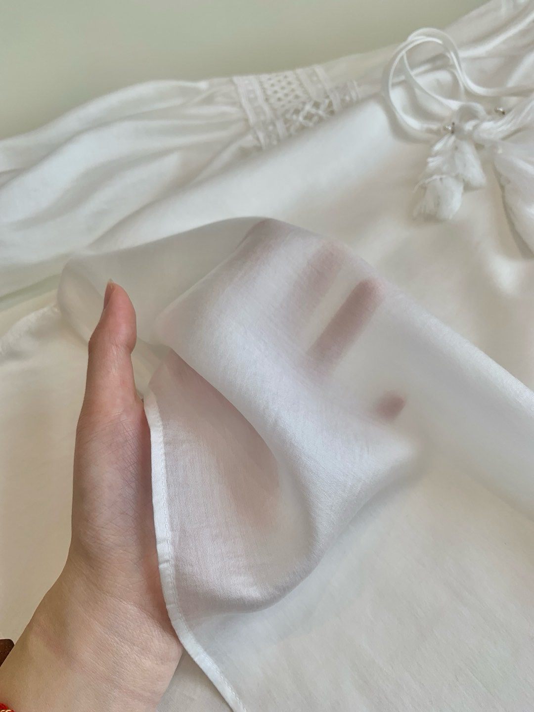 内衬采用100%全棉纱,柔软轻薄,亲肤性很好,软绵绵的,吸汗透气不闷热,也没有什么负担感,无弹,轻盈柔顺,没什么重量,穿起来很飘逸。
