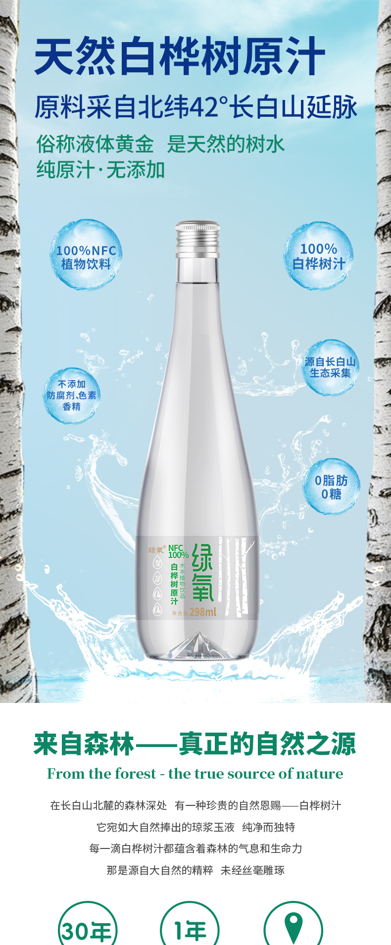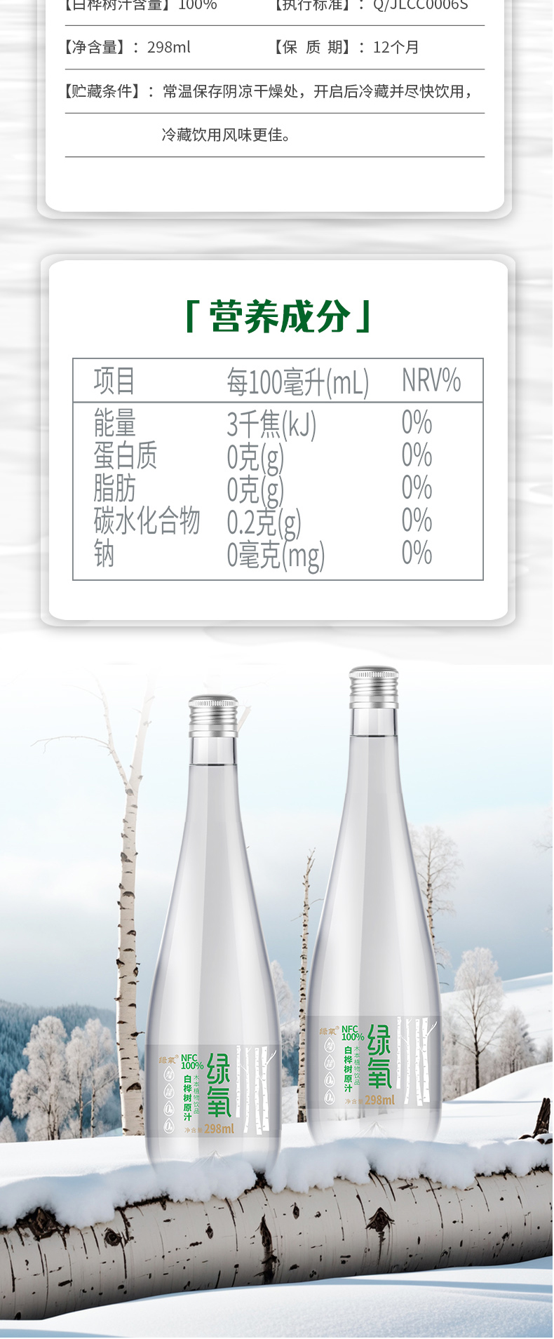 长白山100%白桦树汁原液 (298ml*6瓶/箱)JL