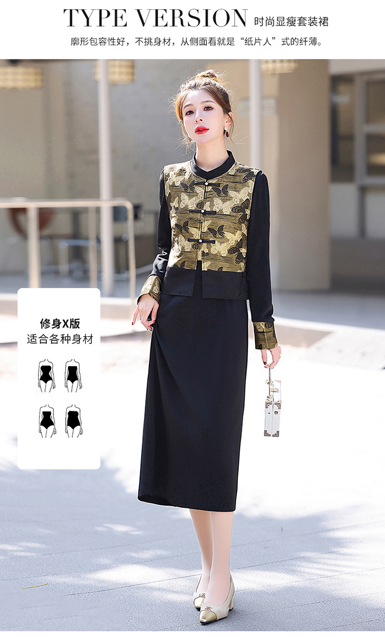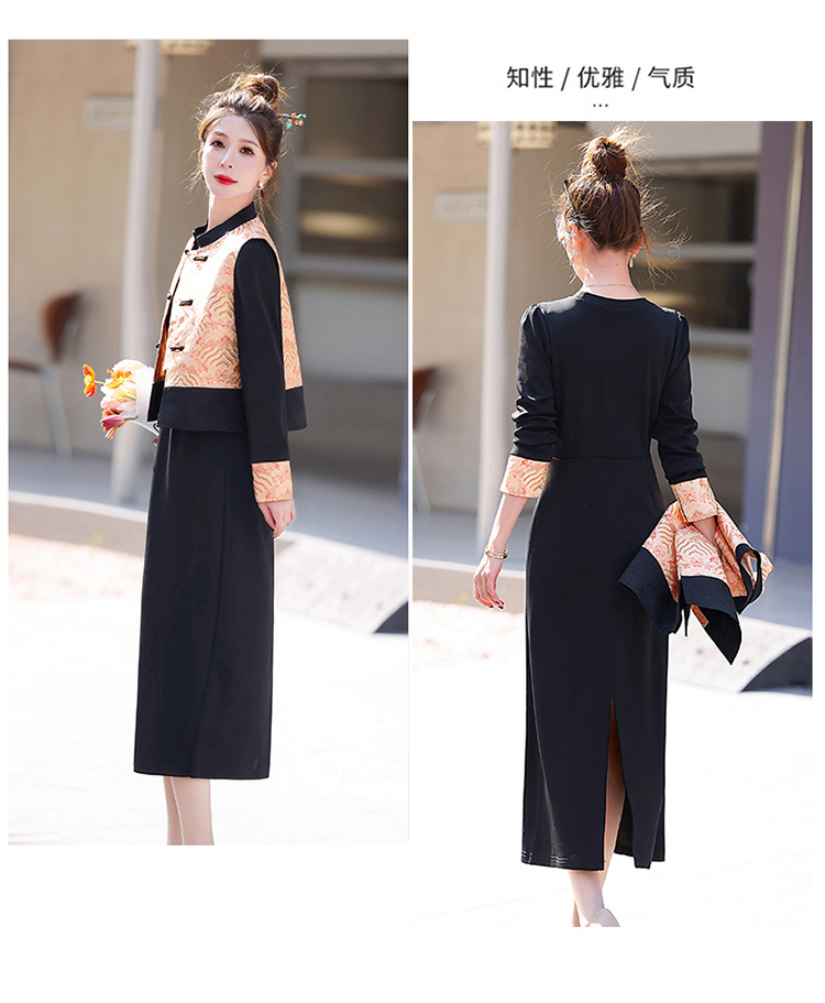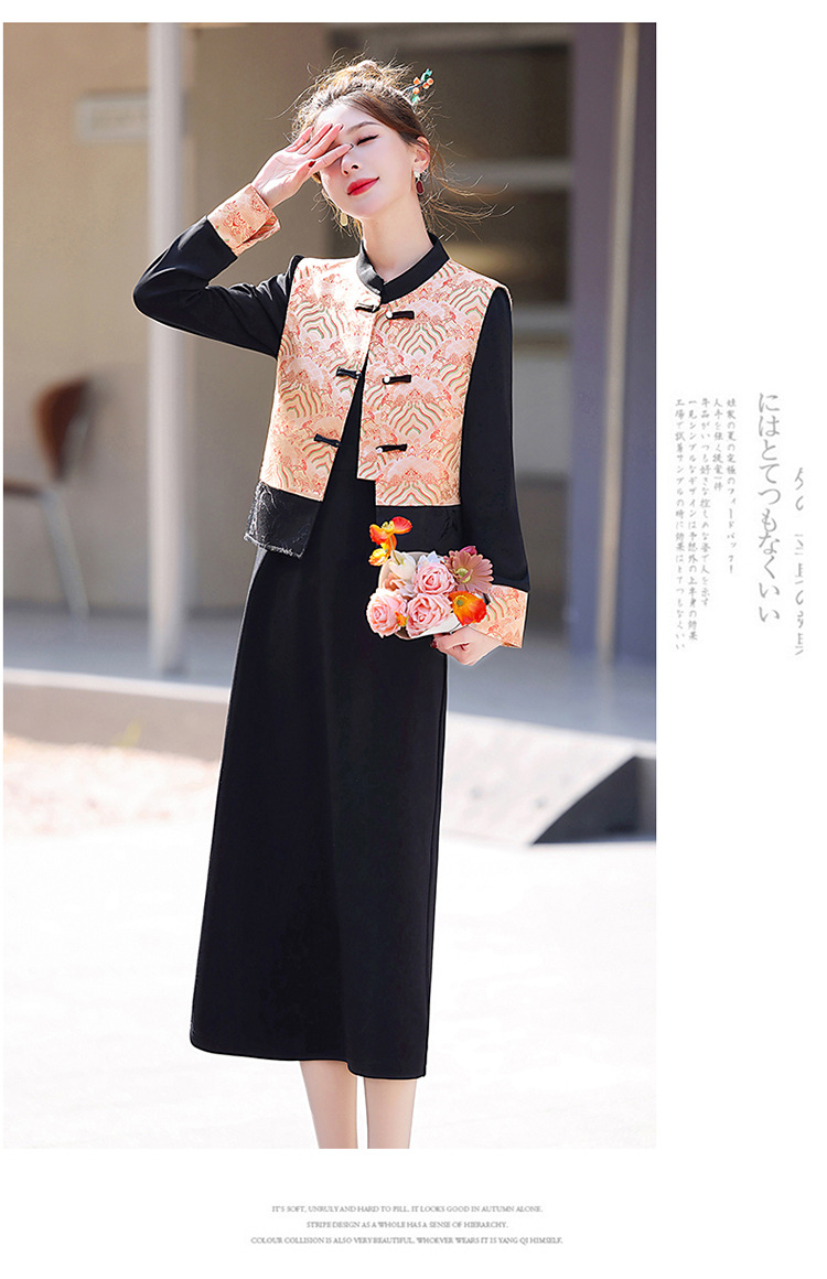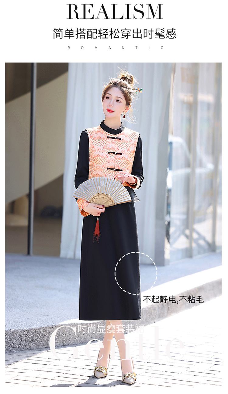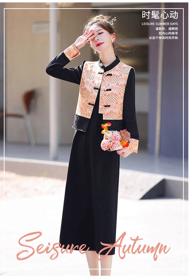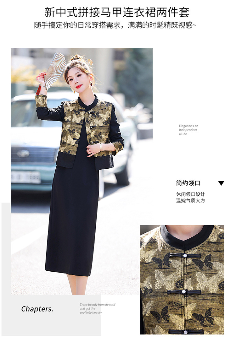 丁摩 新中式风复古盘扣马甲丝绒连衣裙套装女春秋显瘦长裙两件套5ZF-12643