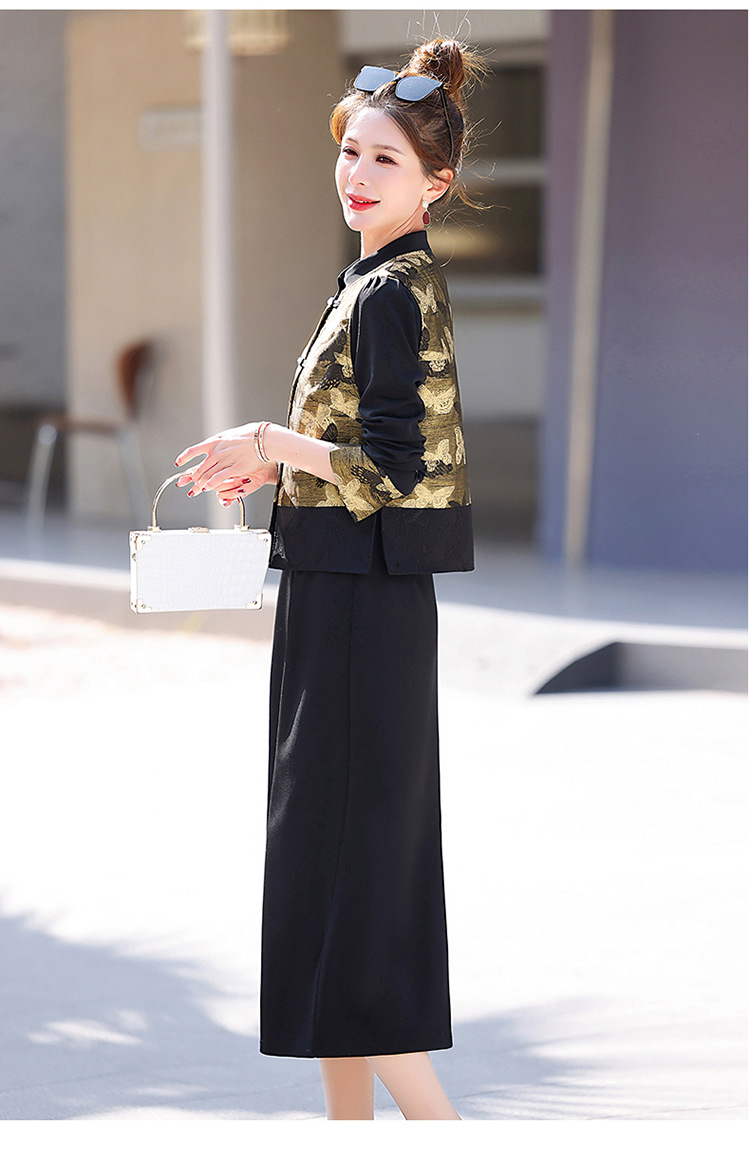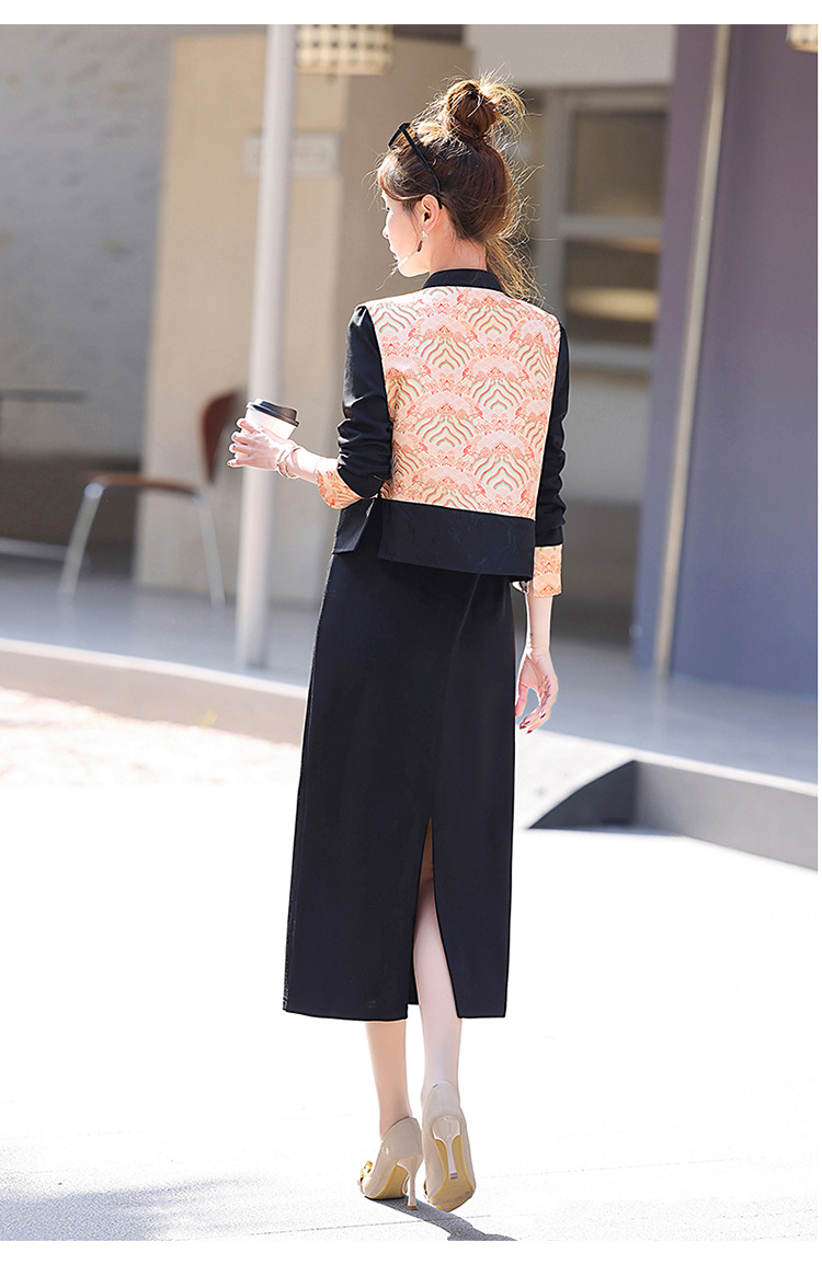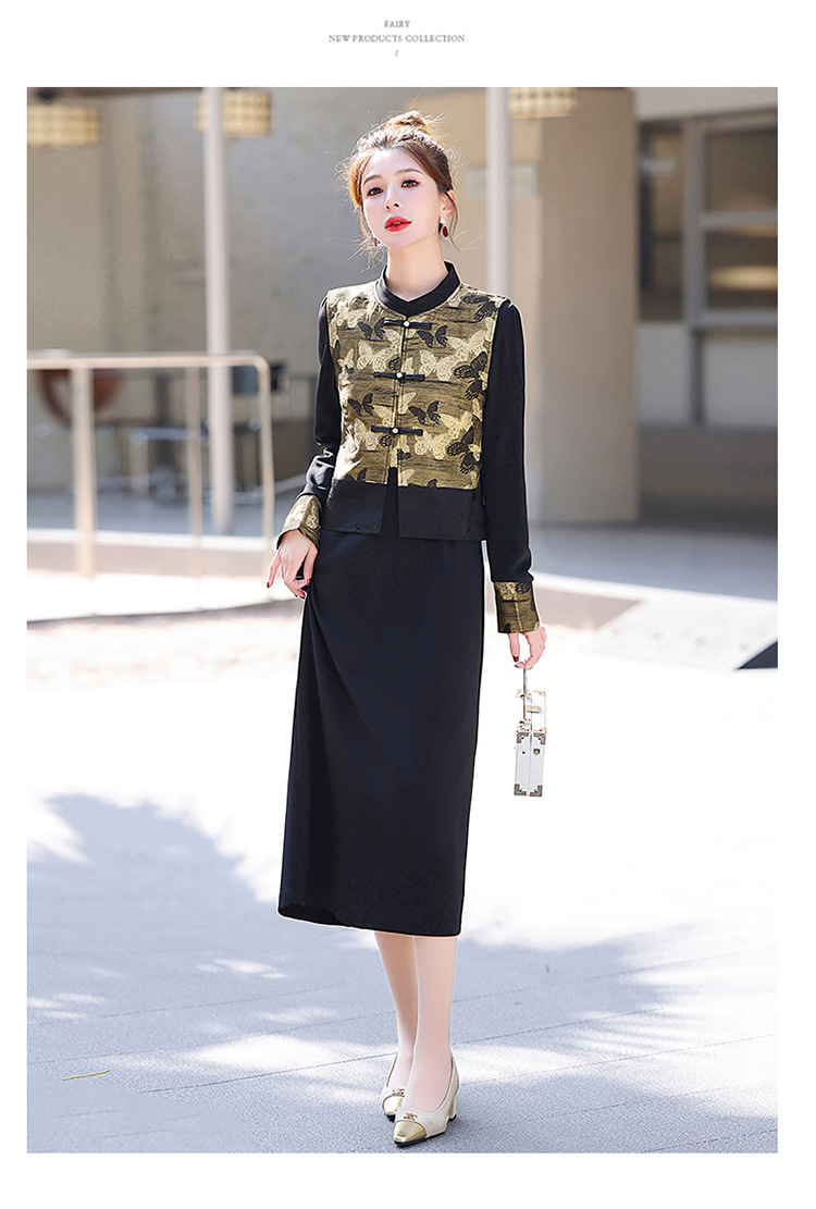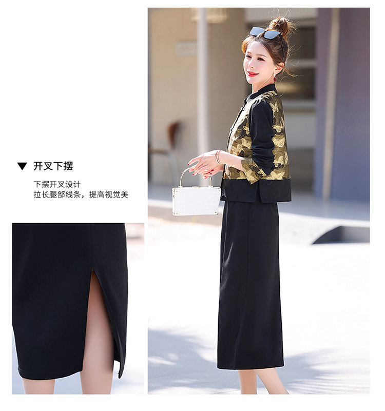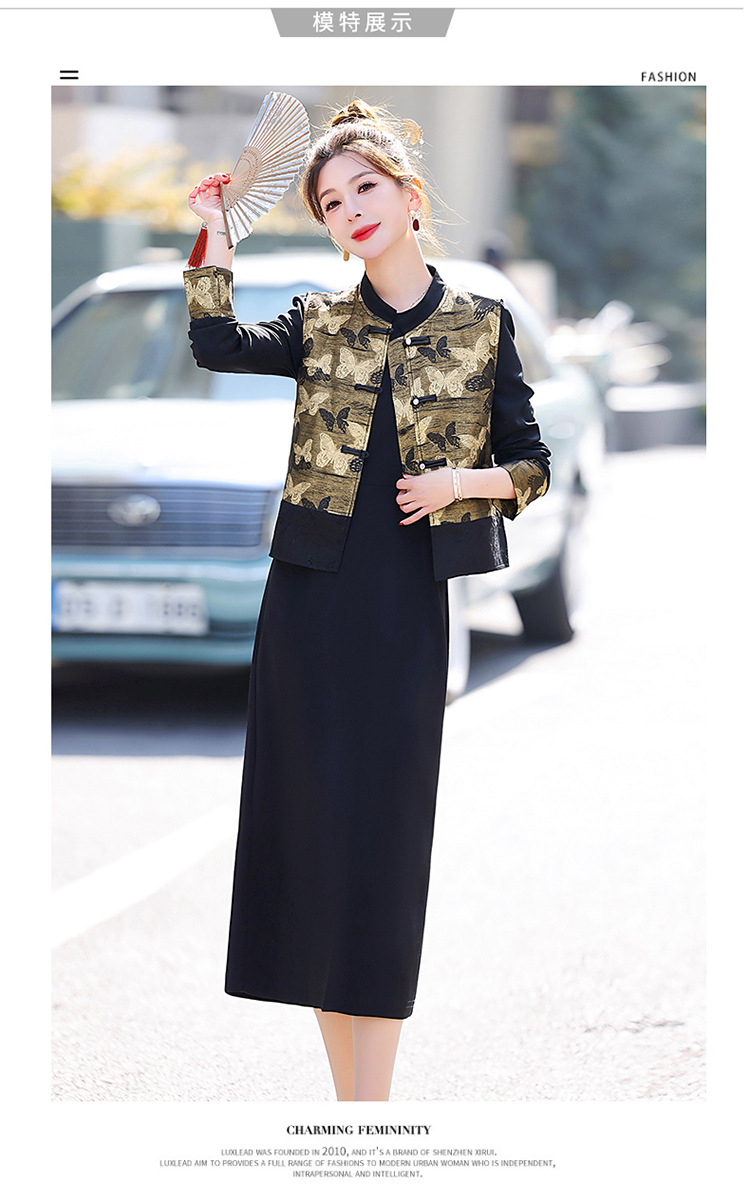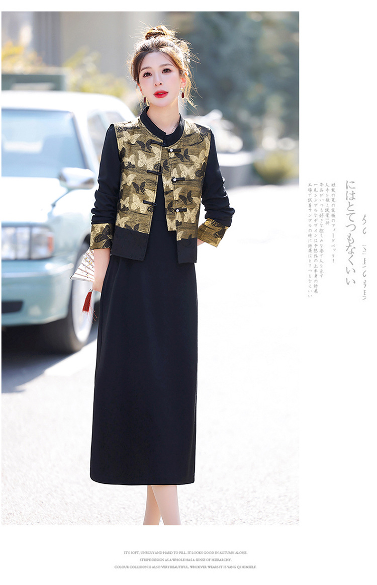 丁摩 新中式风复古盘扣马甲丝绒连衣裙套装女春秋显瘦长裙两件套5ZF-12643