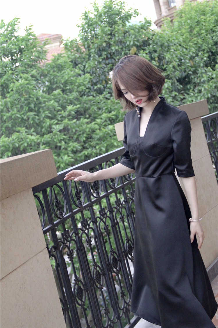 【复团定金】喵娘精工/定制/《军阀旗袍》削肩版禁欲系高级骚黑色丝绒高叉旗袍#款号1005