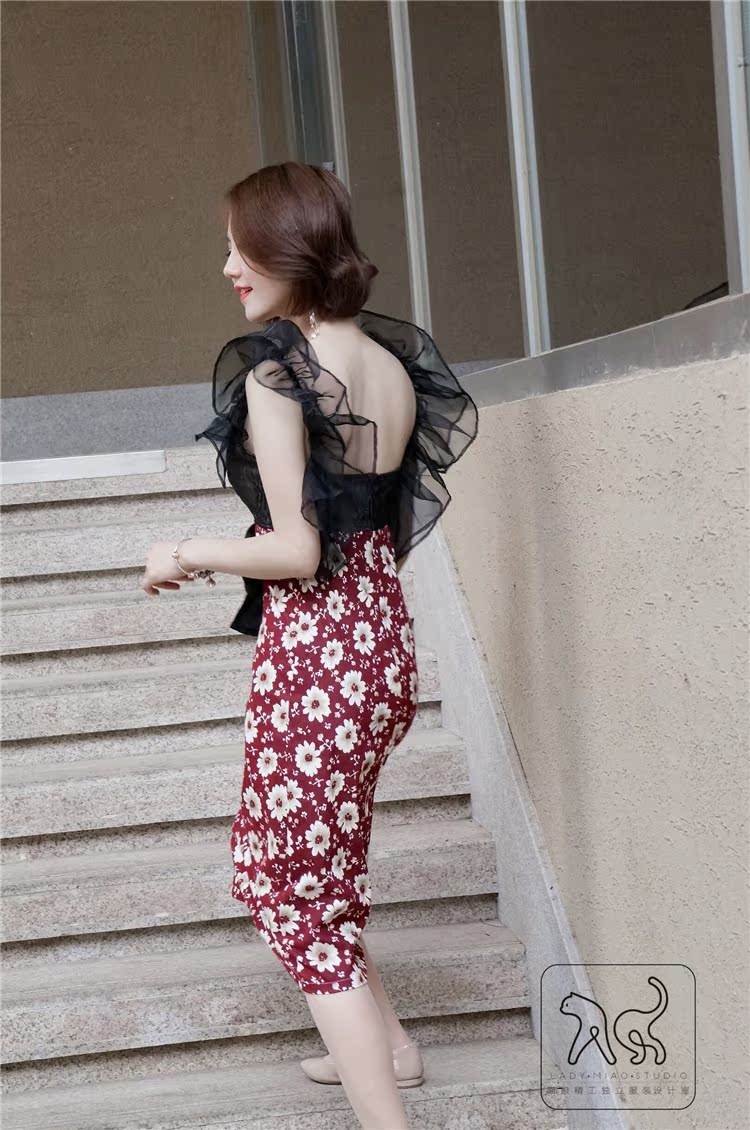 1303#【复团】喵娘精工丨定制《暮色之花》复古VTG抽绳收腰褶皱吊带缎面连衣裙