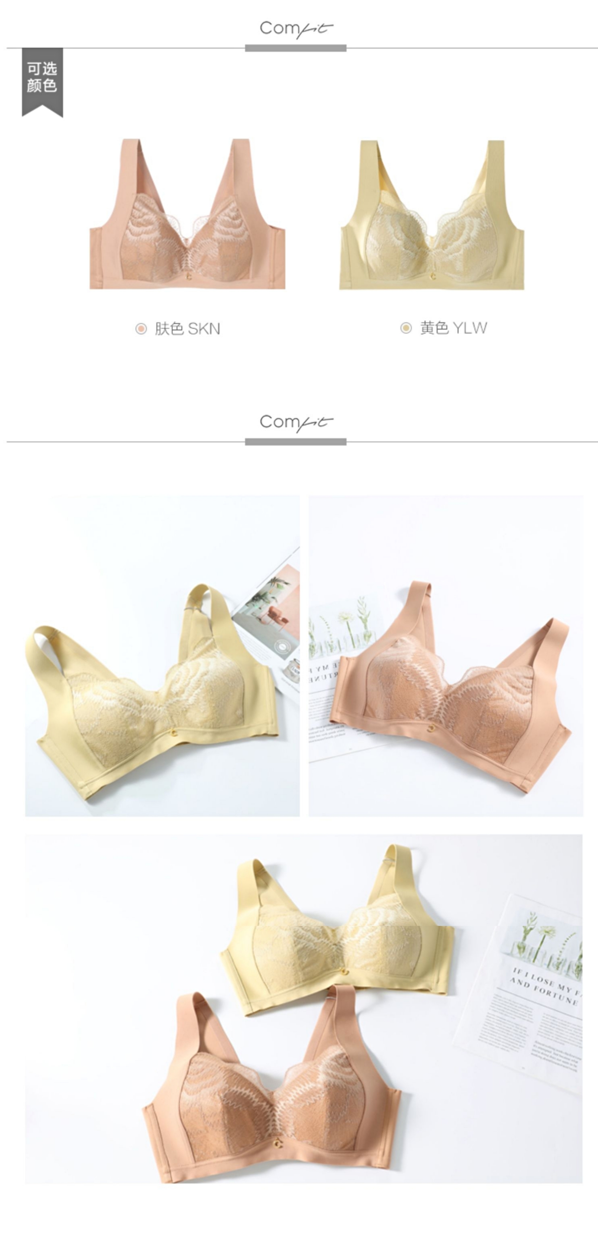 Comfit无钢圈内衣女薄款大码聚拢防下垂美背大胸显小文胸CB00101