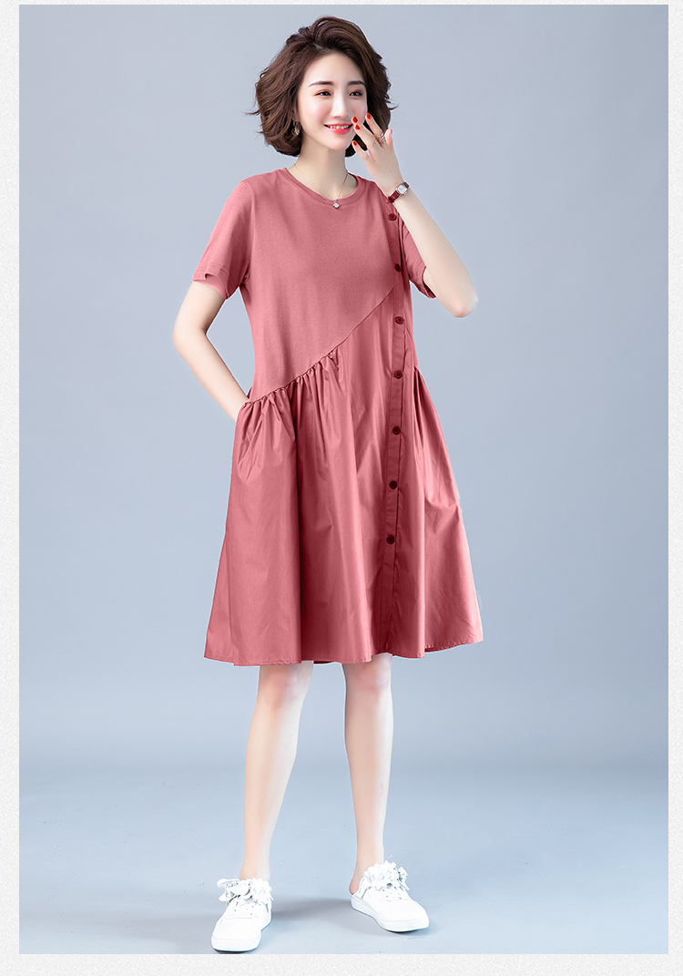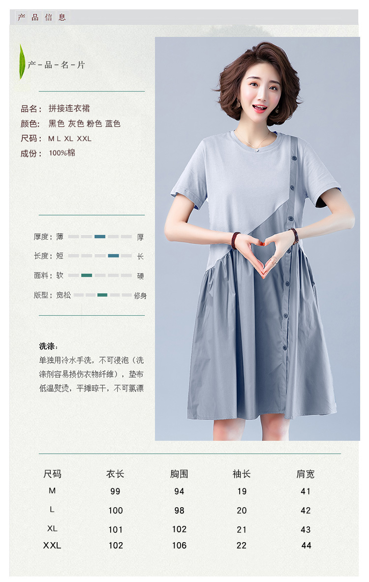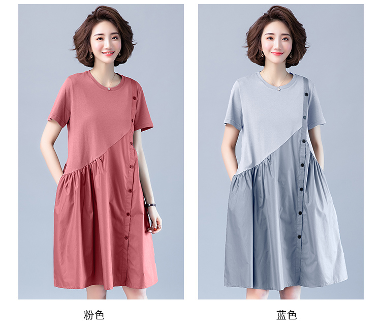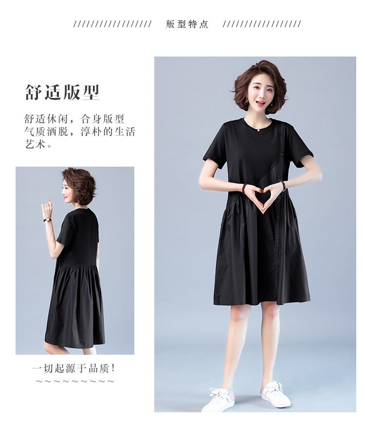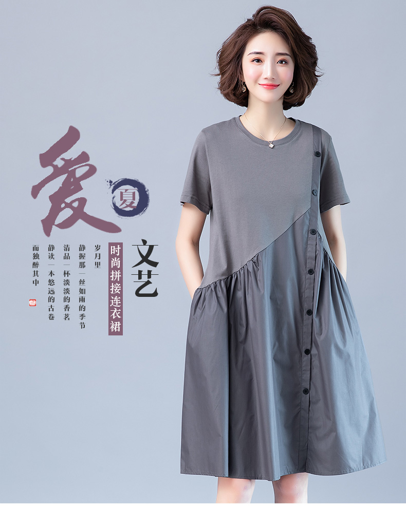WZNH-JNYX978-1新品舒适宽松腰夏季中长款短袖气质连衣裙