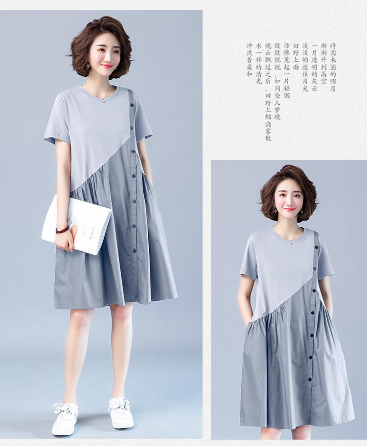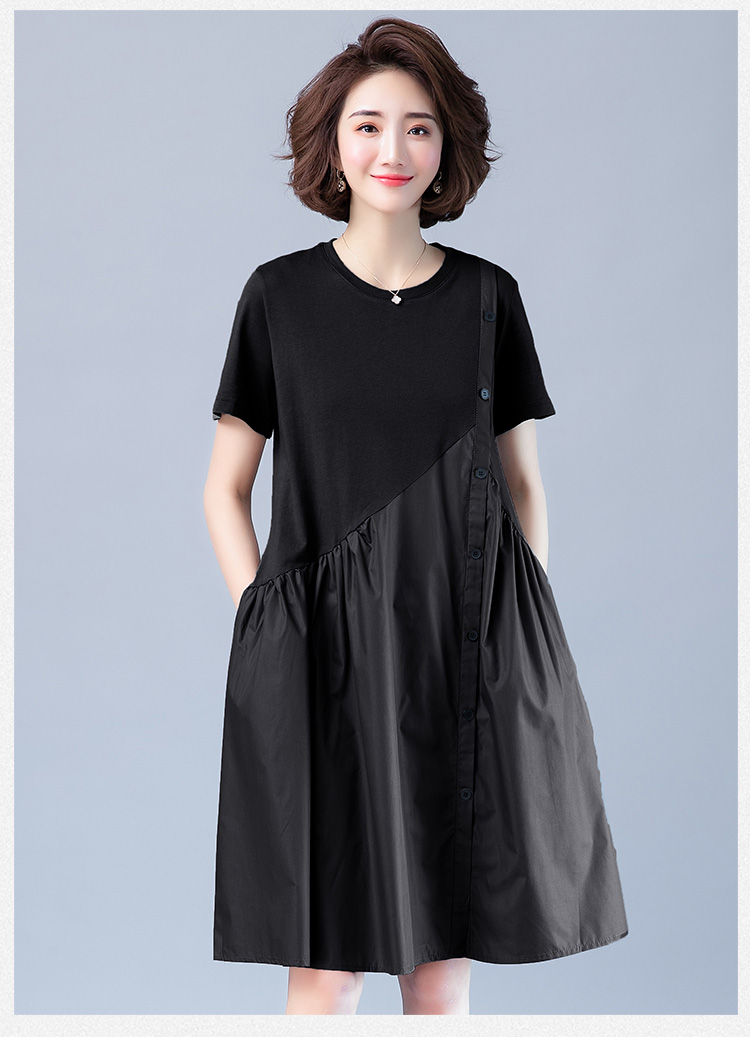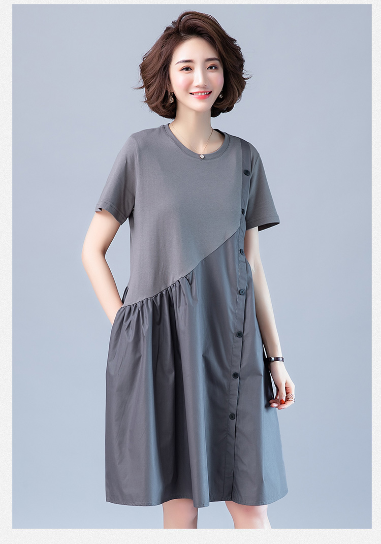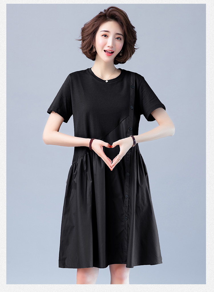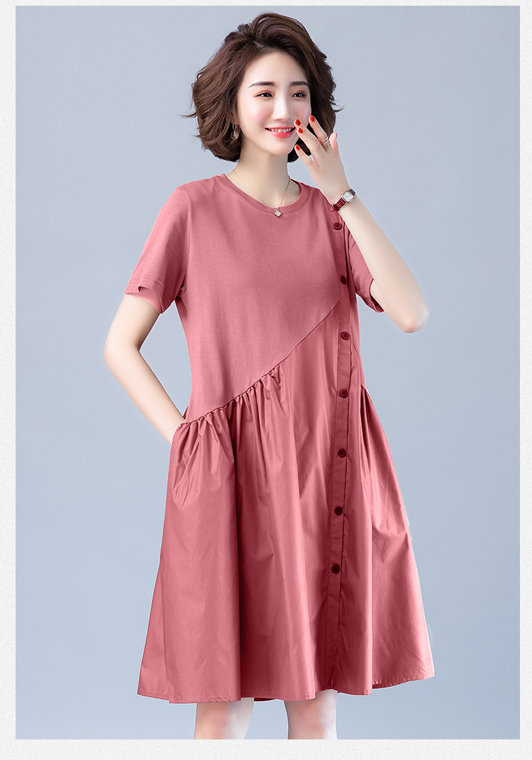 WZNH-JNYX978-1新品舒适宽松腰夏季中长款短袖气质连衣裙