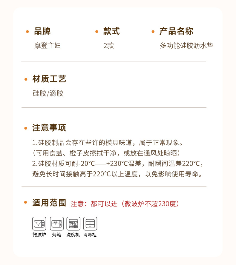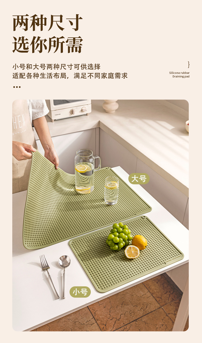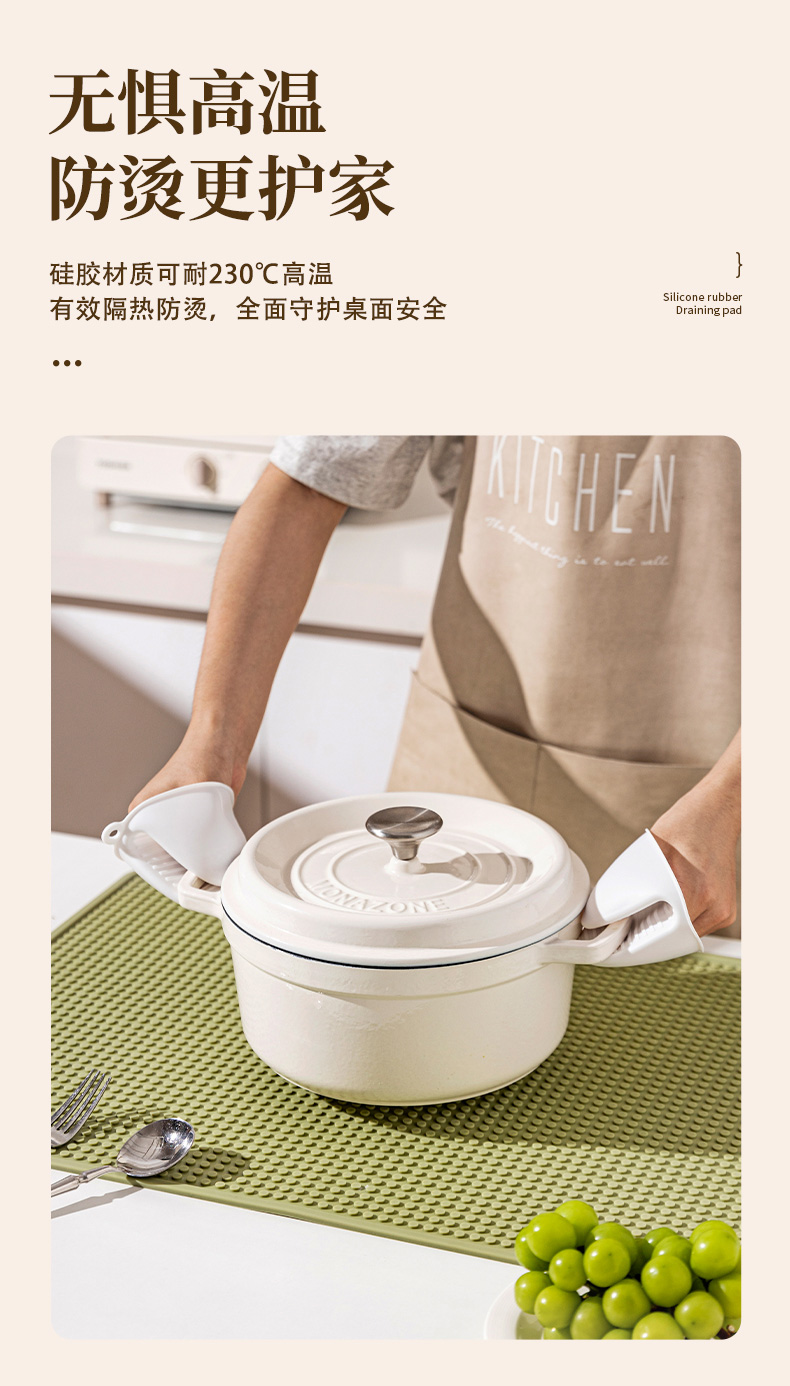摩登主妇硅胶沥水垫隔热垫防烫耐高温餐垫桌垫厨房台面保护垫锅垫