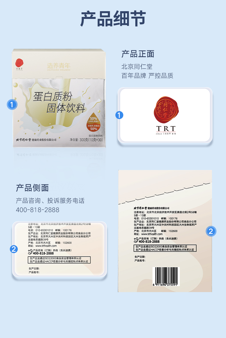 【正宗同仁堂品牌】北京同仁堂 蛋白质粉 300g 蛋白营养粉乳清蛋白粉SY