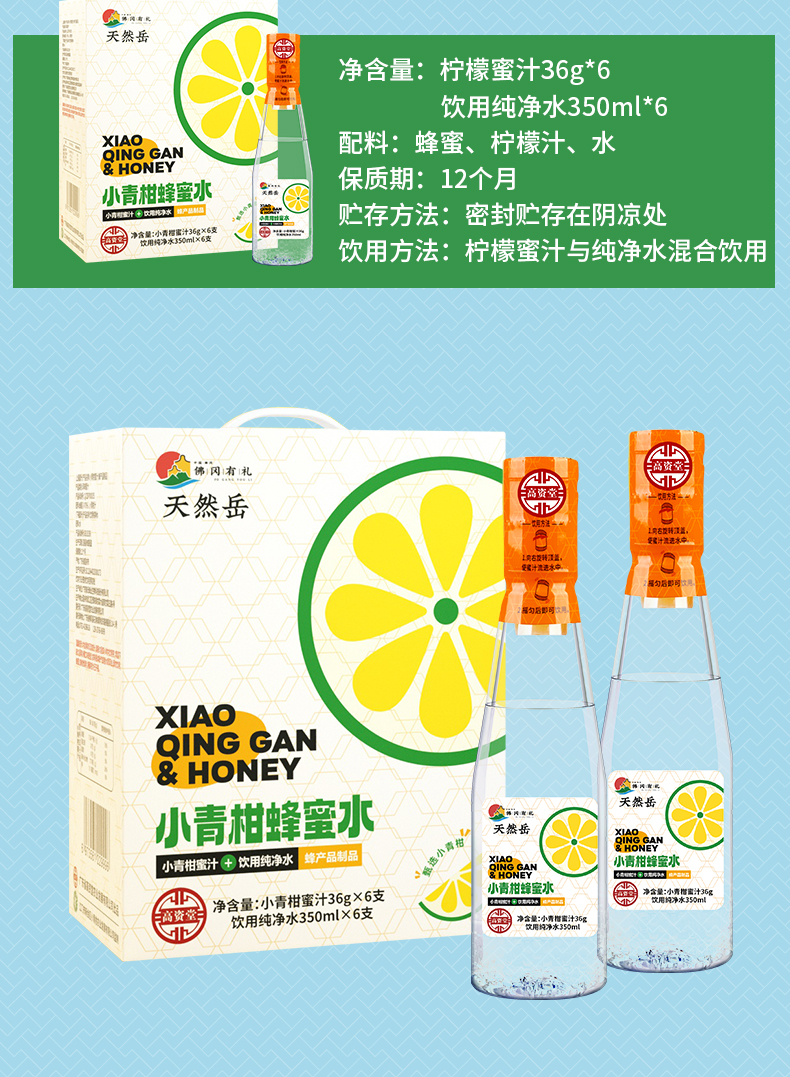 佛冈天然岳小青柑蜂蜜水整箱 味道柑爽清甜开胃解渴解腻饮品(36g+350ml*6支/箱)