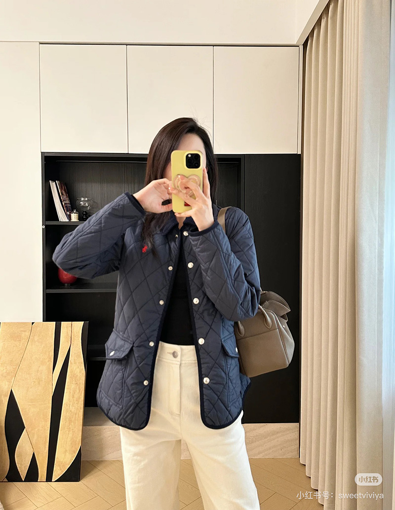 版型有点老钱风,实穿爆表 超好看的菱格棉服,正版上身横着走路,刺绣精致度,方方面面都很丝滑,那么就直接看实拍叭