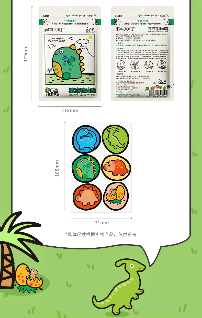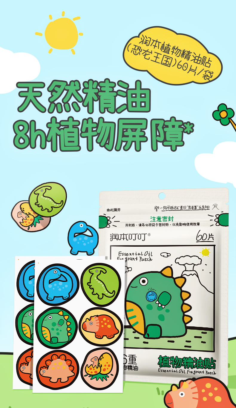 【长轻专属】润本叮叮植物精油贴(恐龙款)60贴/包 植物精油贴 户外随身防蚊