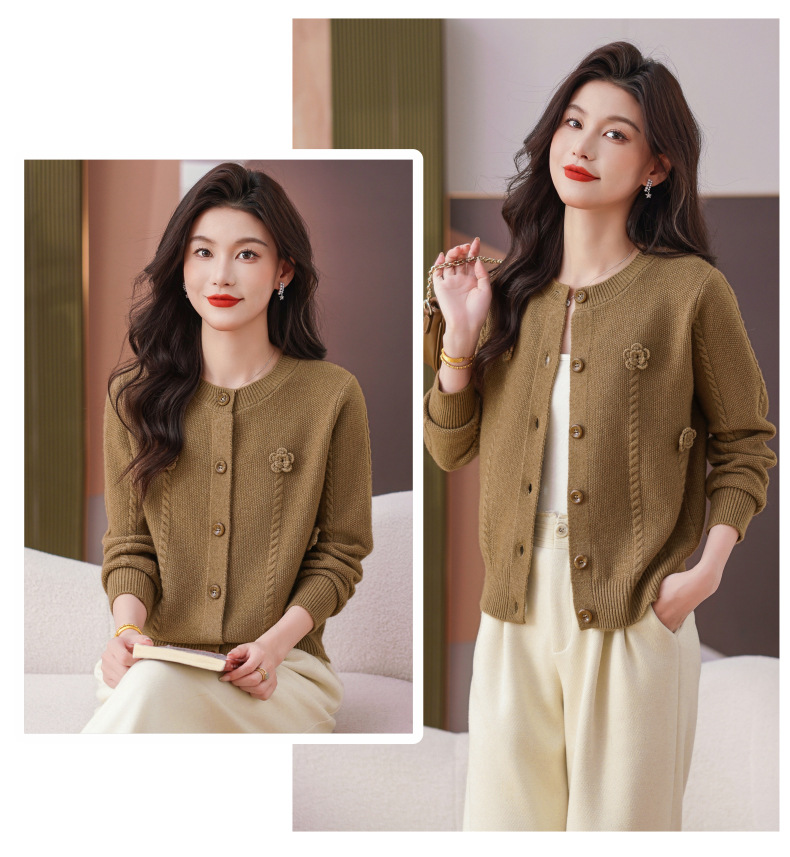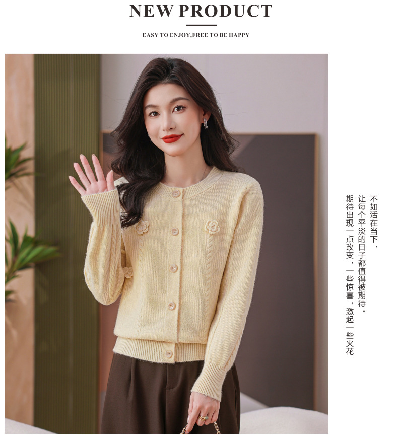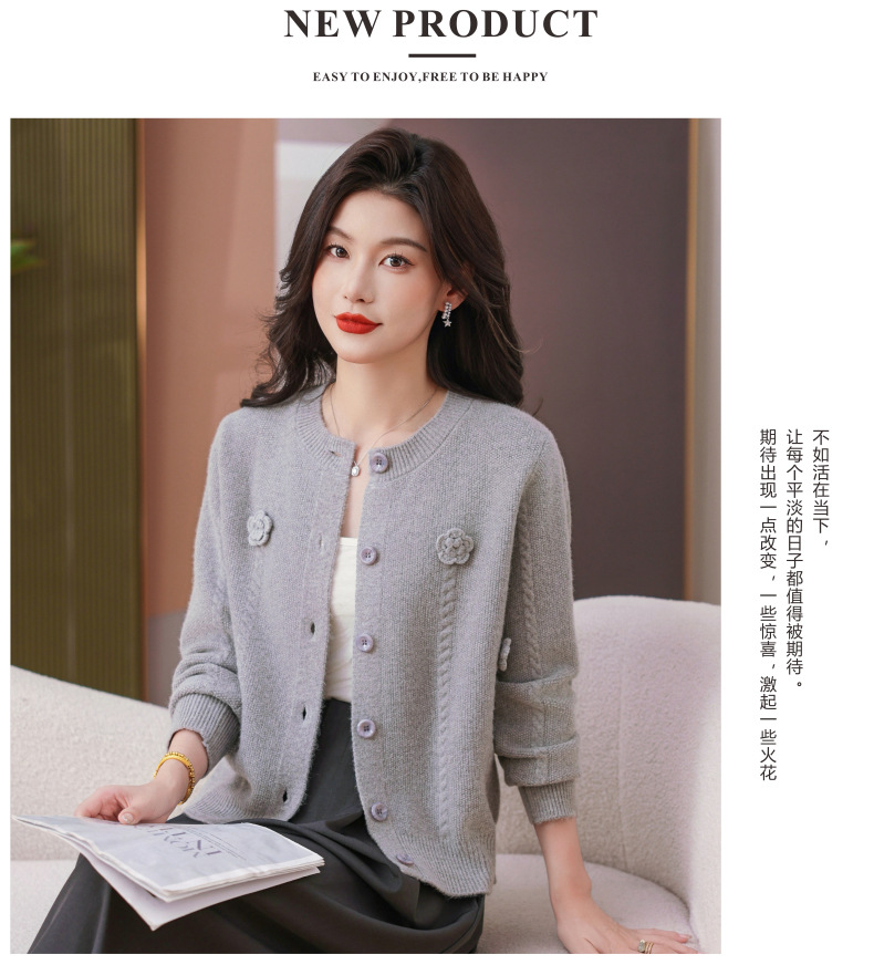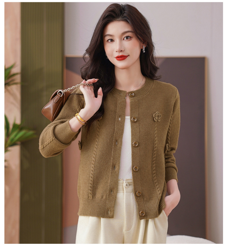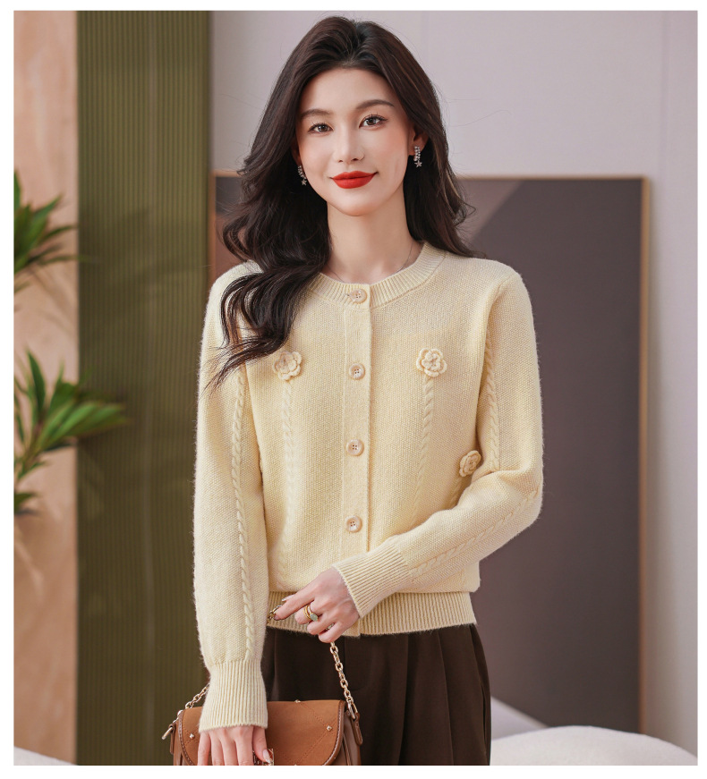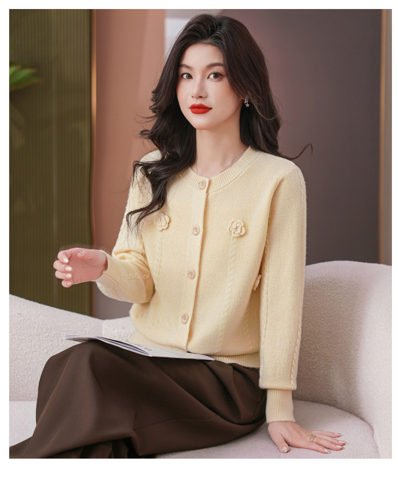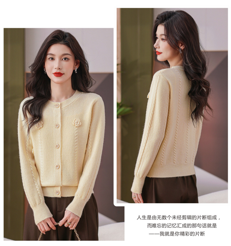 CC红色针织开衫女士气质外搭长袖上衣秋装2025新款立体花朵毛衣外套