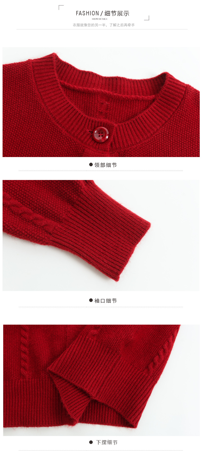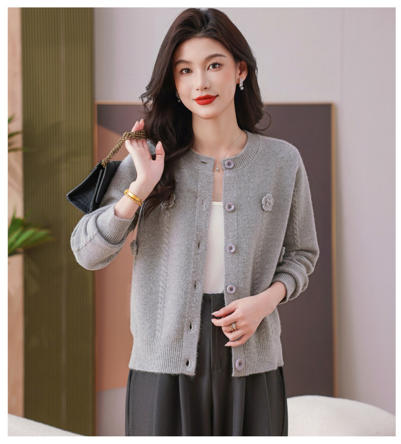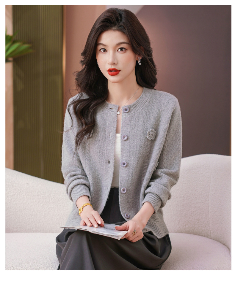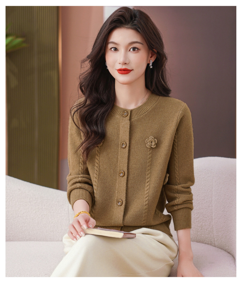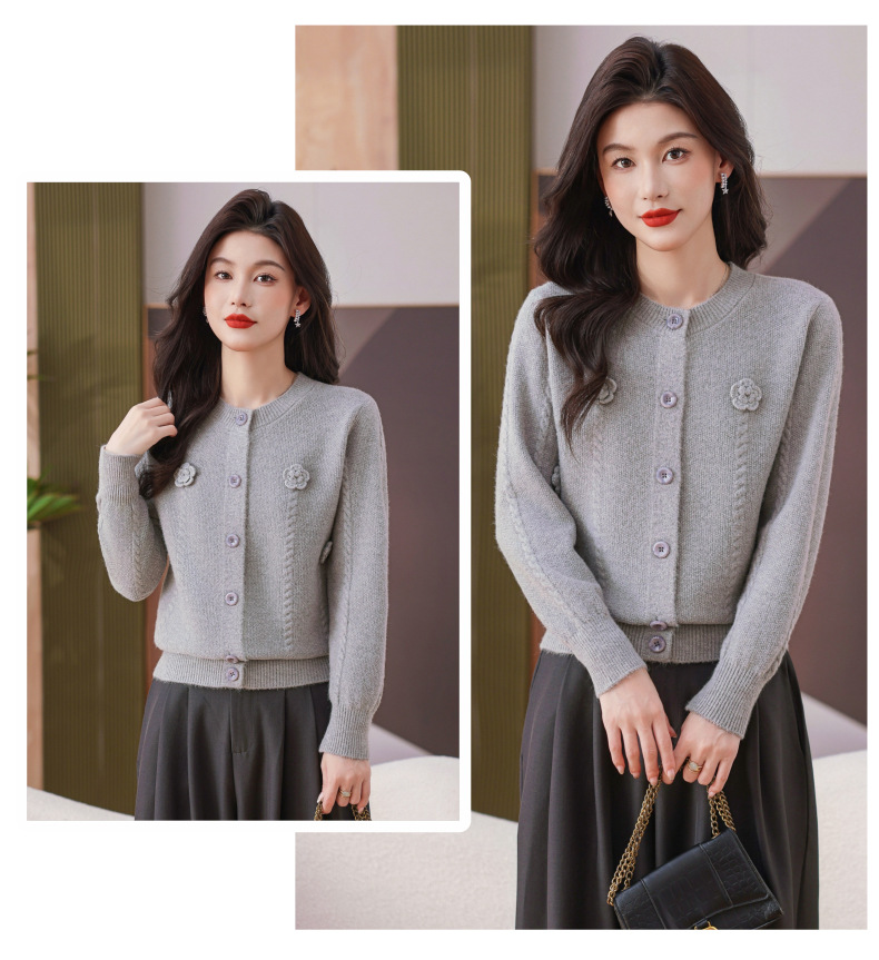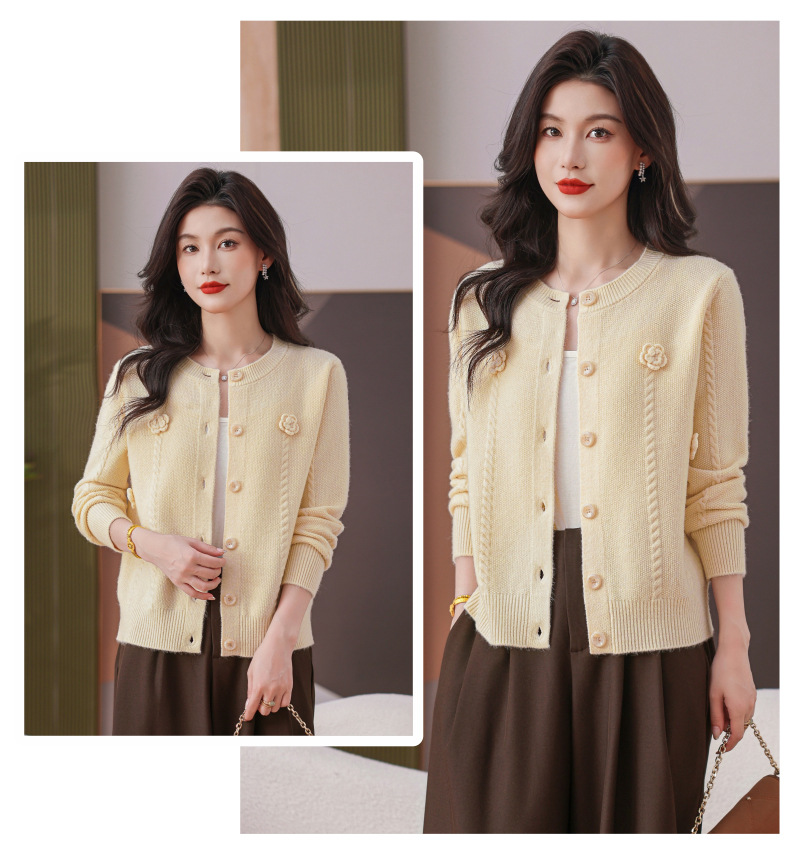 CC红色针织开衫女士气质外搭长袖上衣秋装2025新款立体花朵毛衣外套