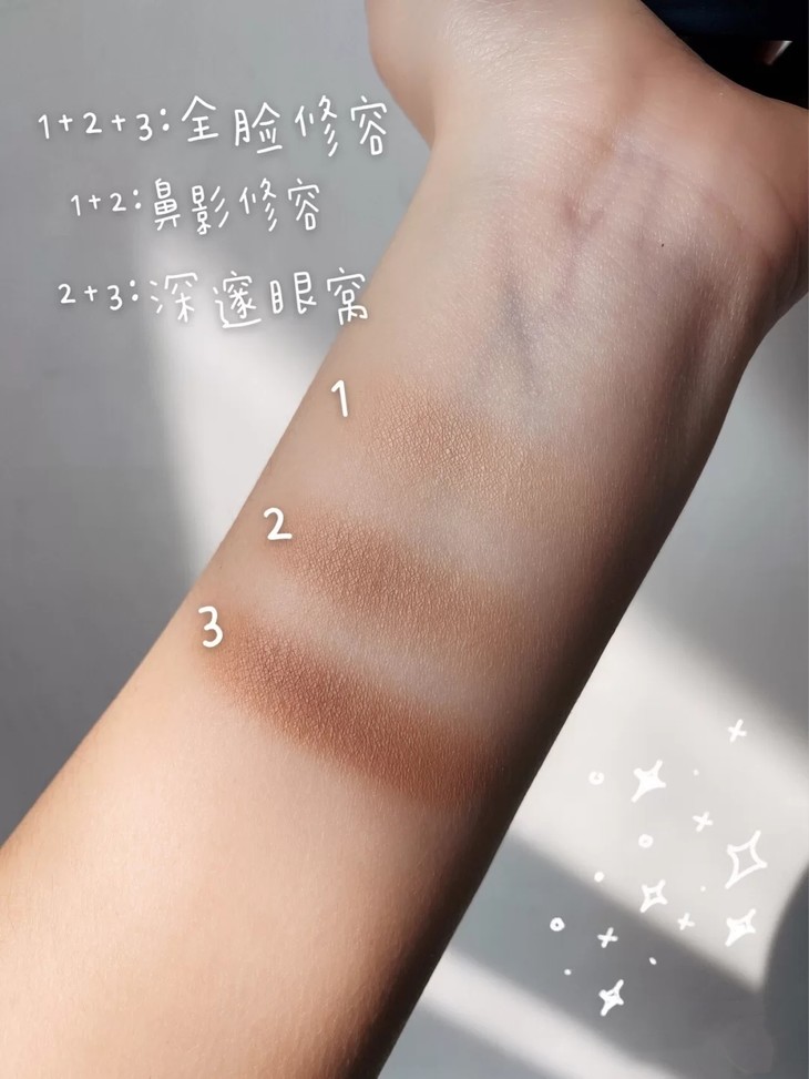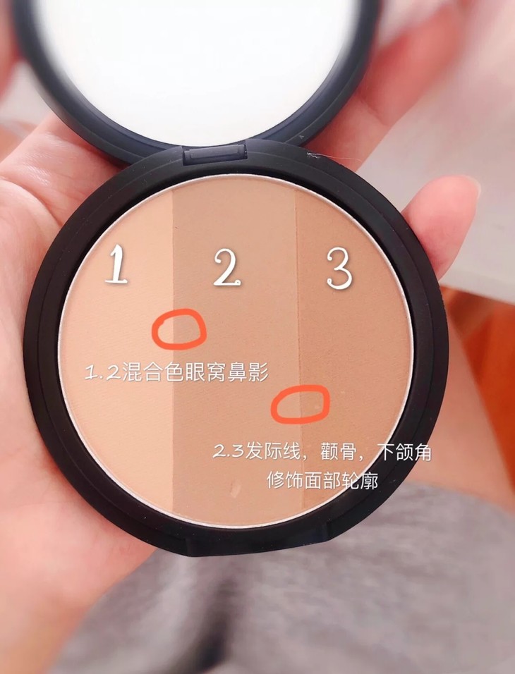 Too cool for school三色修容粉餅(附刷子) 👍想要精致面容离不开一盘修容,相对修容膏来说,这款too cool for school立体修容粉饼,很适合新手🙋,妆效自然💓,不会像修容膏那样一个手重,妆就毁啦😵。粉也很细腻很清薄,轻松打造精致的伪素颜妆容。👃不浮粉,上色不会很重,而且它可以多次上色,达到自己想要的状态😄~这盘号称全能盘,自带阴影刷,毛质很细很软,扫在脸上很舒服😇,可以说是很人性化的设计了,对于新手小白来说,还可以免去挑选一把合适的修容刷步骤,真的很贴心了🖤!