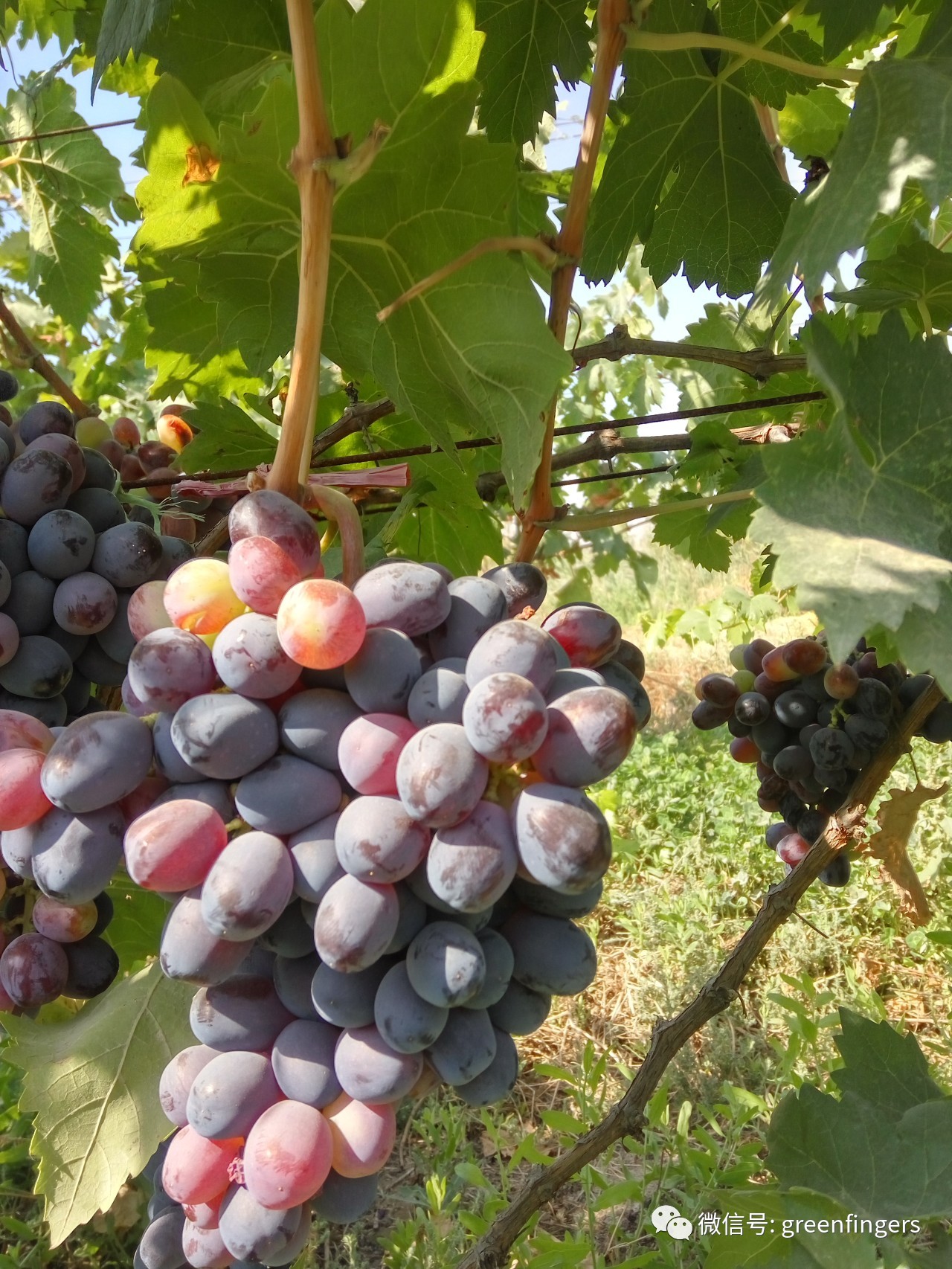 经过长时间的日晒,葡萄们的脸逐渐变成紫色。