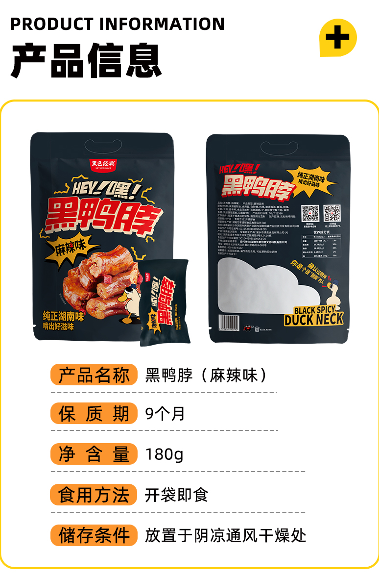 【周一满赠日买二赠一】黑色经典黑鸭脖180g/袋 麻辣味