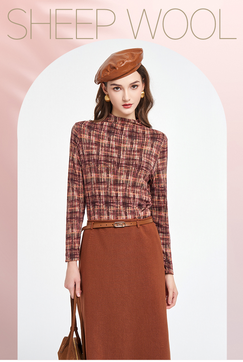乔万尼秋季新品2025纯羊毛艺术印花小高领上衣ED1C910